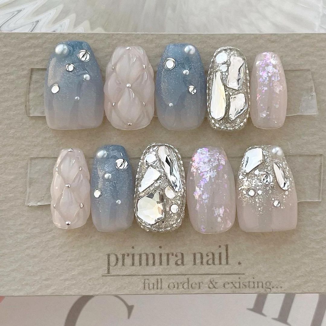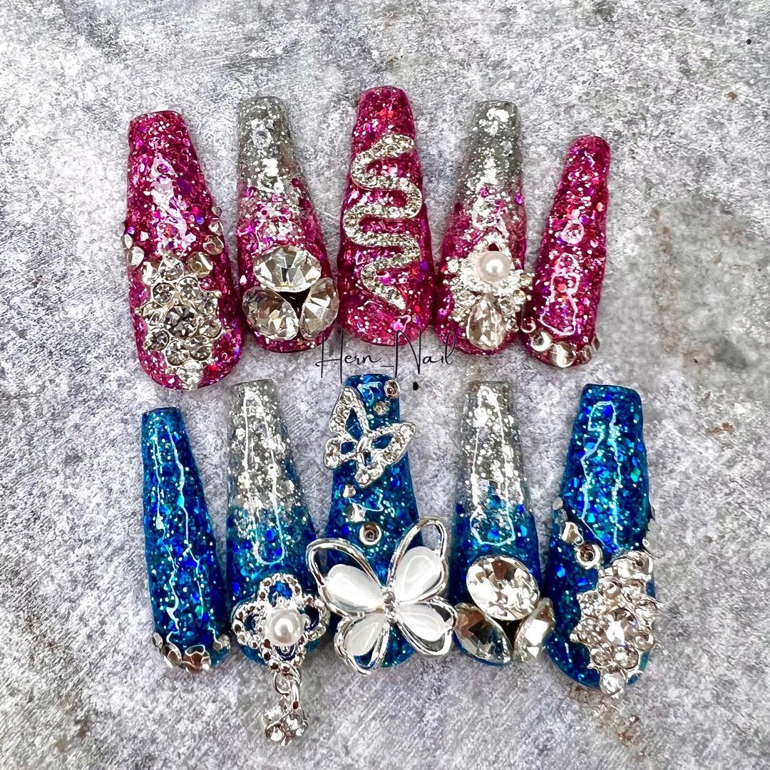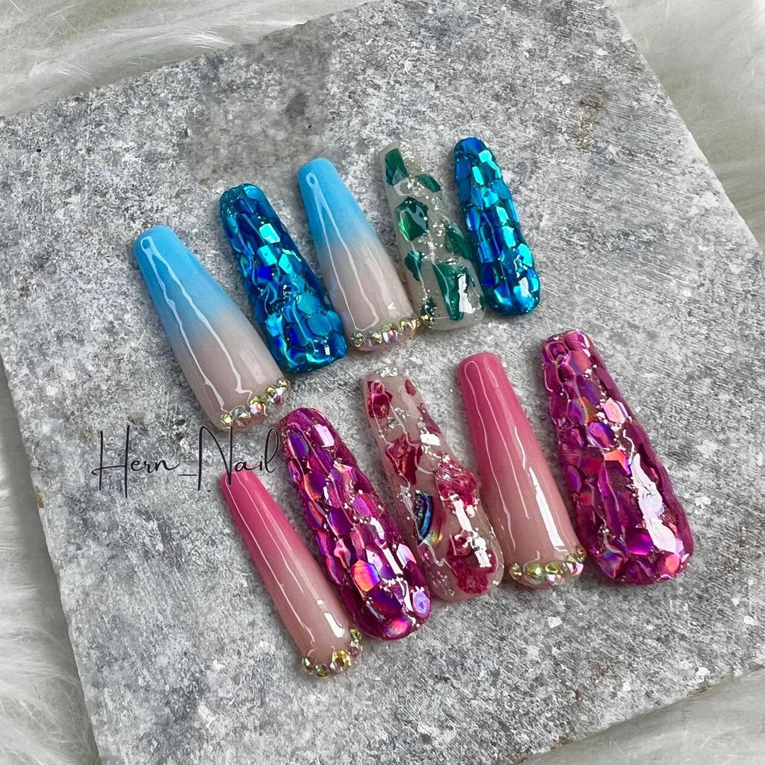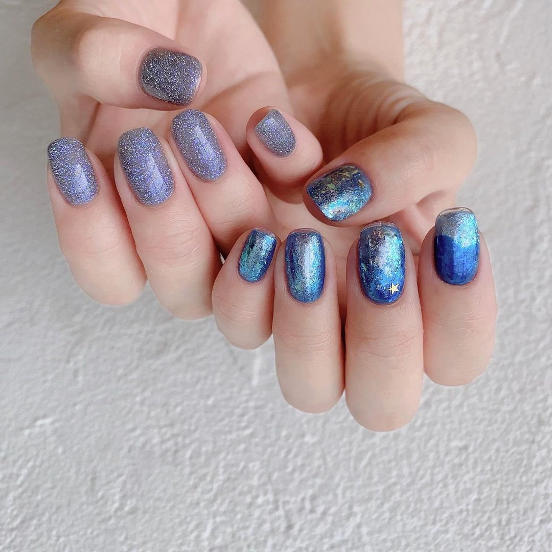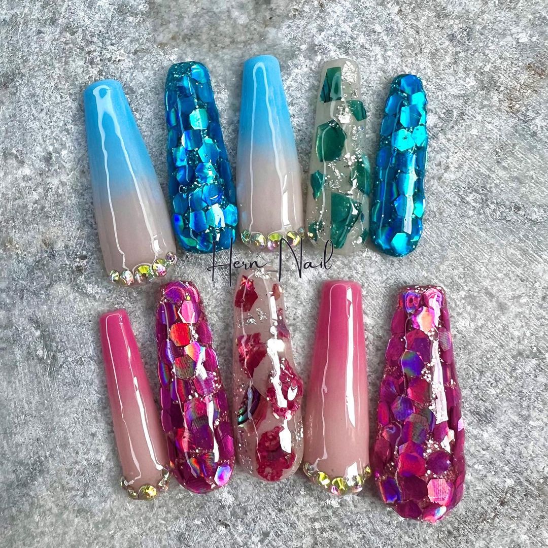 【ピンク・パープル・ブルー】カラフルなキラキラネイル54選!