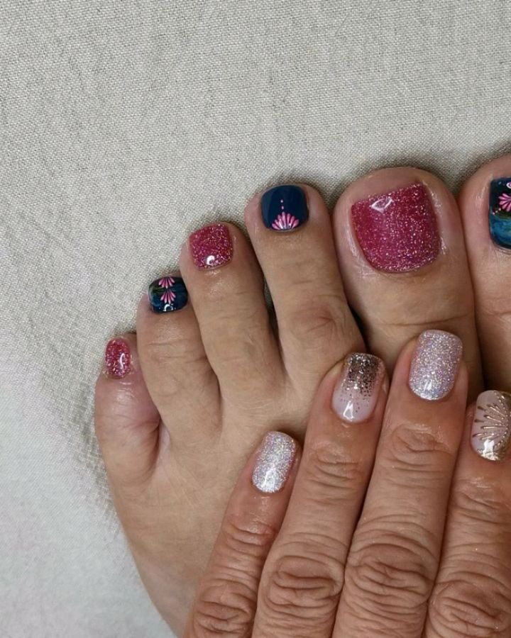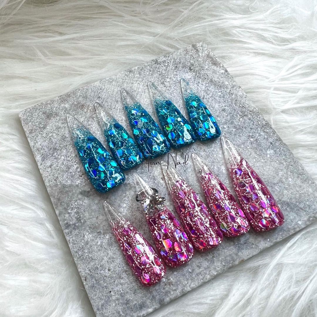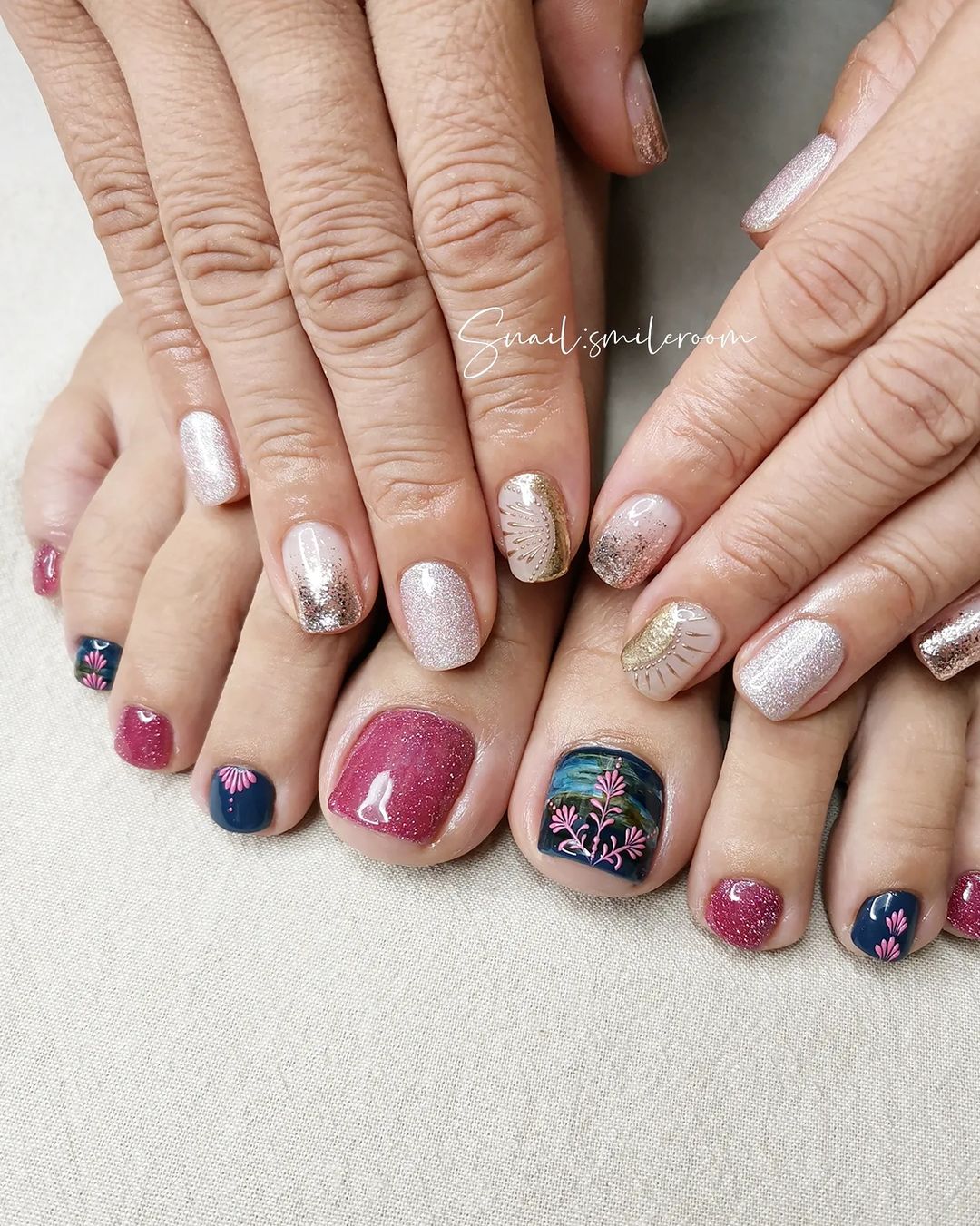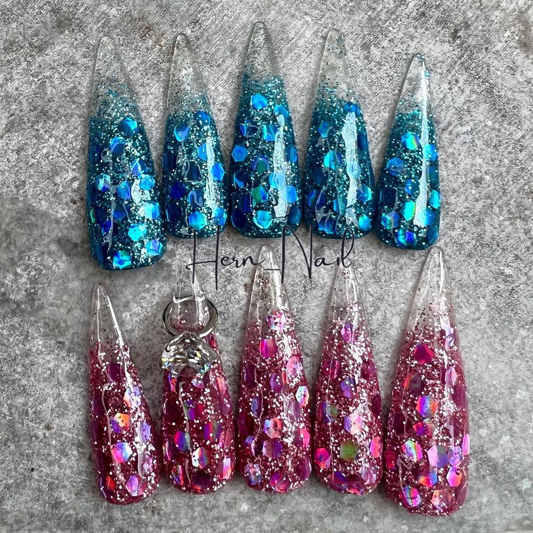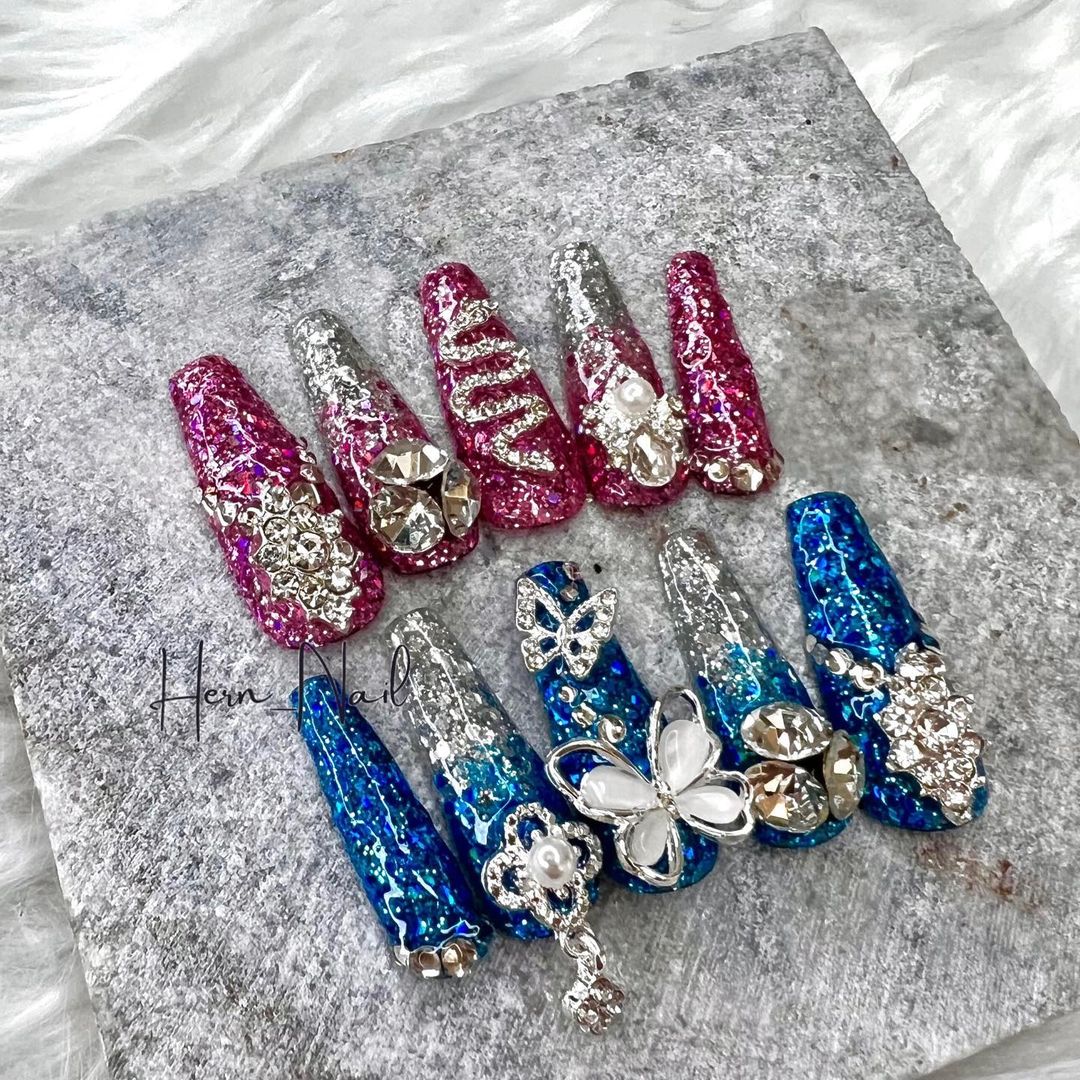 【ピンク・パープル・ブルー】カラフルなキラキラネイル54選!