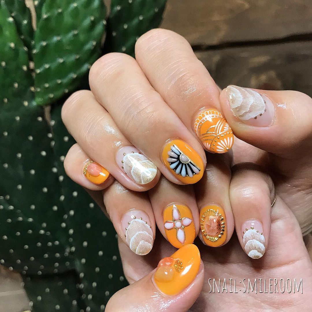 Instagramで人気のオレンジ系夏ネイル21選!フットネイルのデザインも