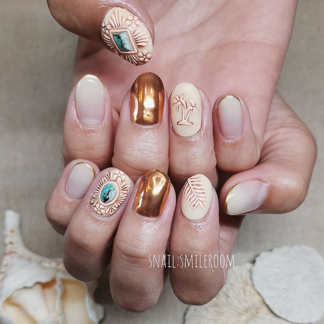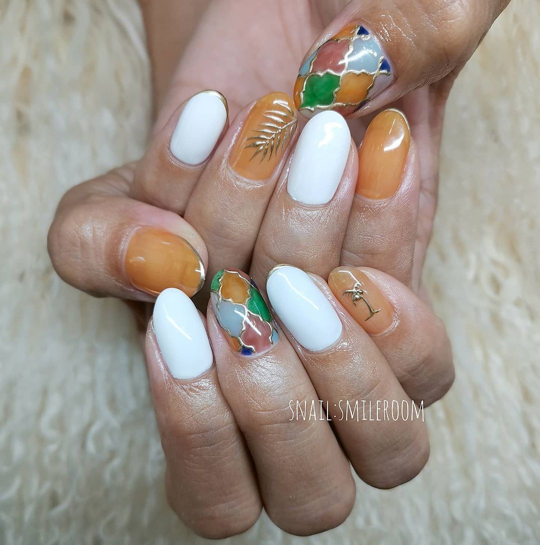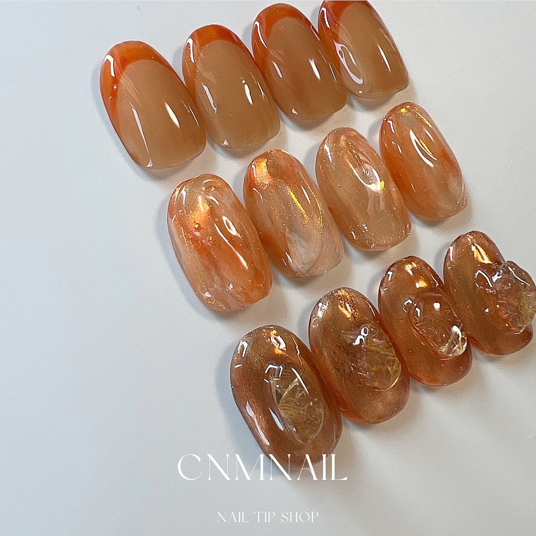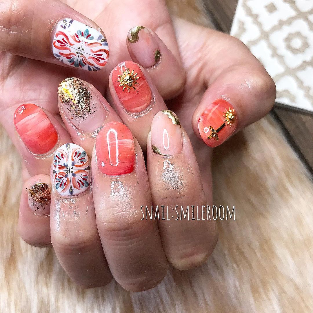 今回はオレンジ系カラーの夏ネイルデザインをご紹介します✨