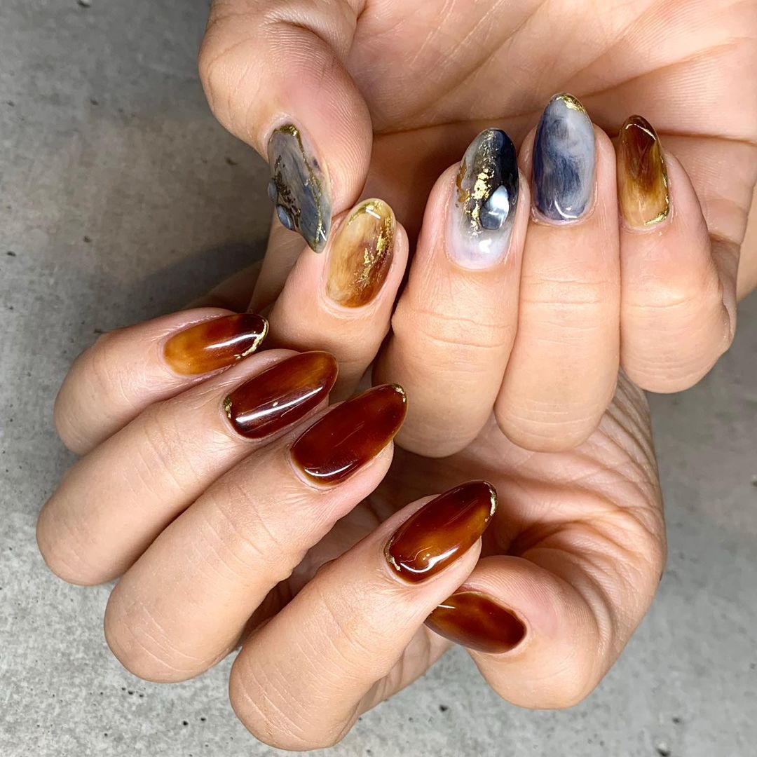 今回はカラフルなべっ甲ネイルデザインをご紹介します🍂