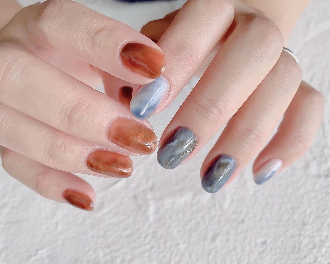 ブルーやブラウンなど多色使いのネイルデザインをピックアップ✨️