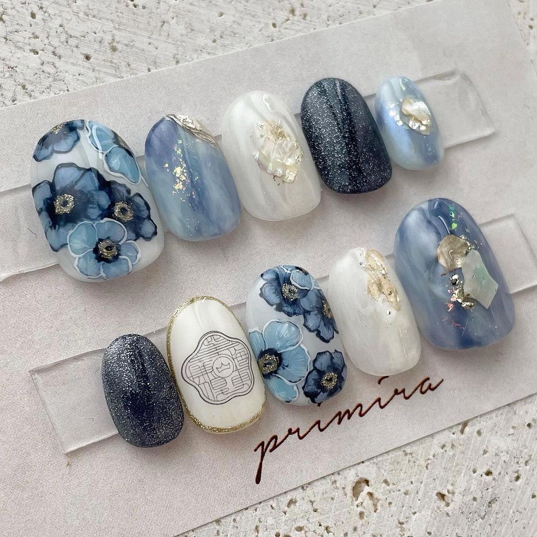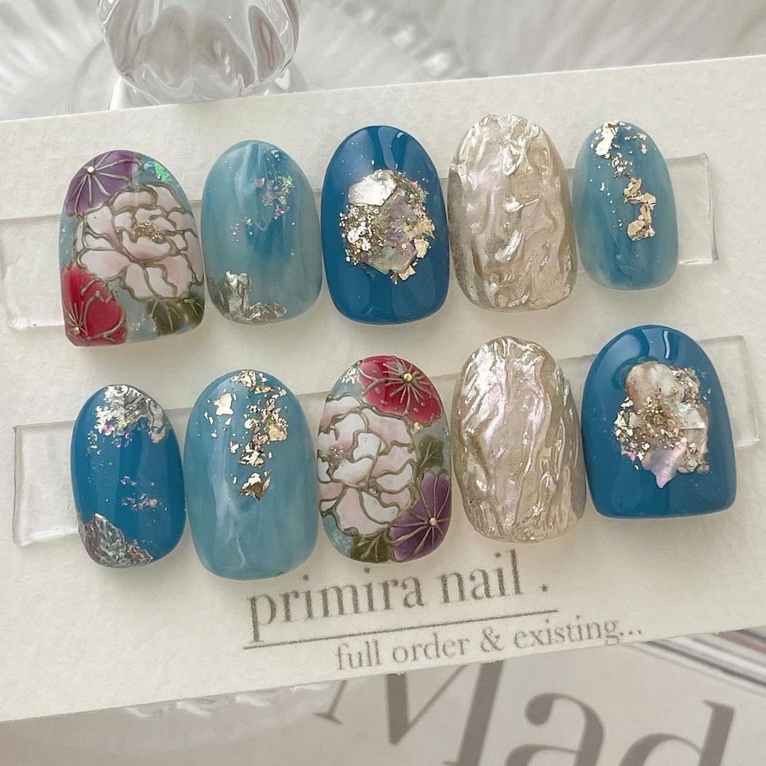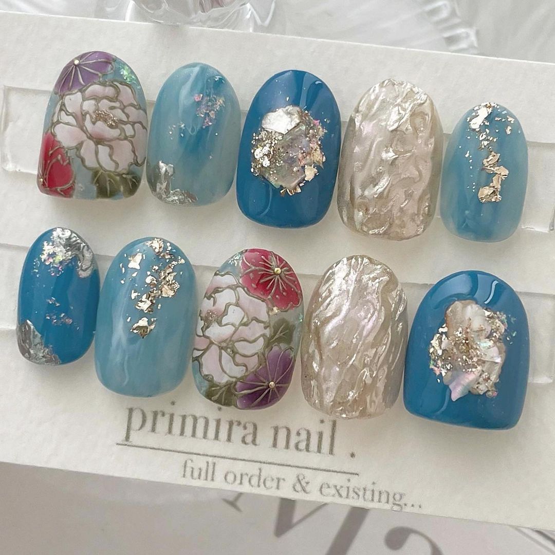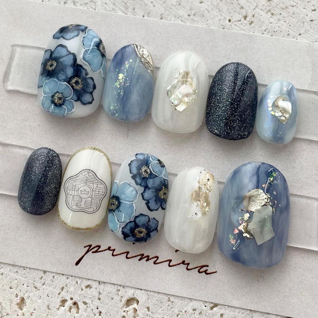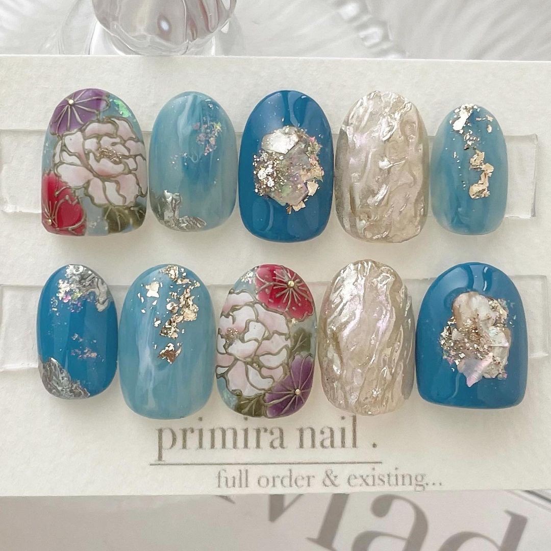 【最新版】ブルーカラーの和柄ネイル68選!振袖や袴に!