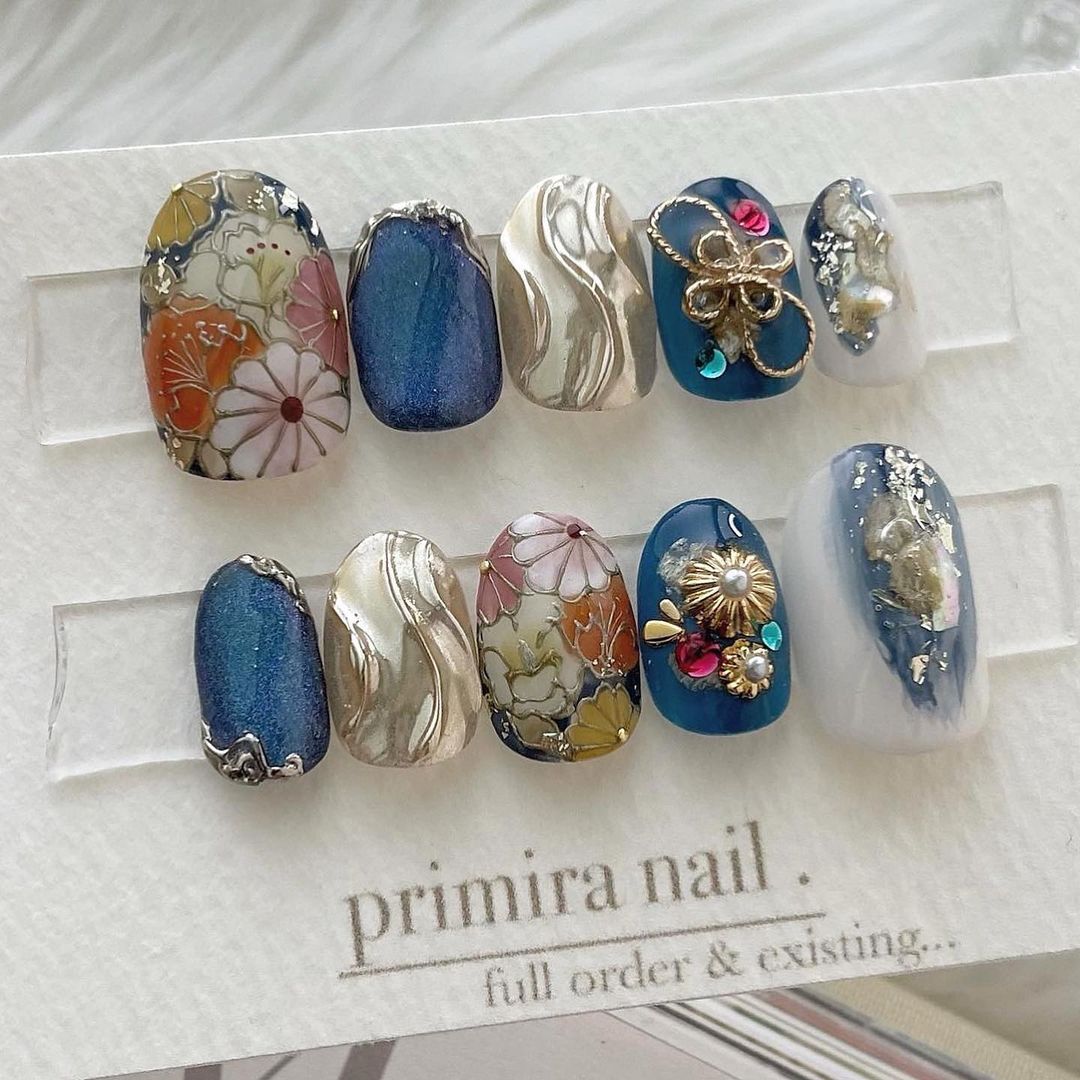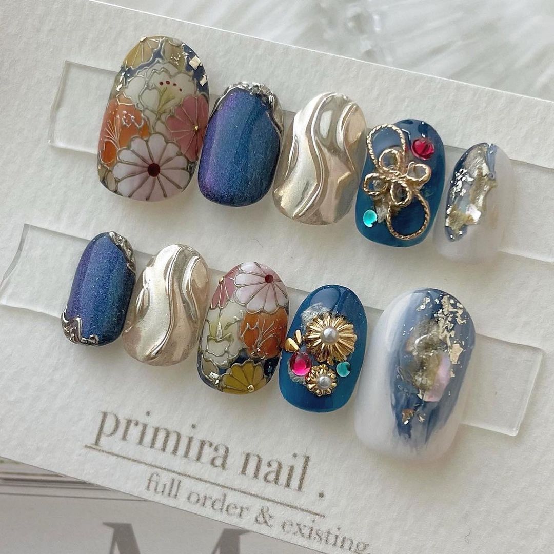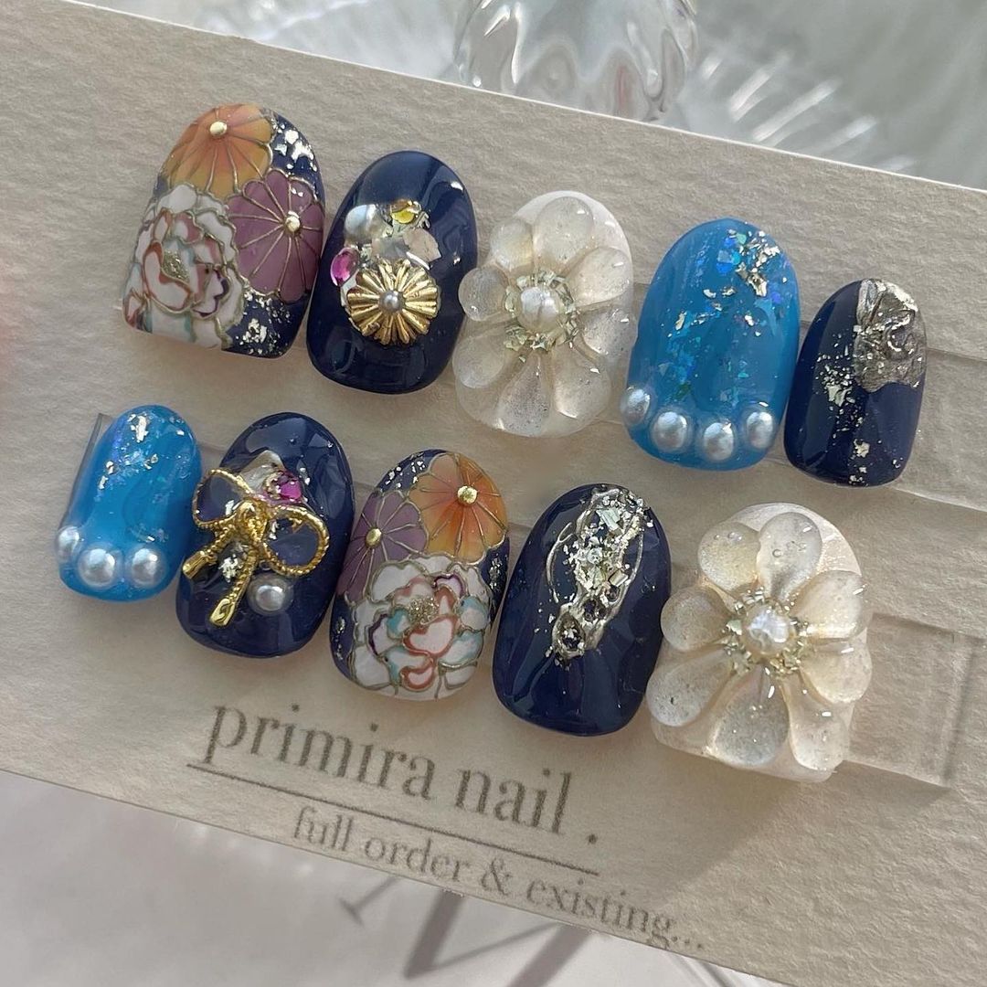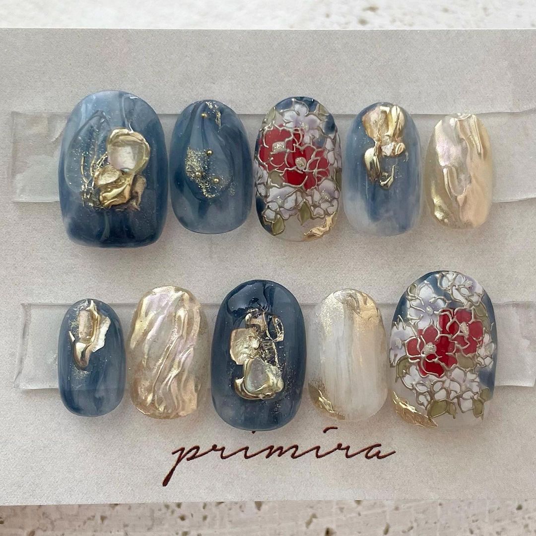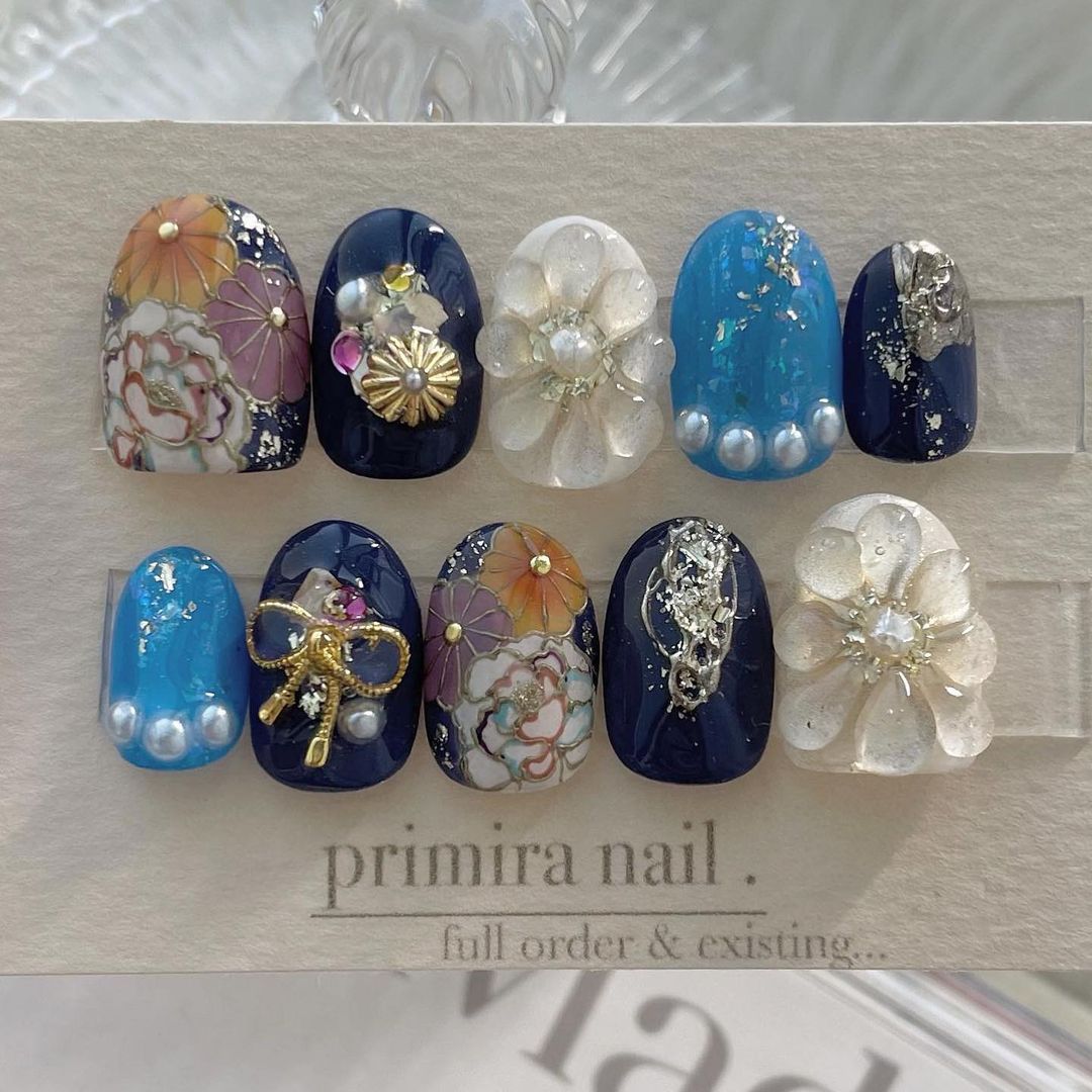 【最新版】ブルーカラーの和柄ネイル68選!振袖や袴に!