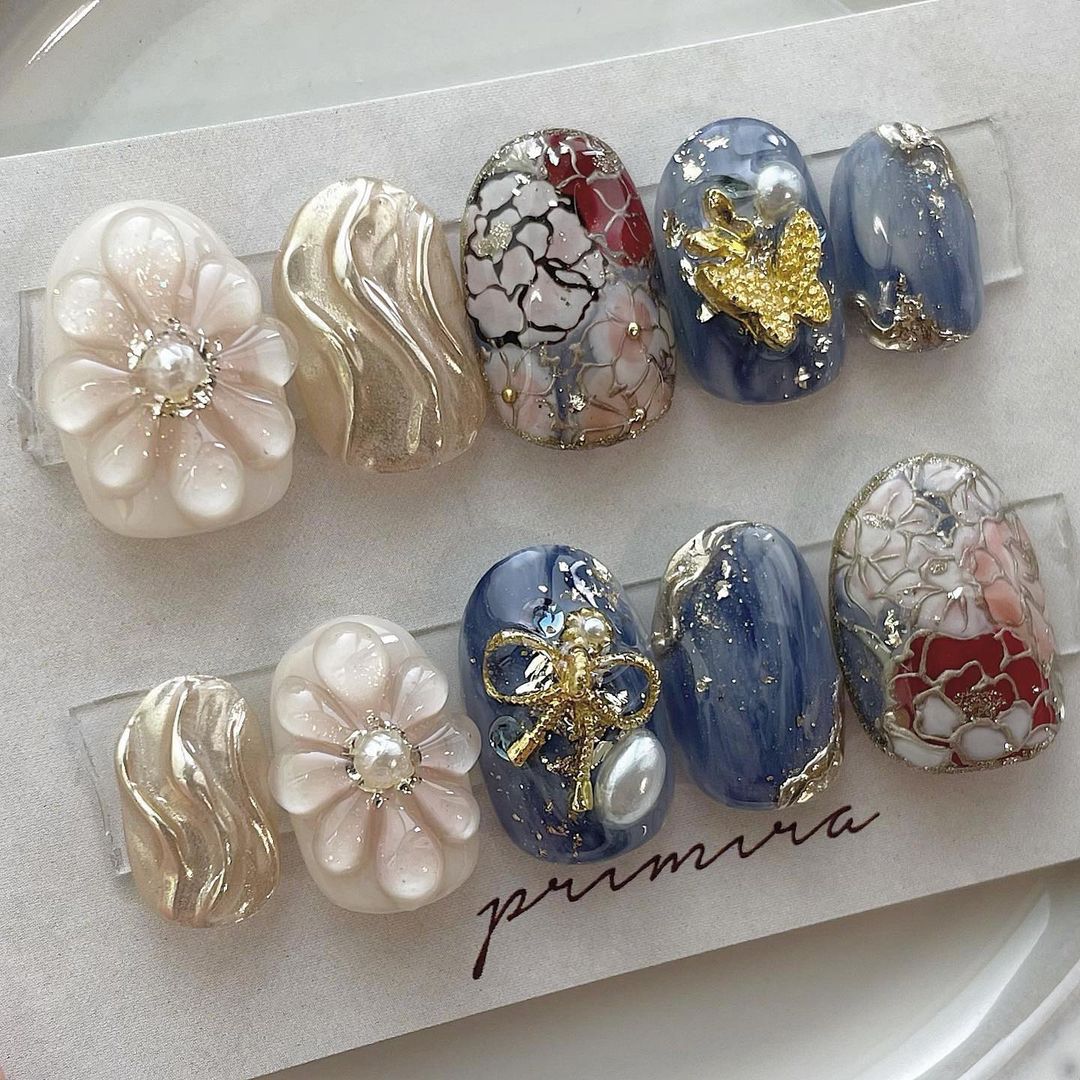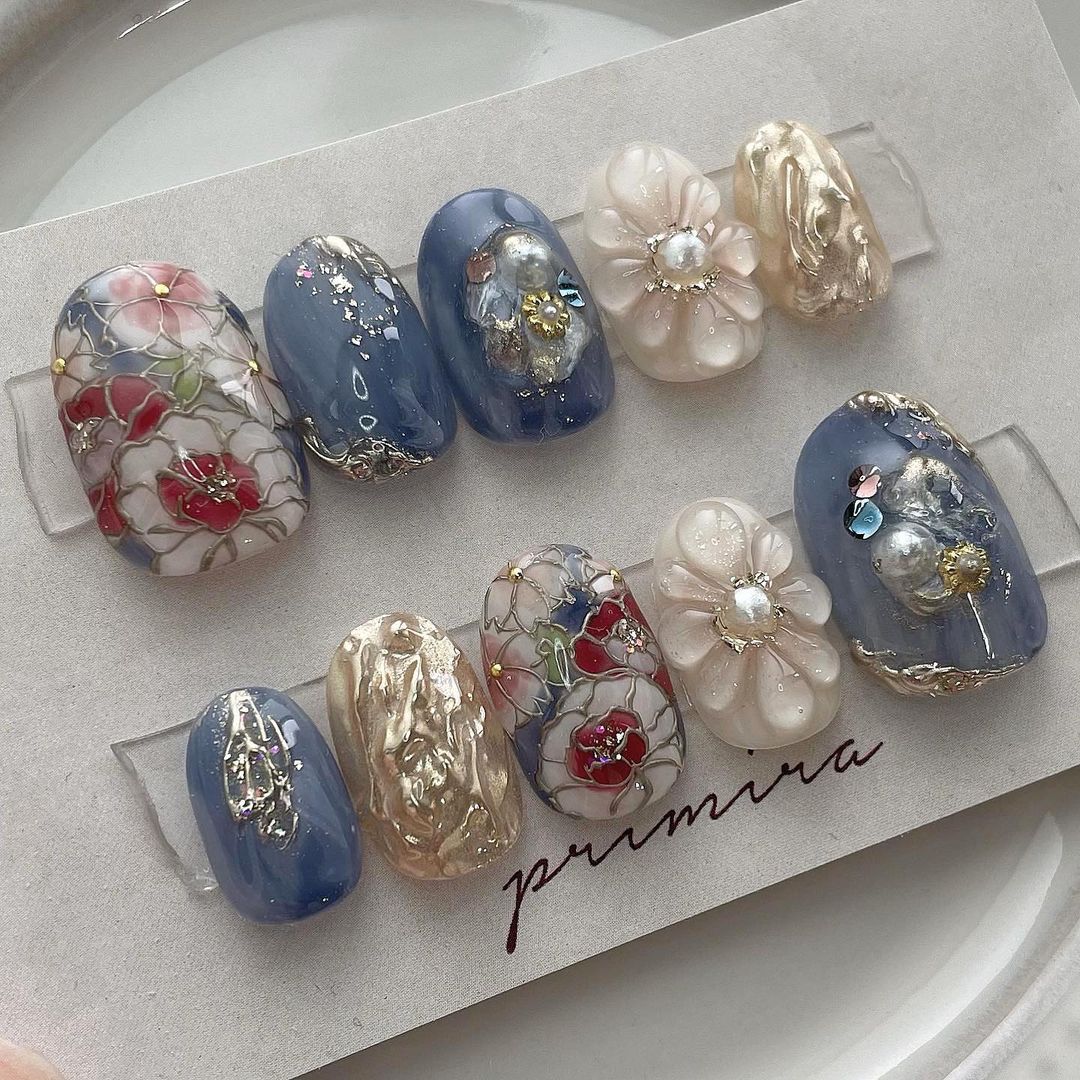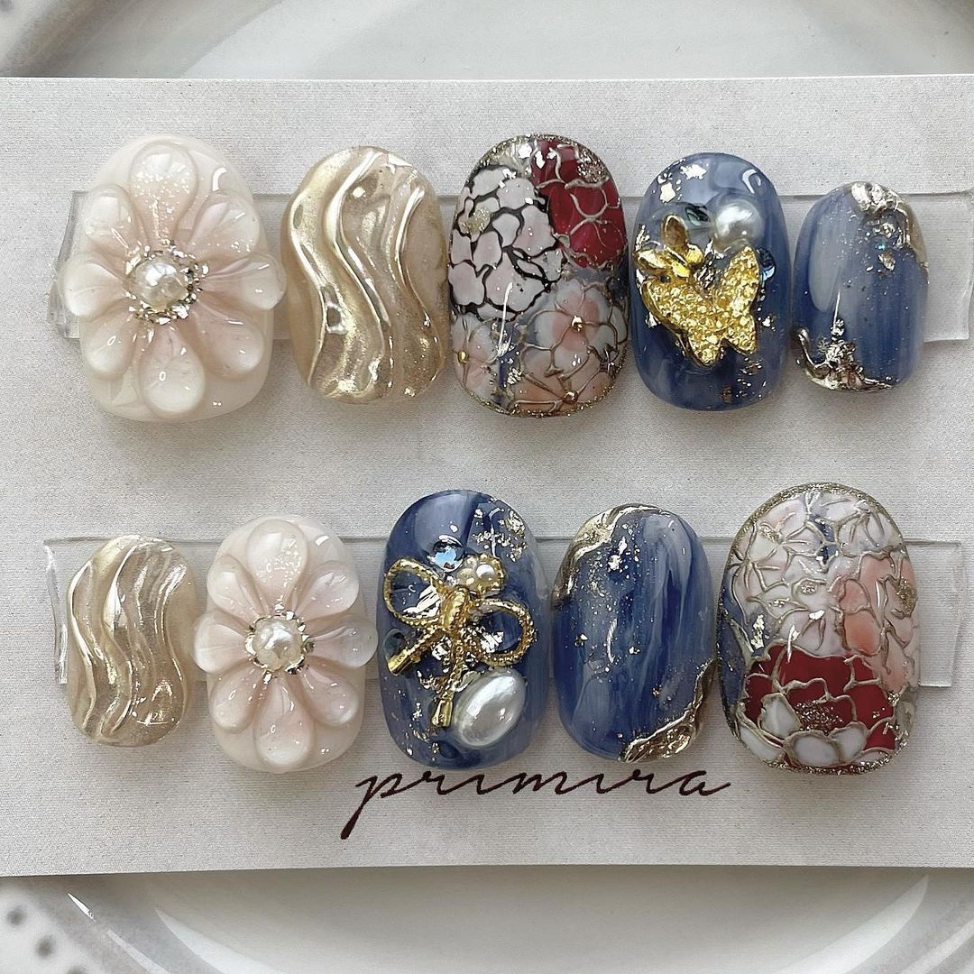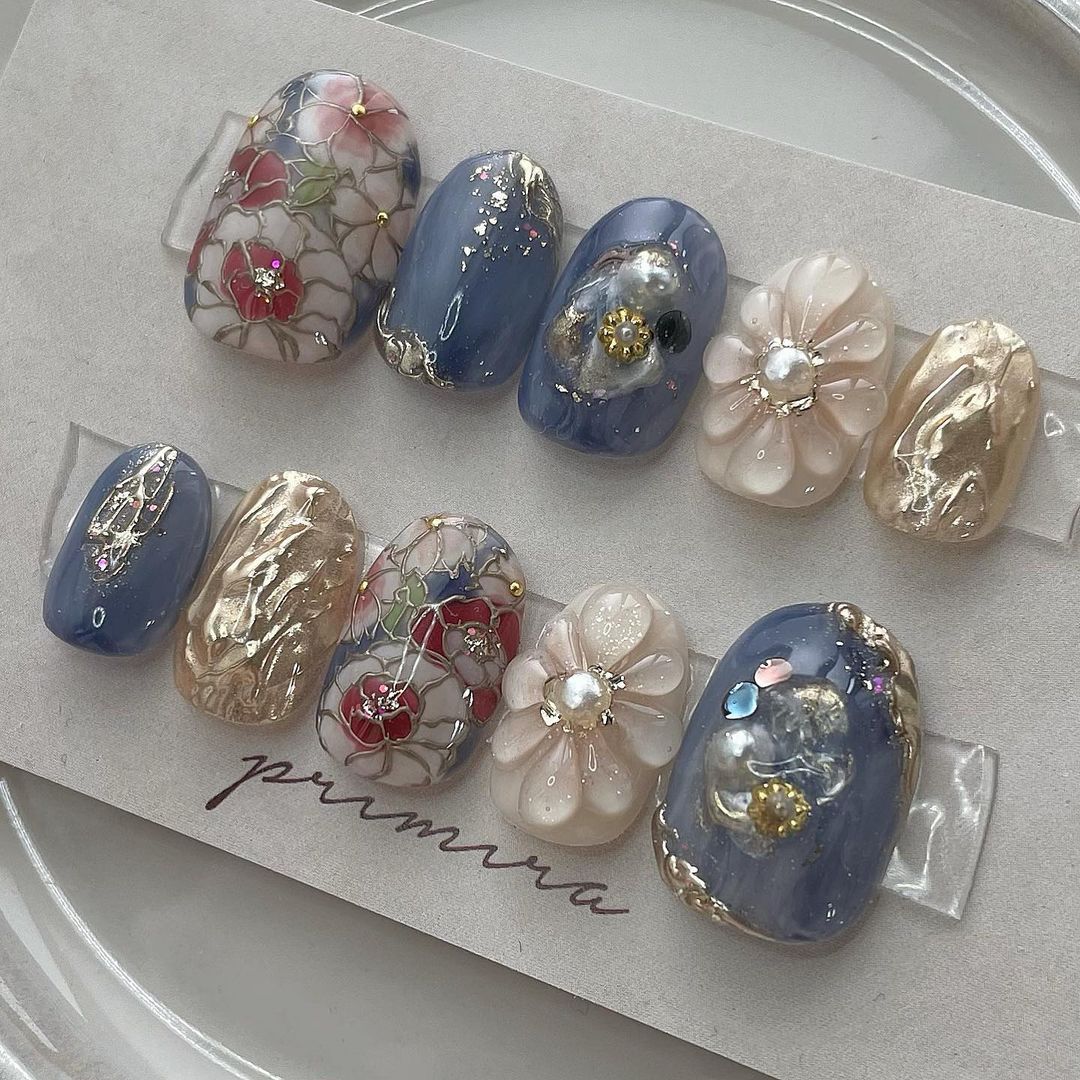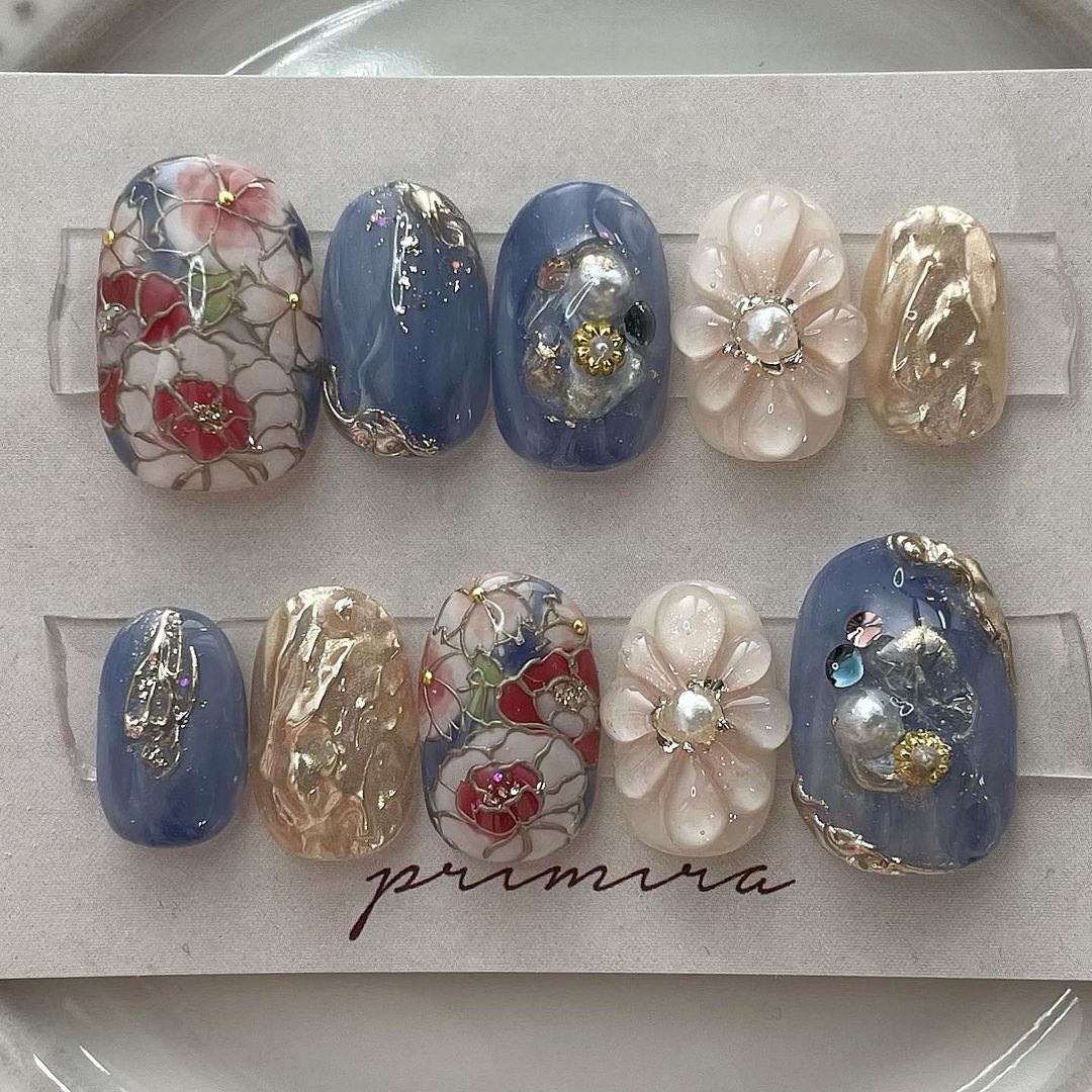 【最新版】ブルーカラーの和柄ネイル68選!振袖や袴に!