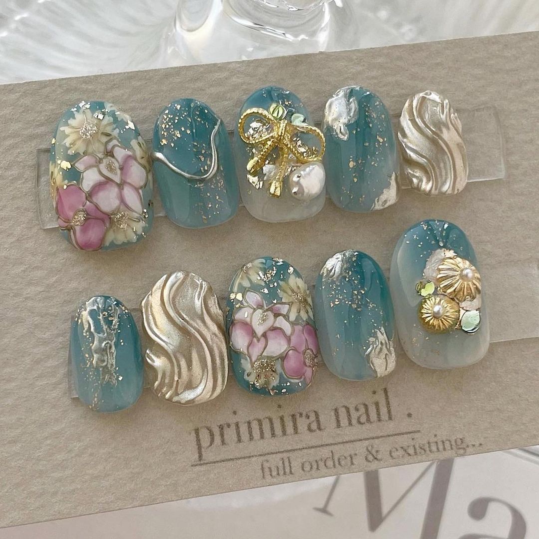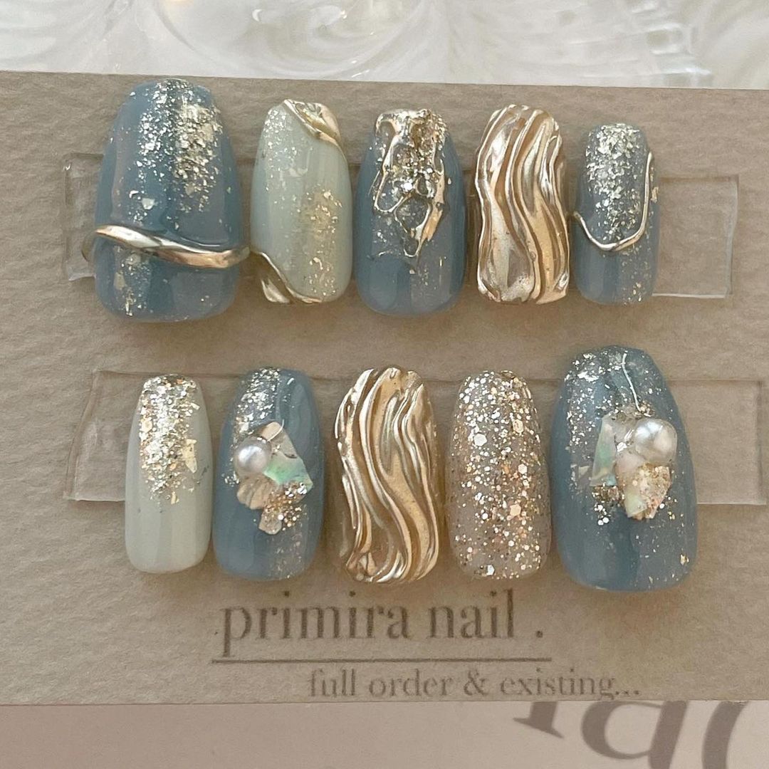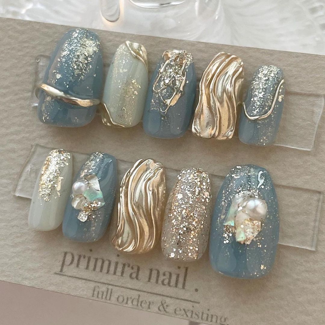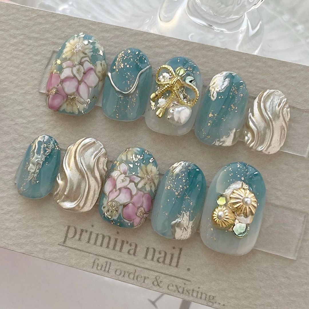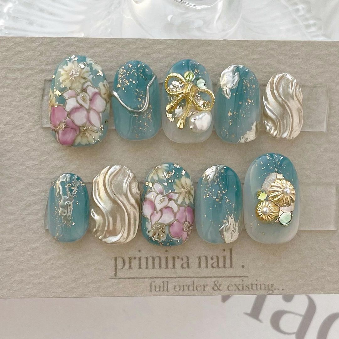 【最新版】ブルーカラーの和柄ネイル68選!振袖や袴に!
