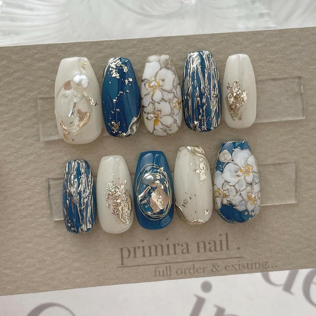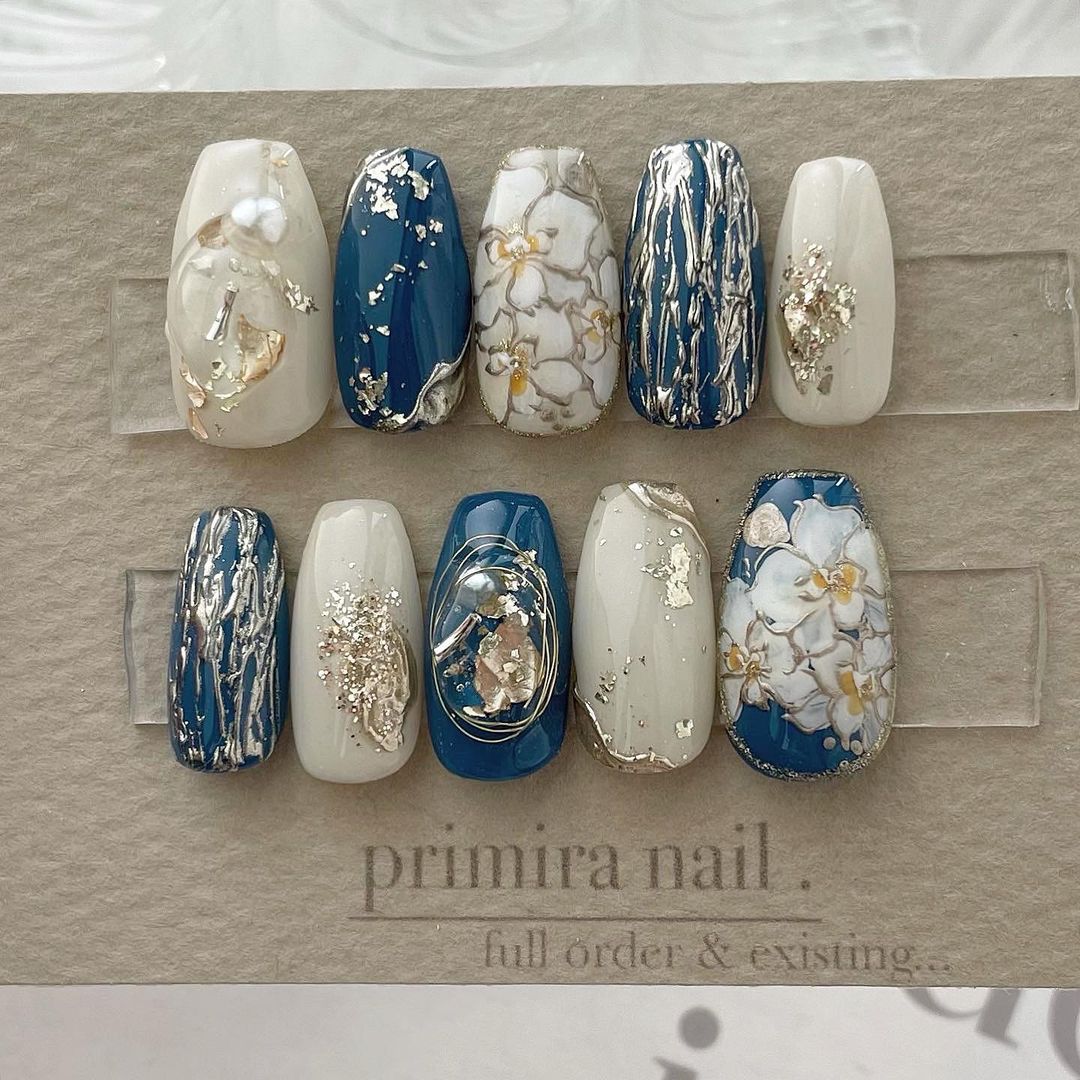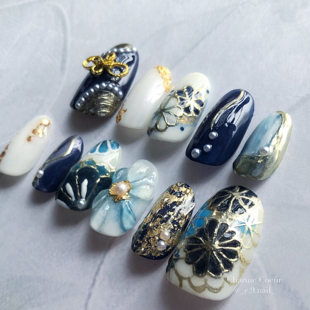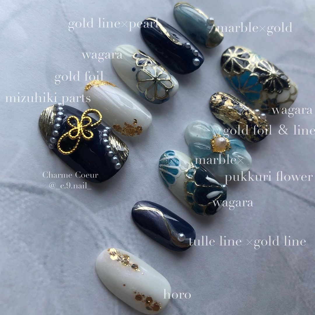 今回はブルーカラーの和柄ネイルデザインをご紹介します!