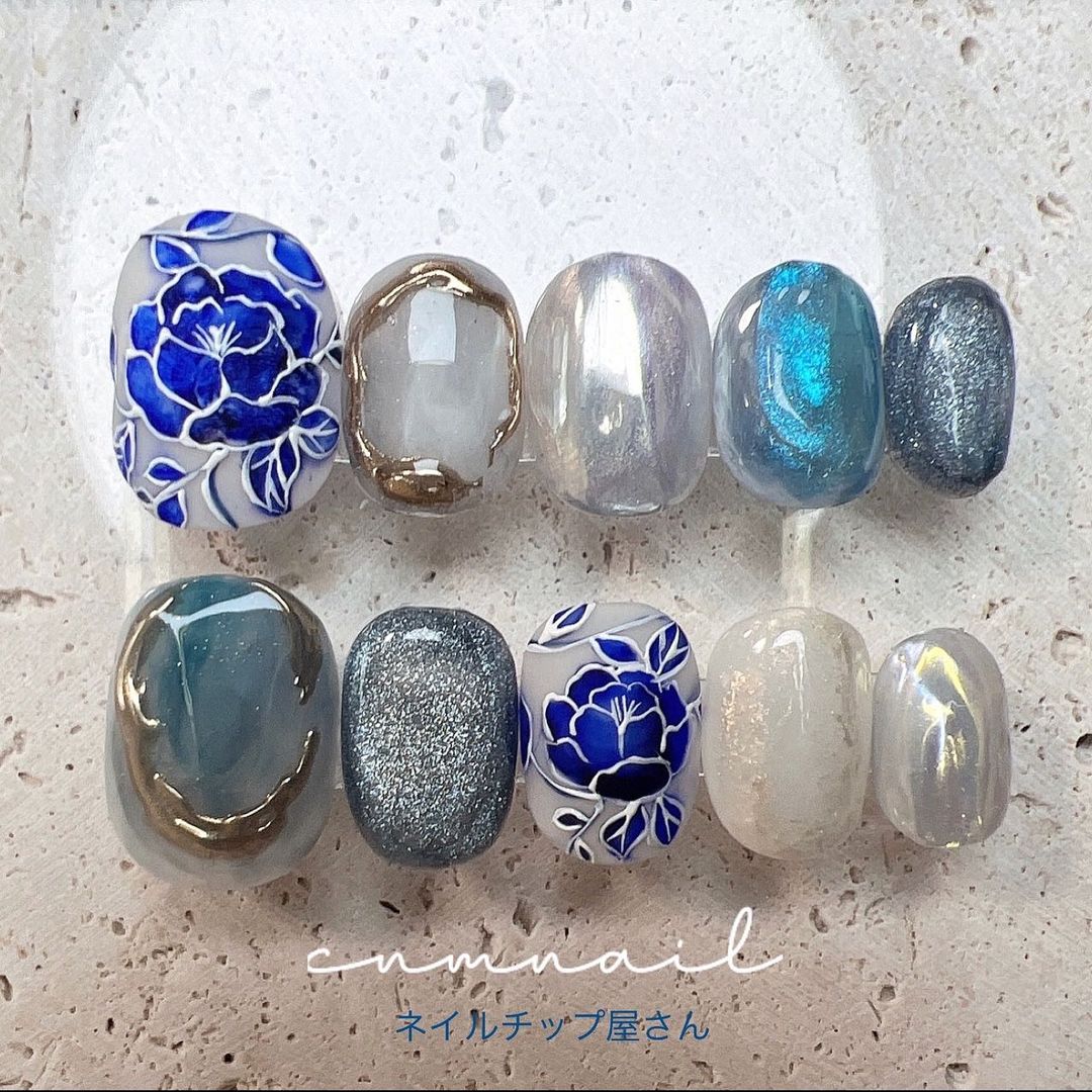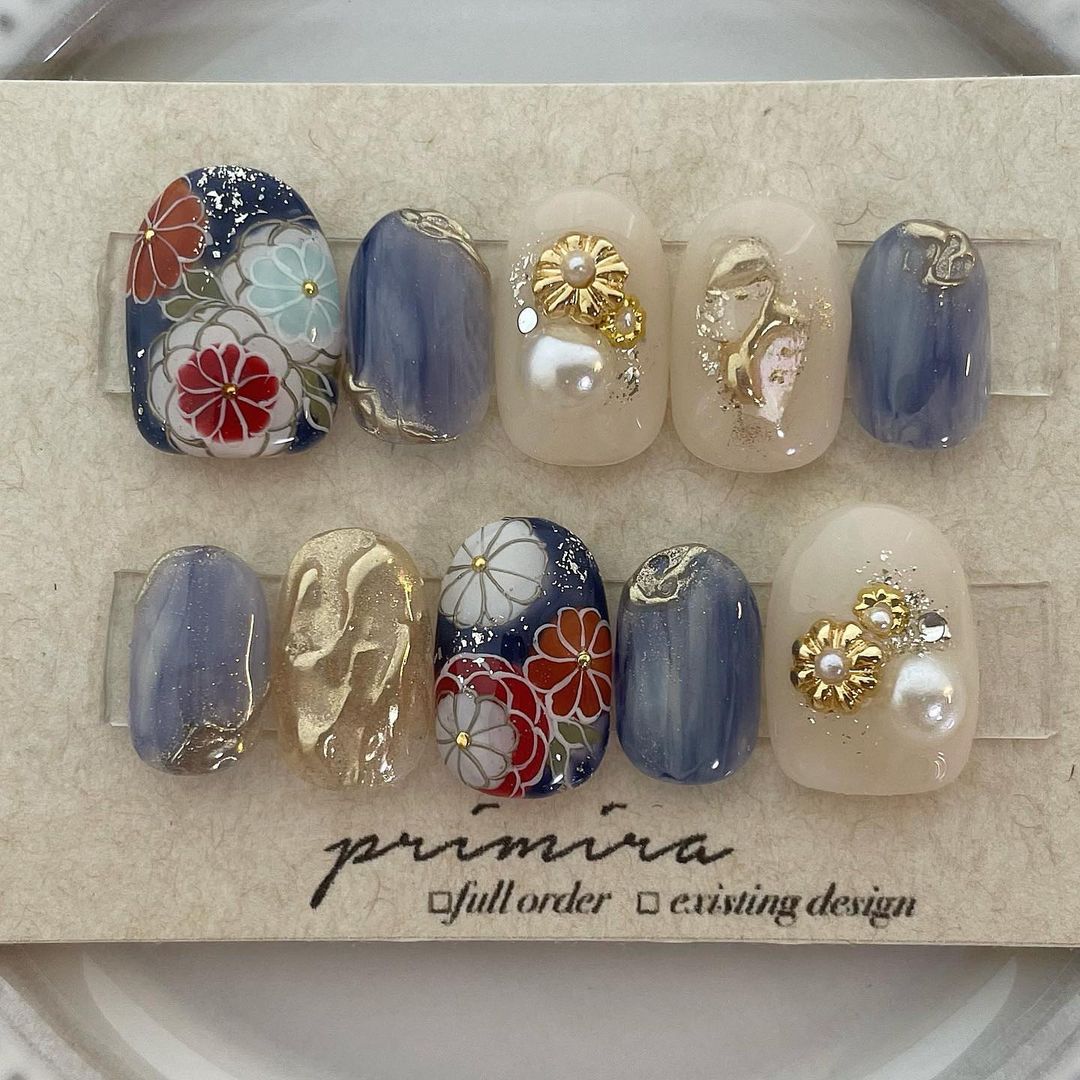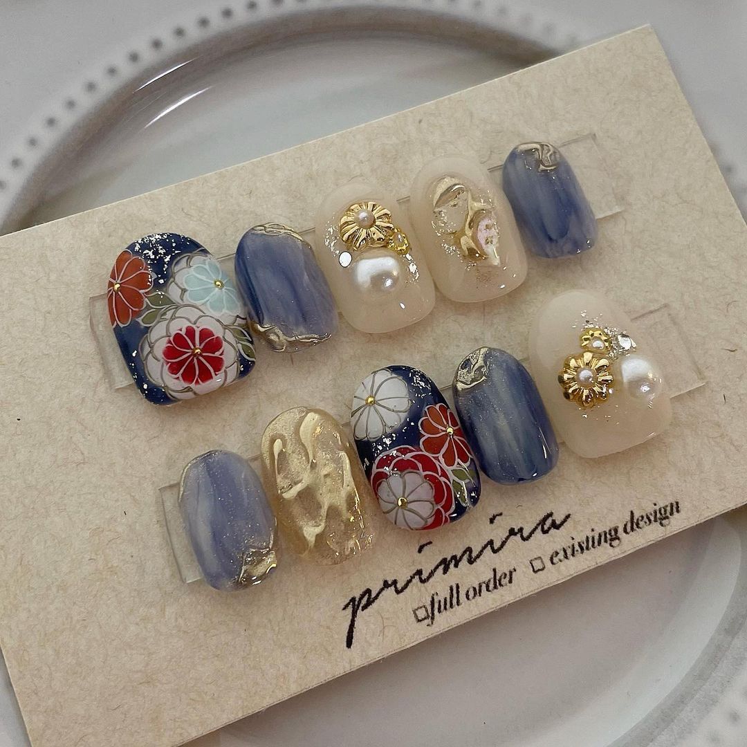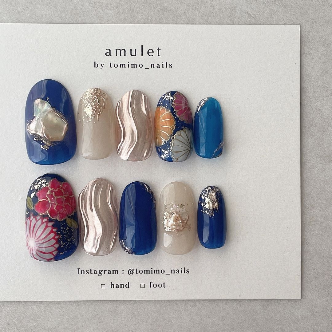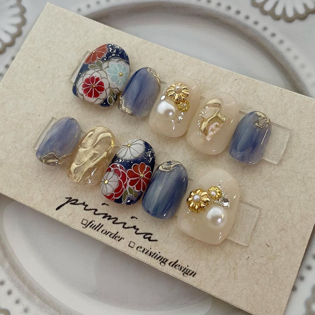 【保存版】明るめから深めまで!ブルーカラーの和柄ネイル69選!