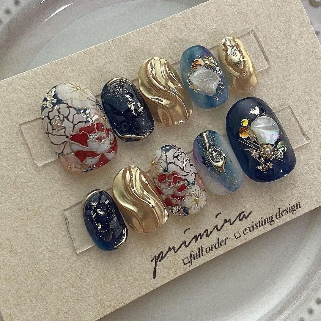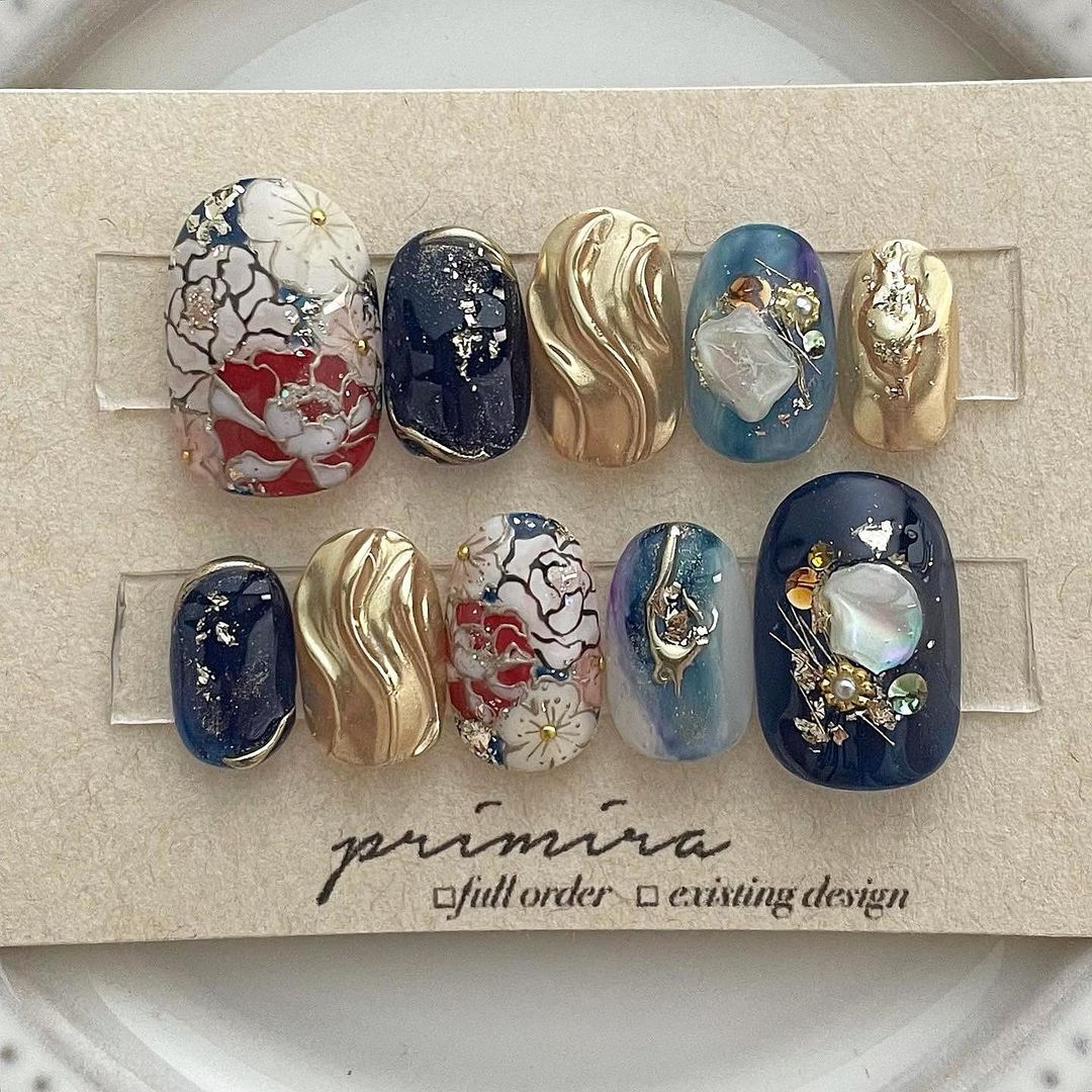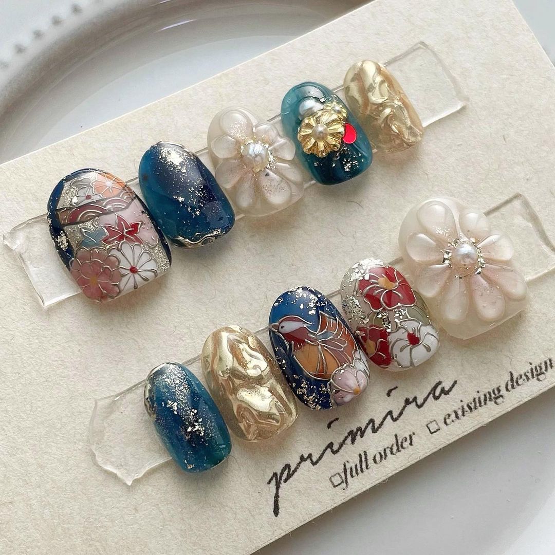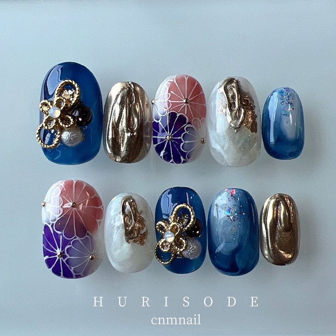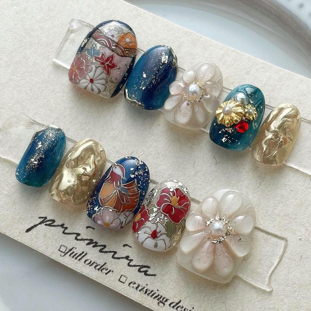 【保存版】明るめから深めまで!ブルーカラーの和柄ネイル69選!