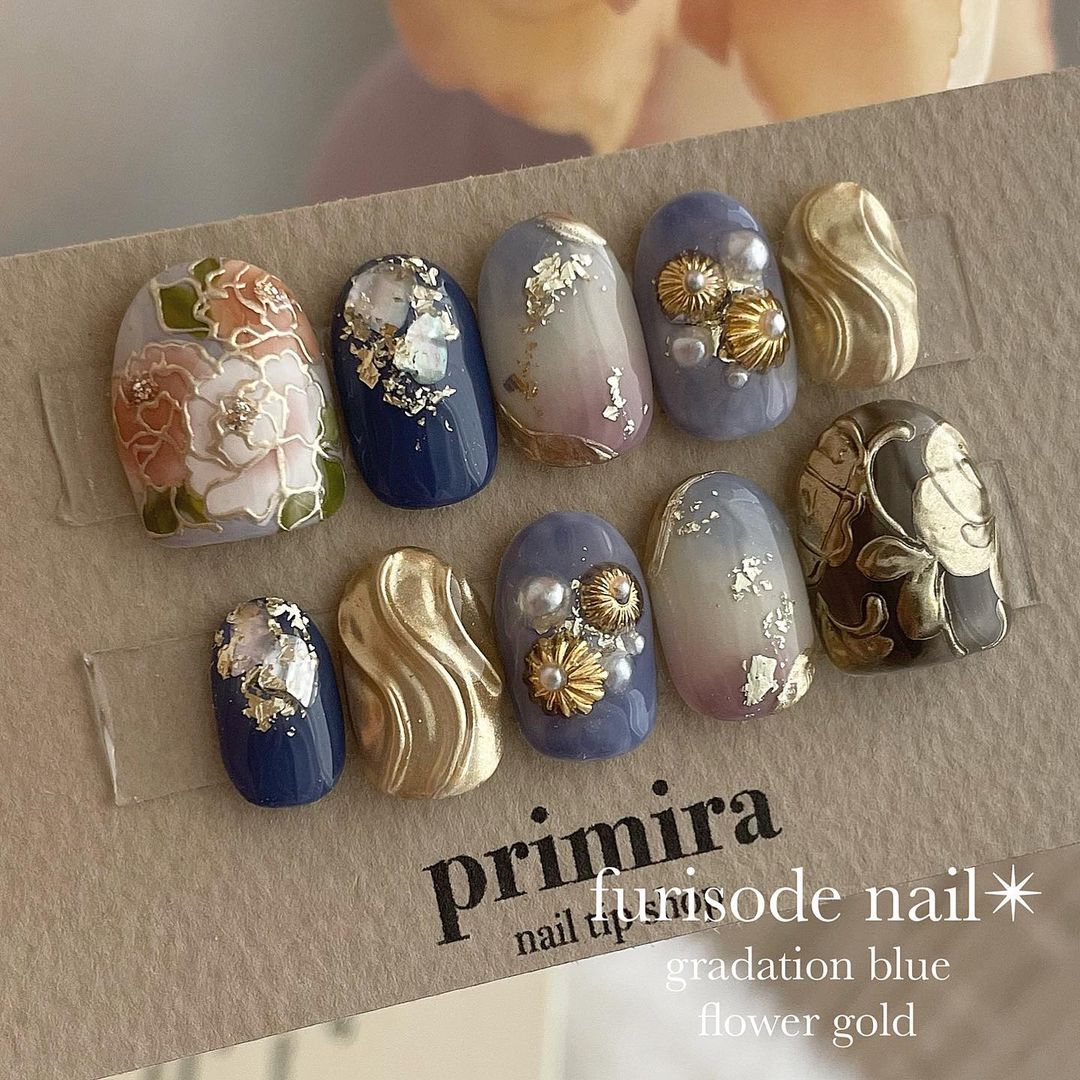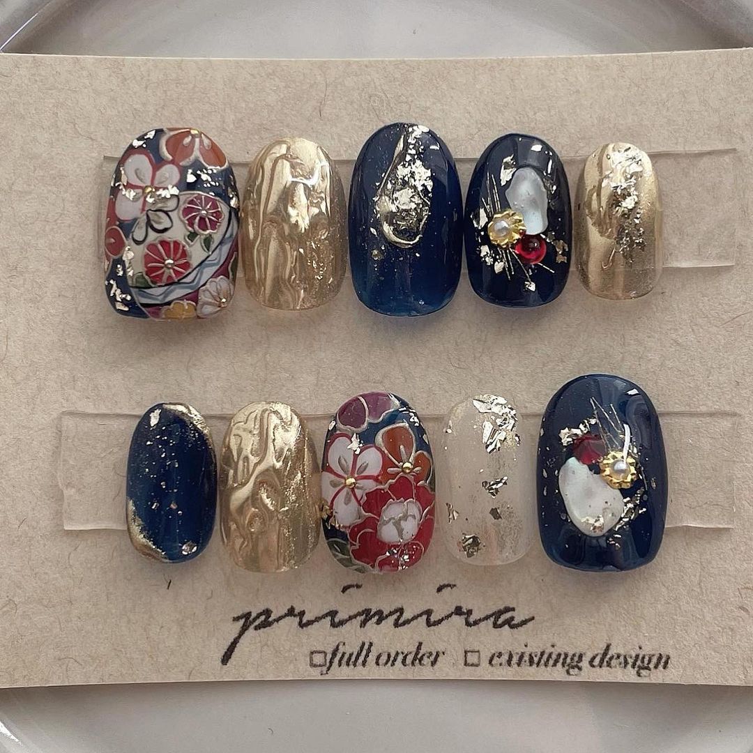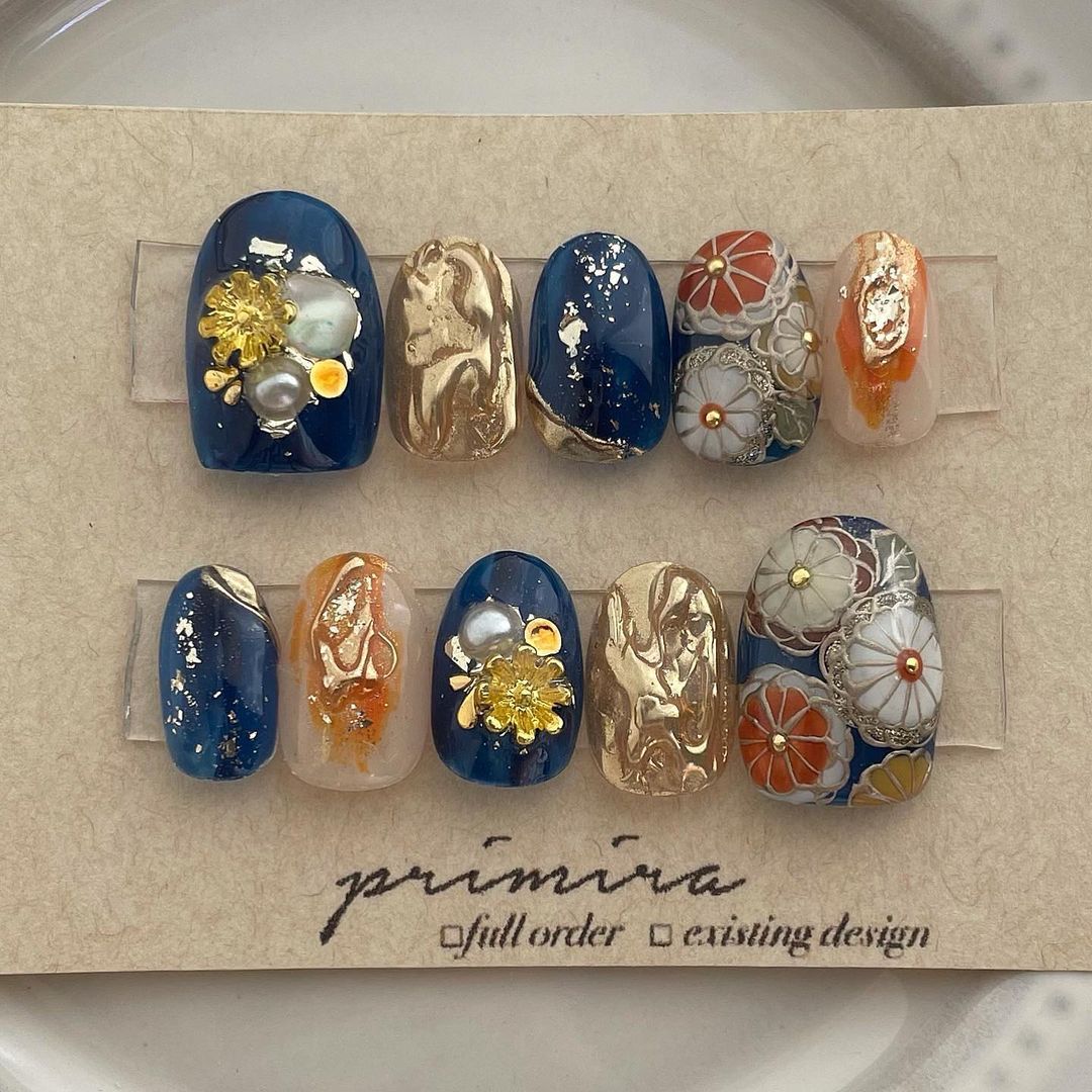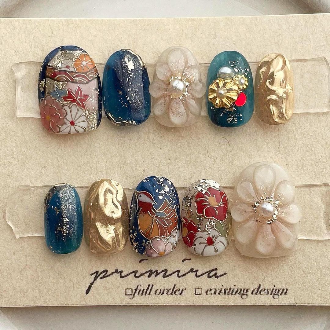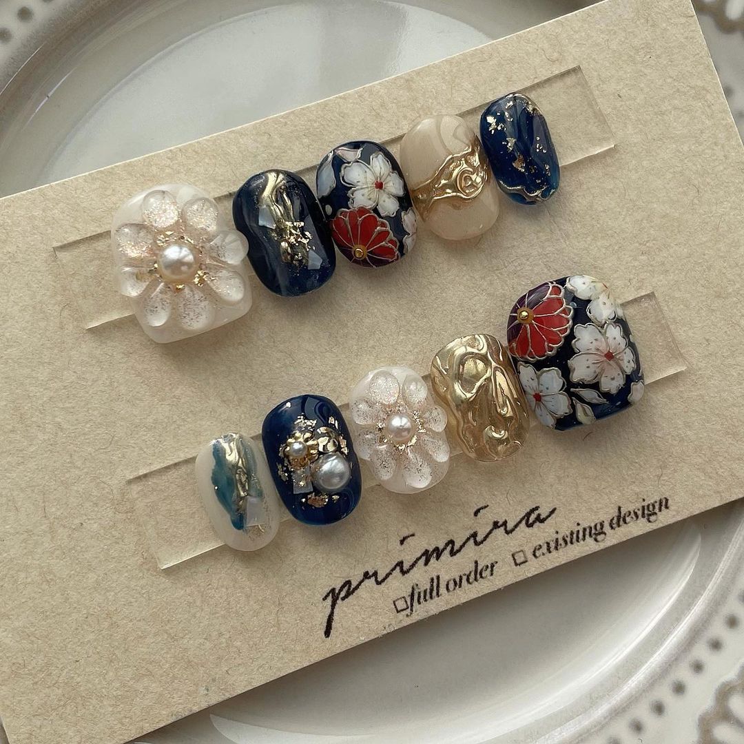 【保存版】明るめから深めまで!ブルーカラーの和柄ネイル69選!