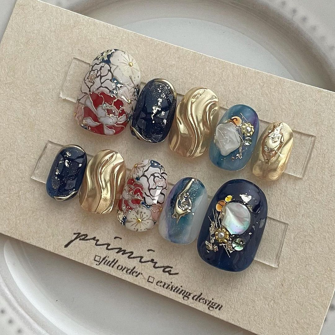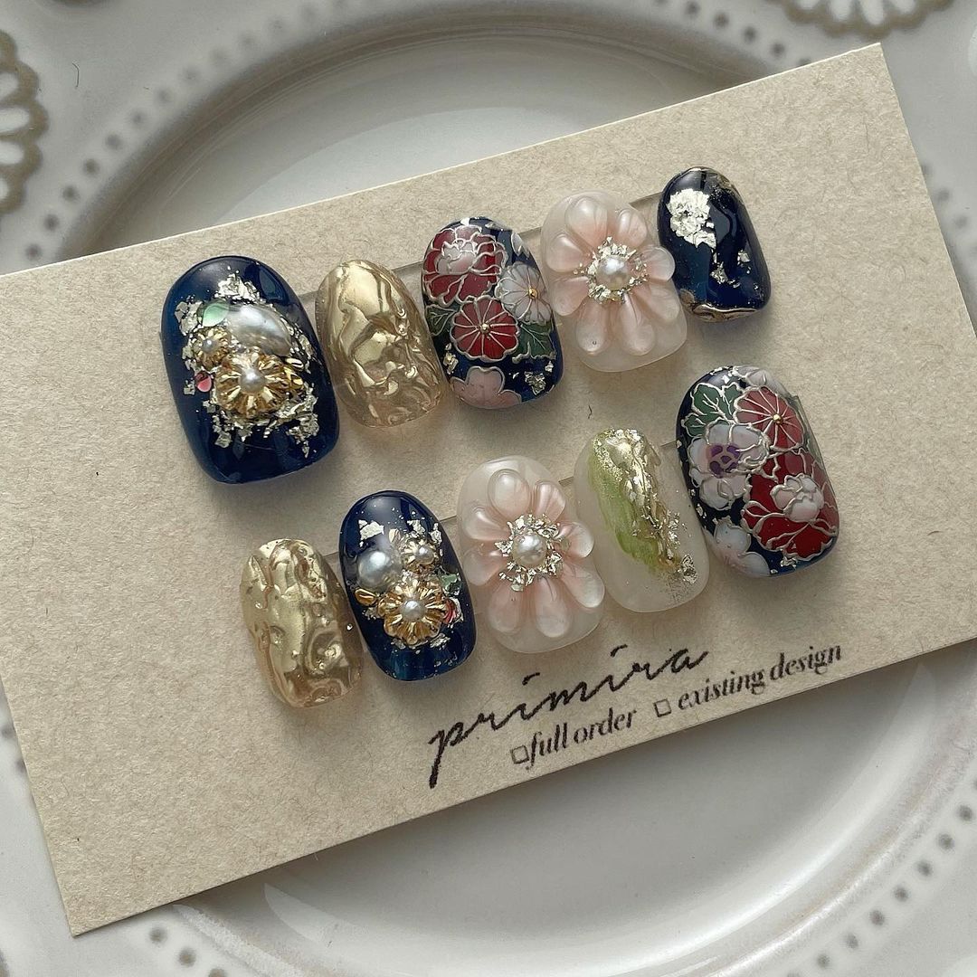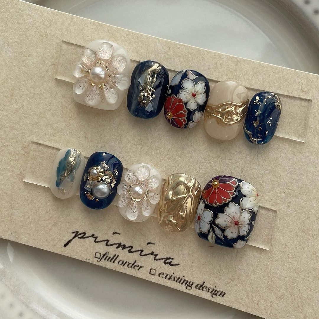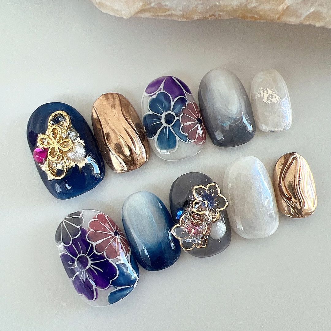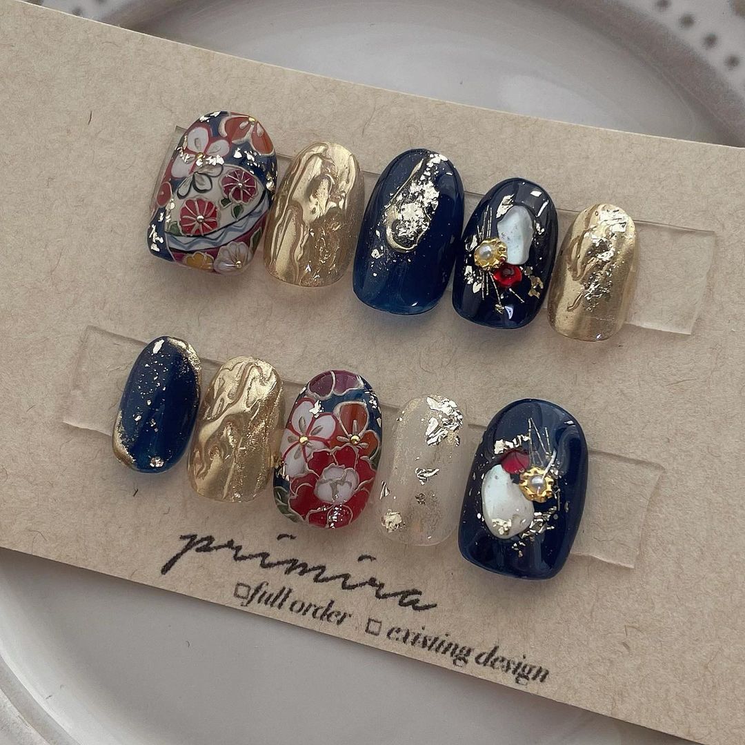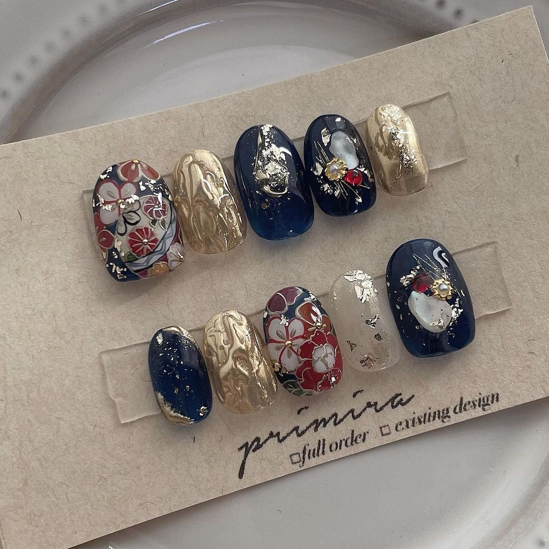 【保存版】明るめから深めまで!ブルーカラーの和柄ネイル69選!