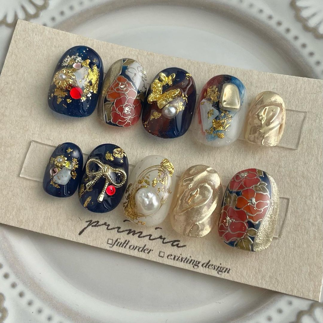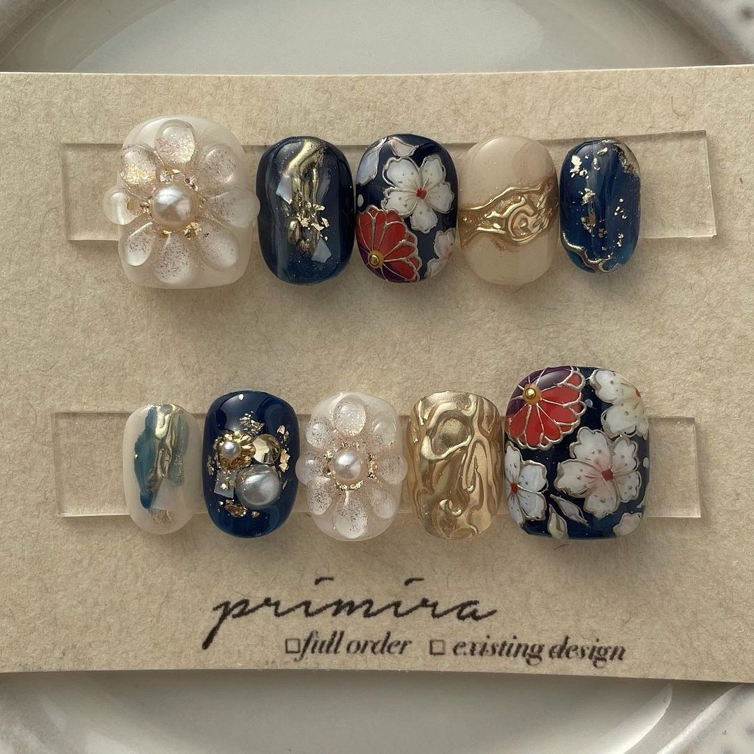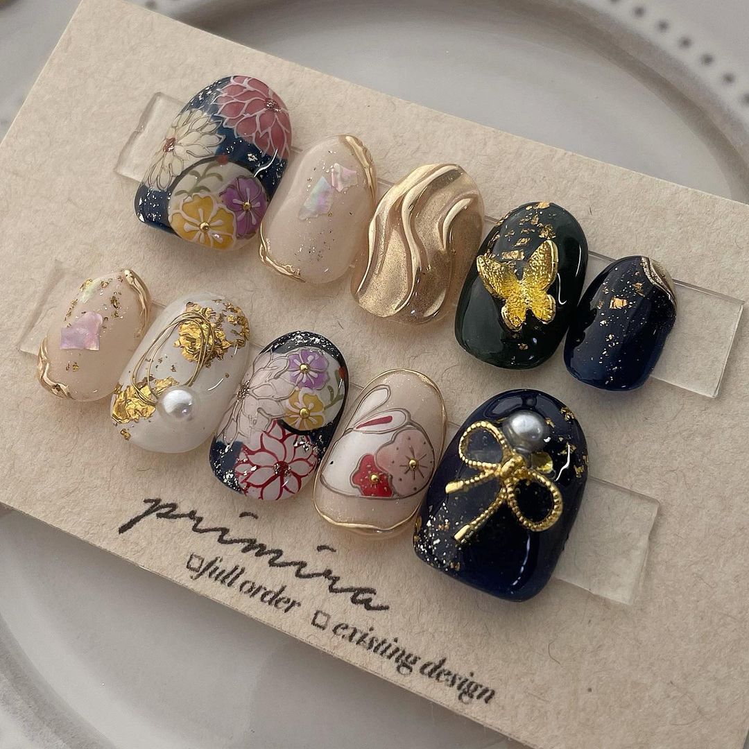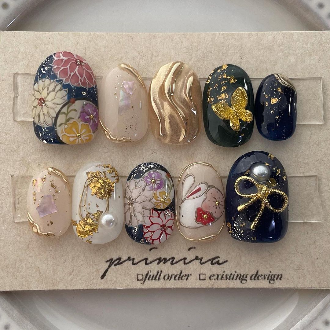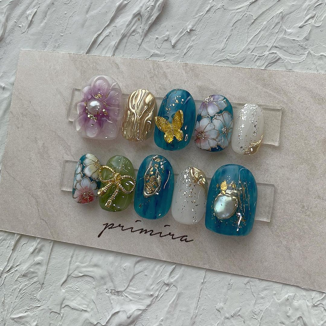 【保存版】明るめから深めまで!ブルーカラーの和柄ネイル69選!