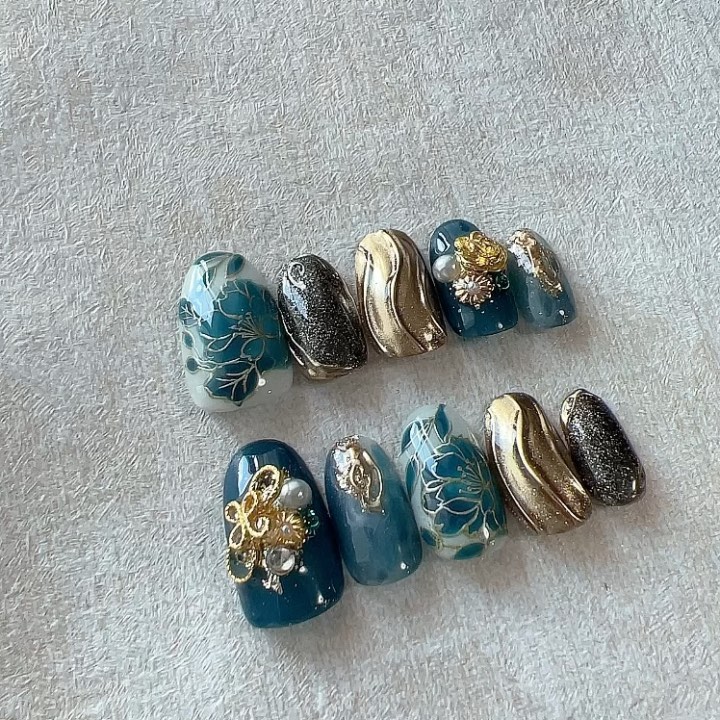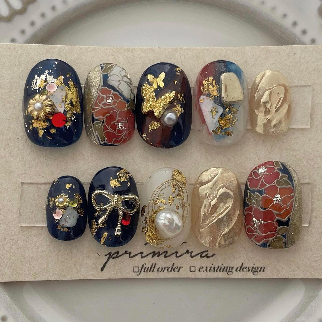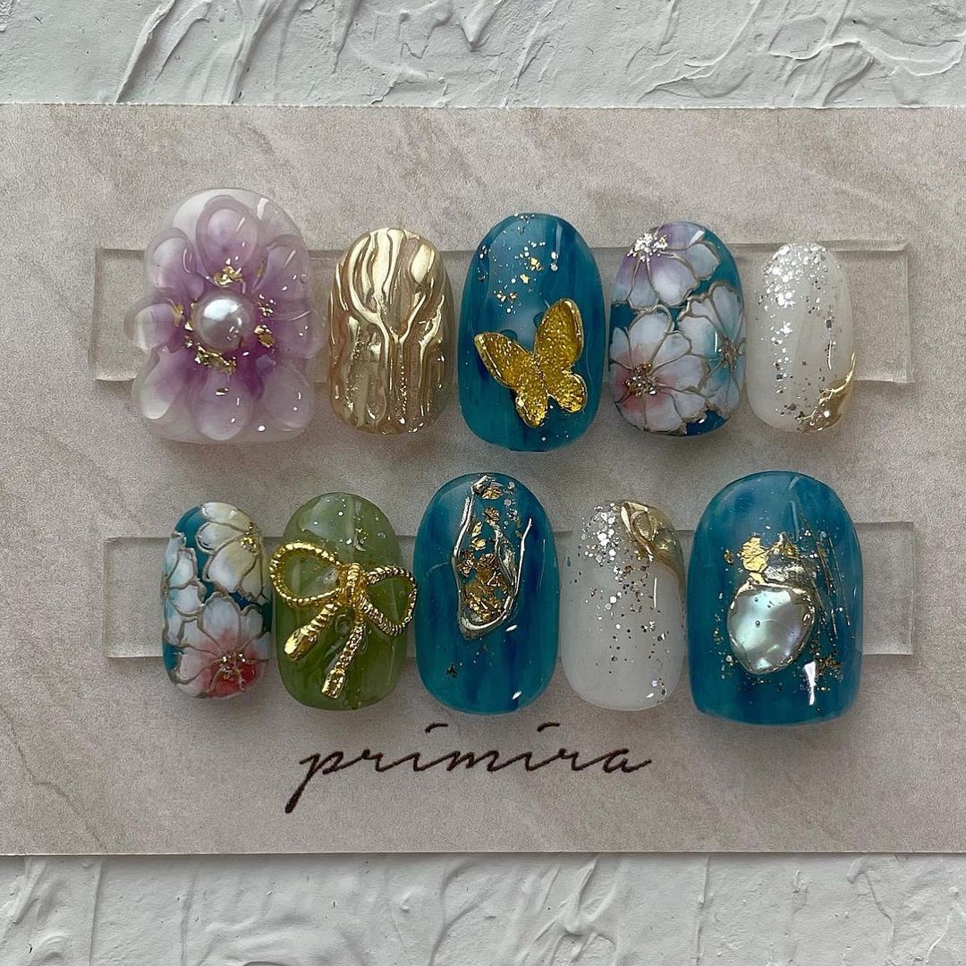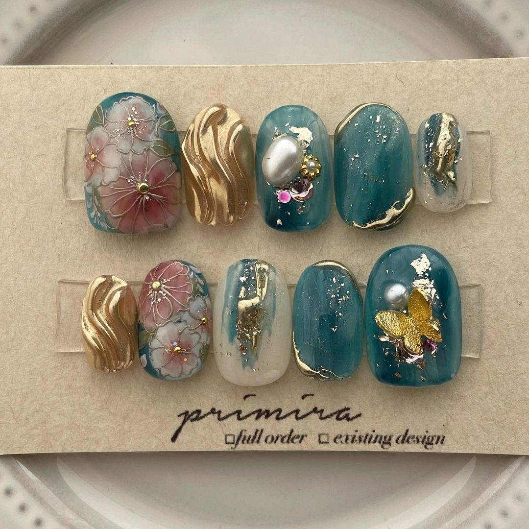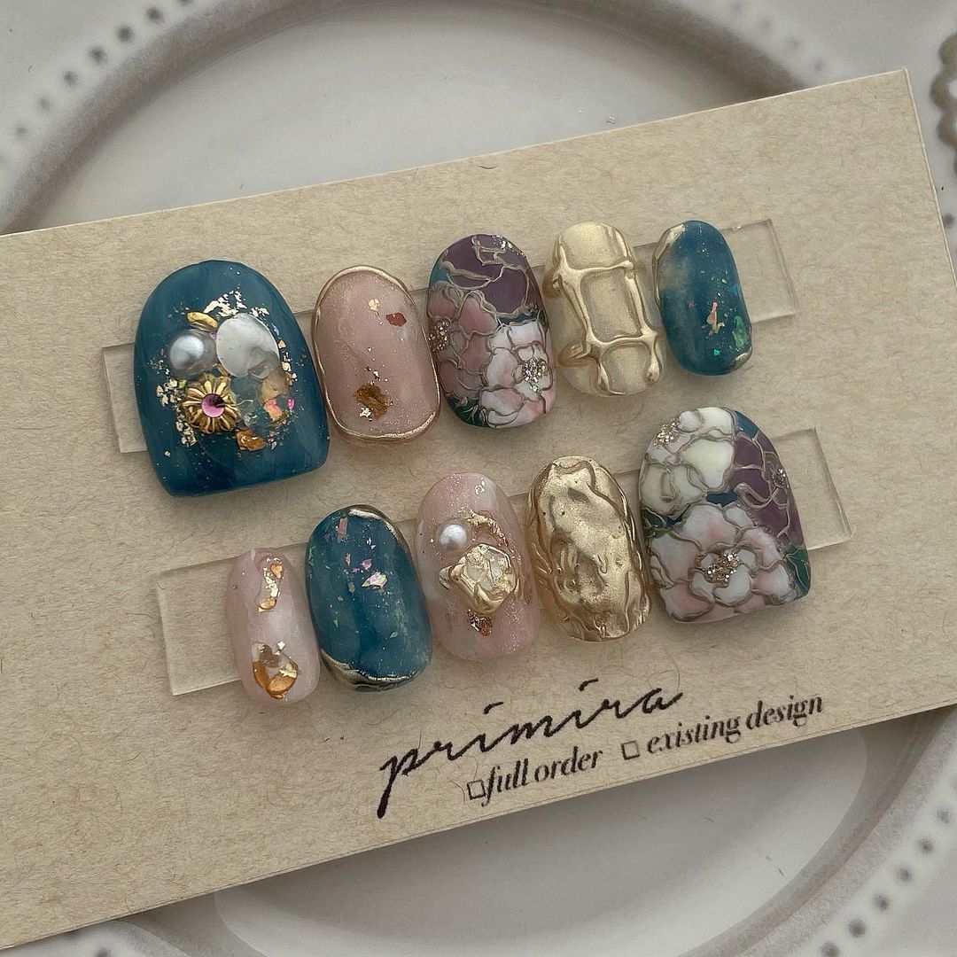 【保存版】明るめから深めまで!ブルーカラーの和柄ネイル69選!