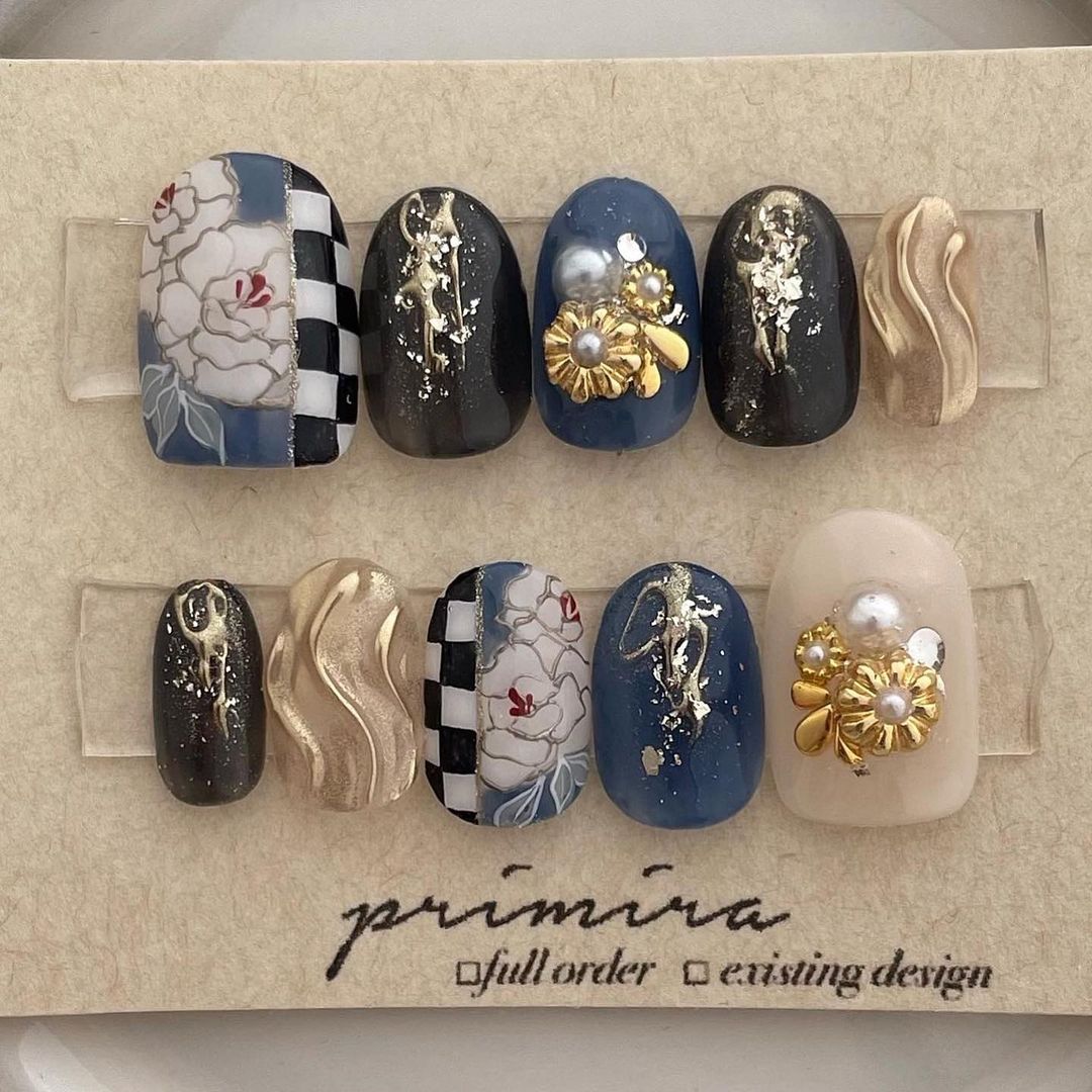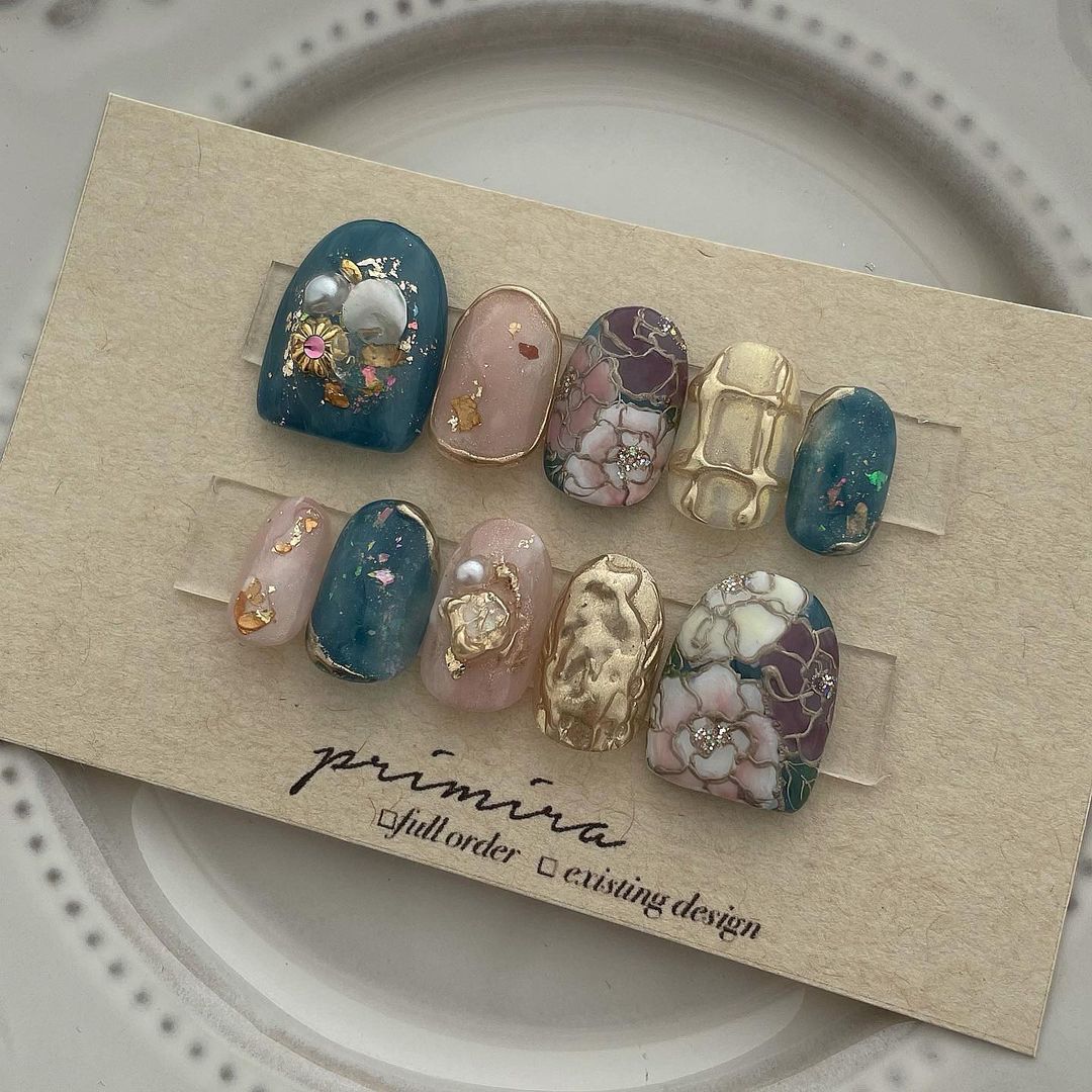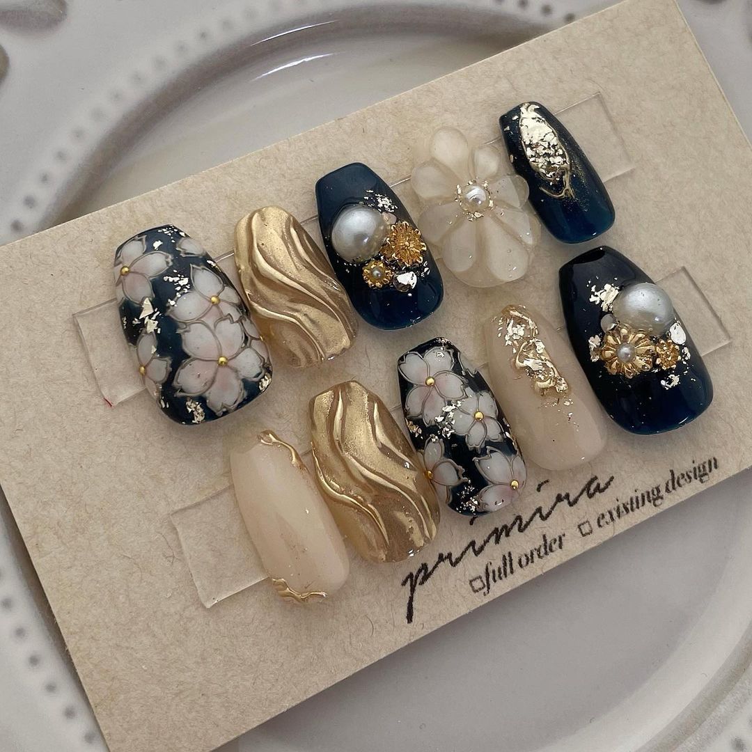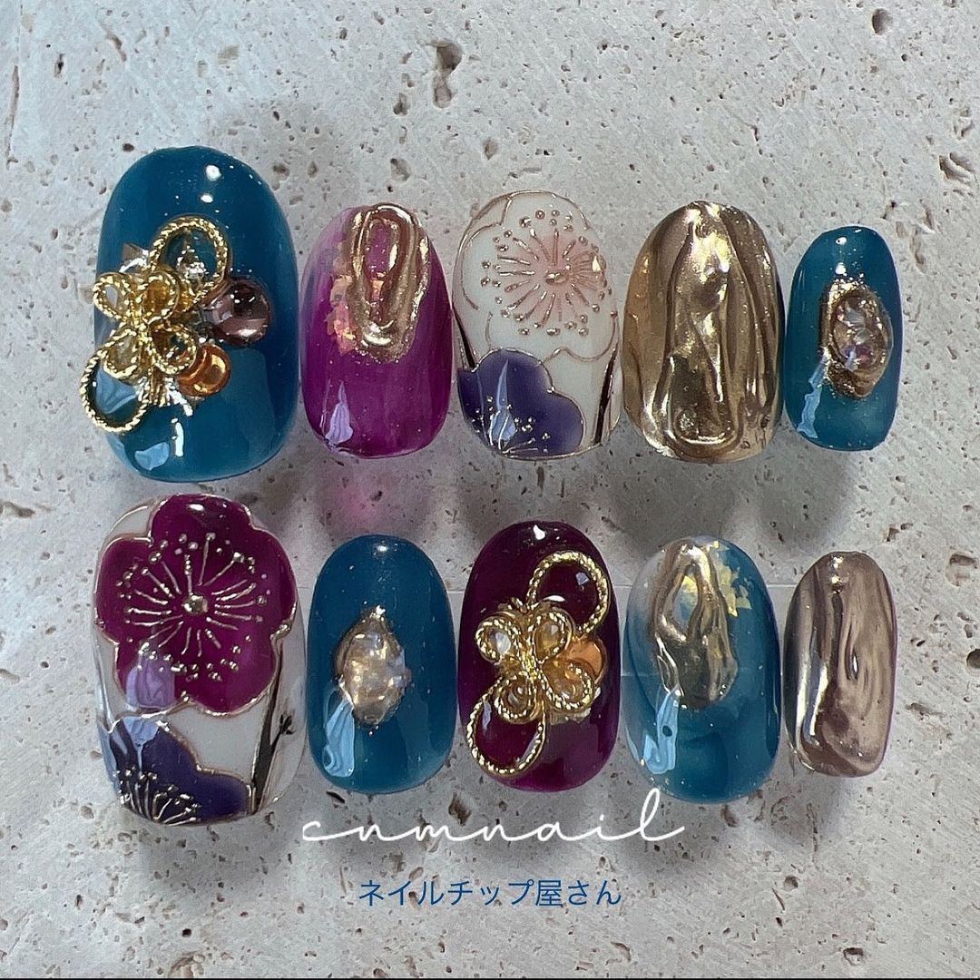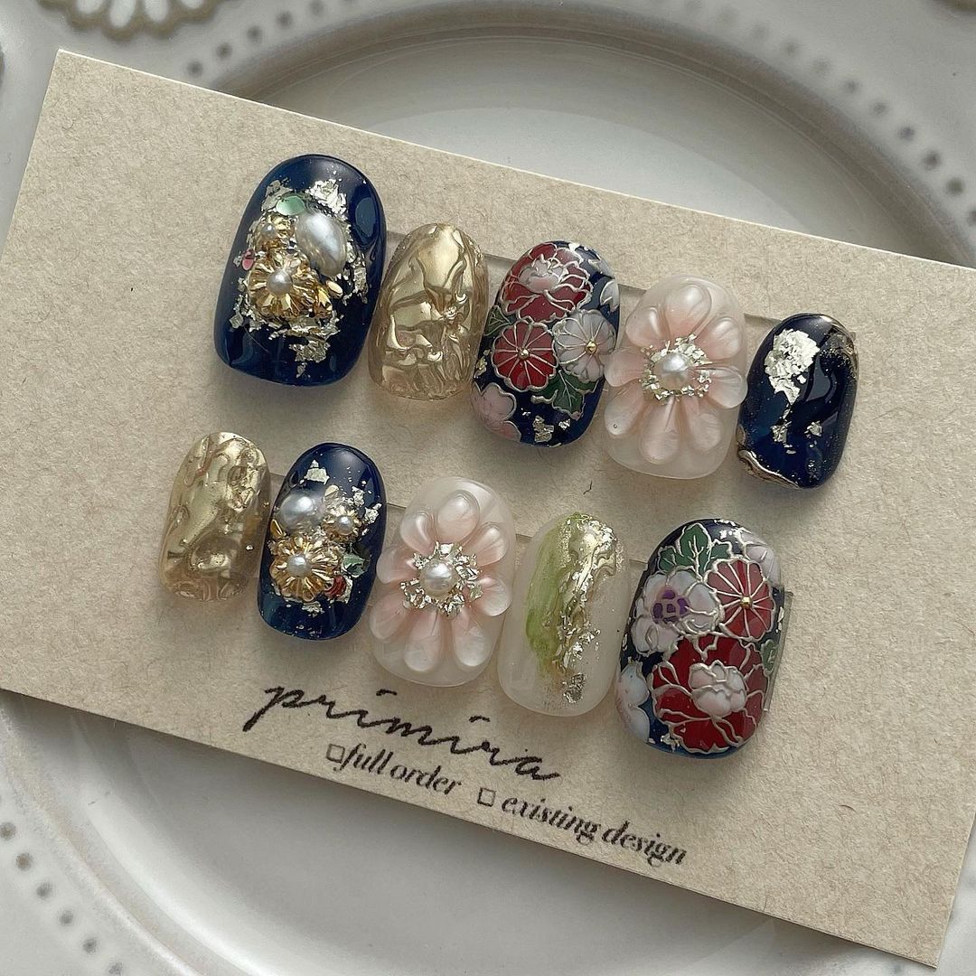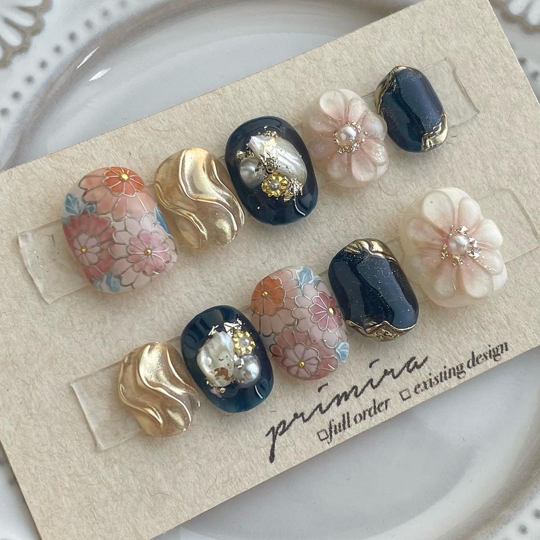 【保存版】明るめから深めまで!ブルーカラーの和柄ネイル69選!