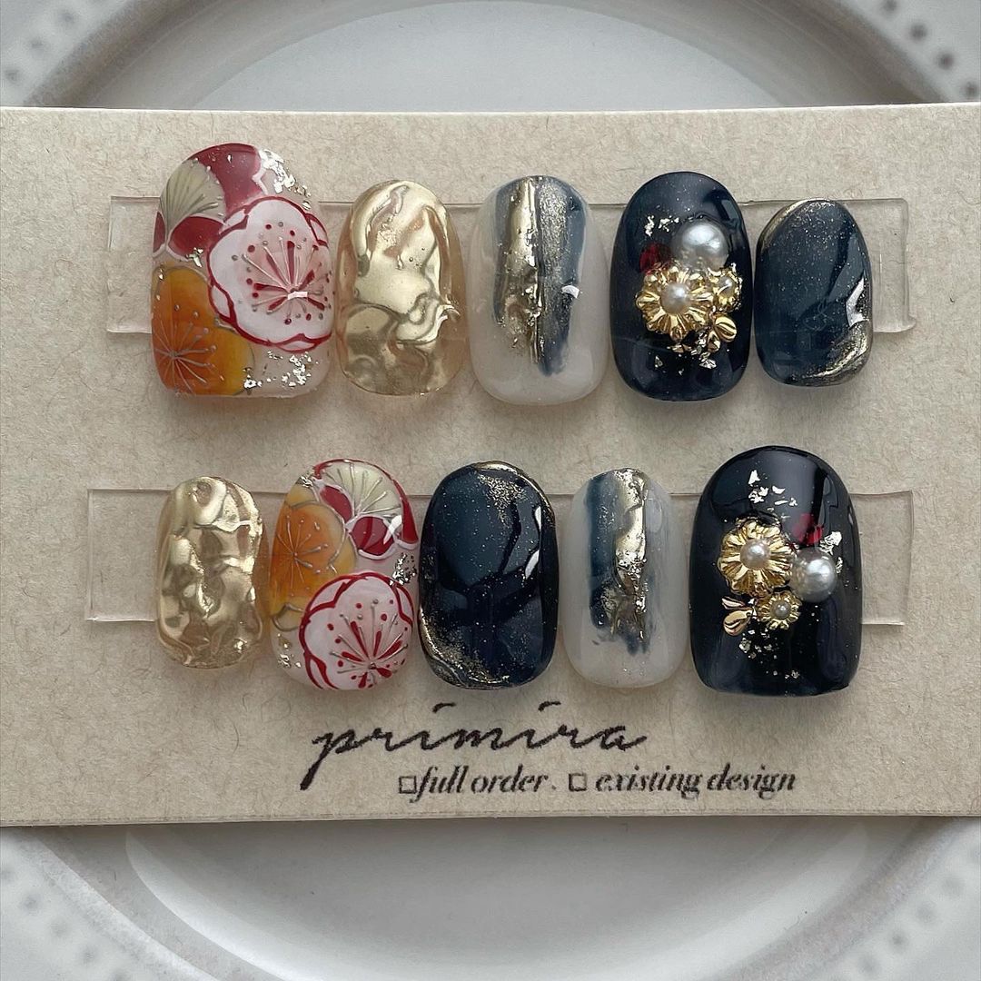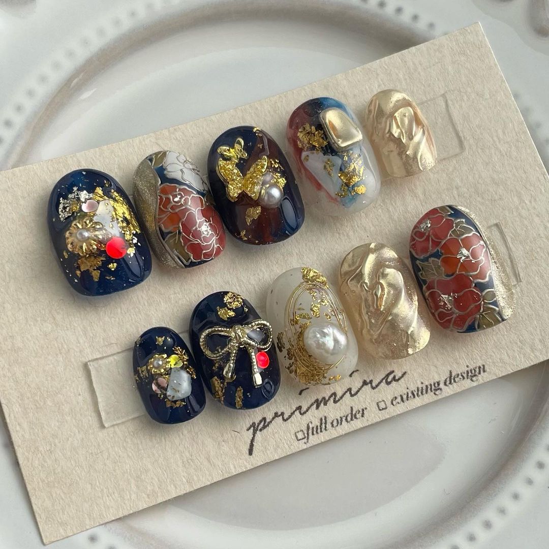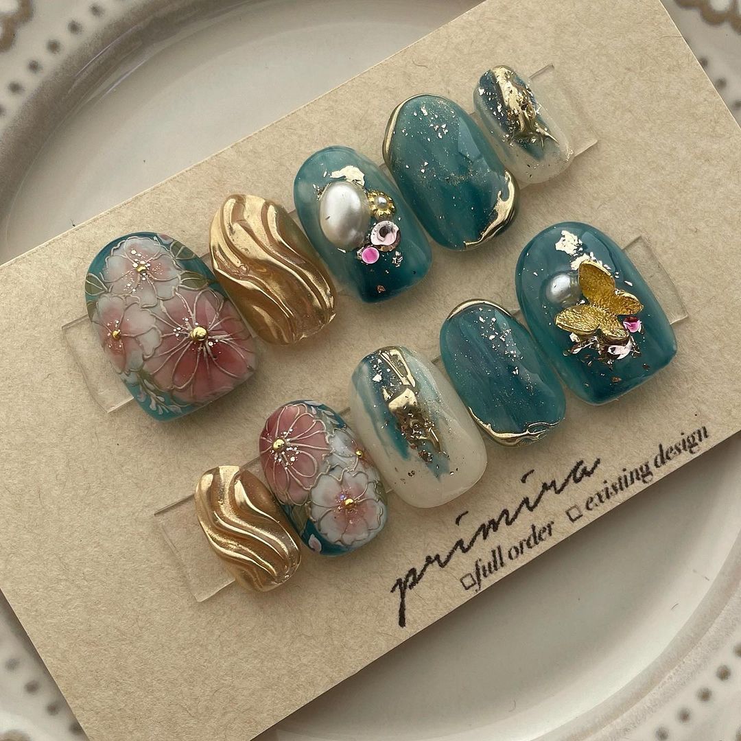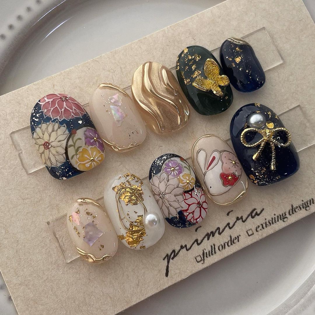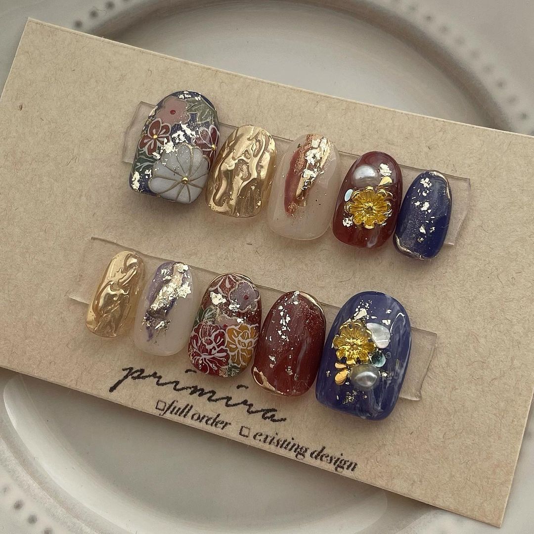 【保存版】明るめから深めまで!ブルーカラーの和柄ネイル69選!