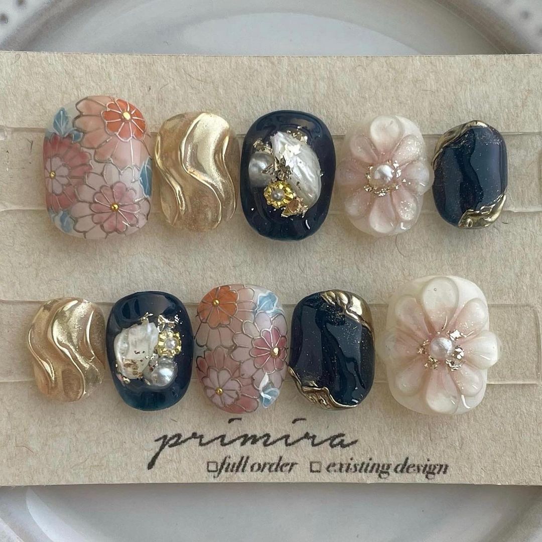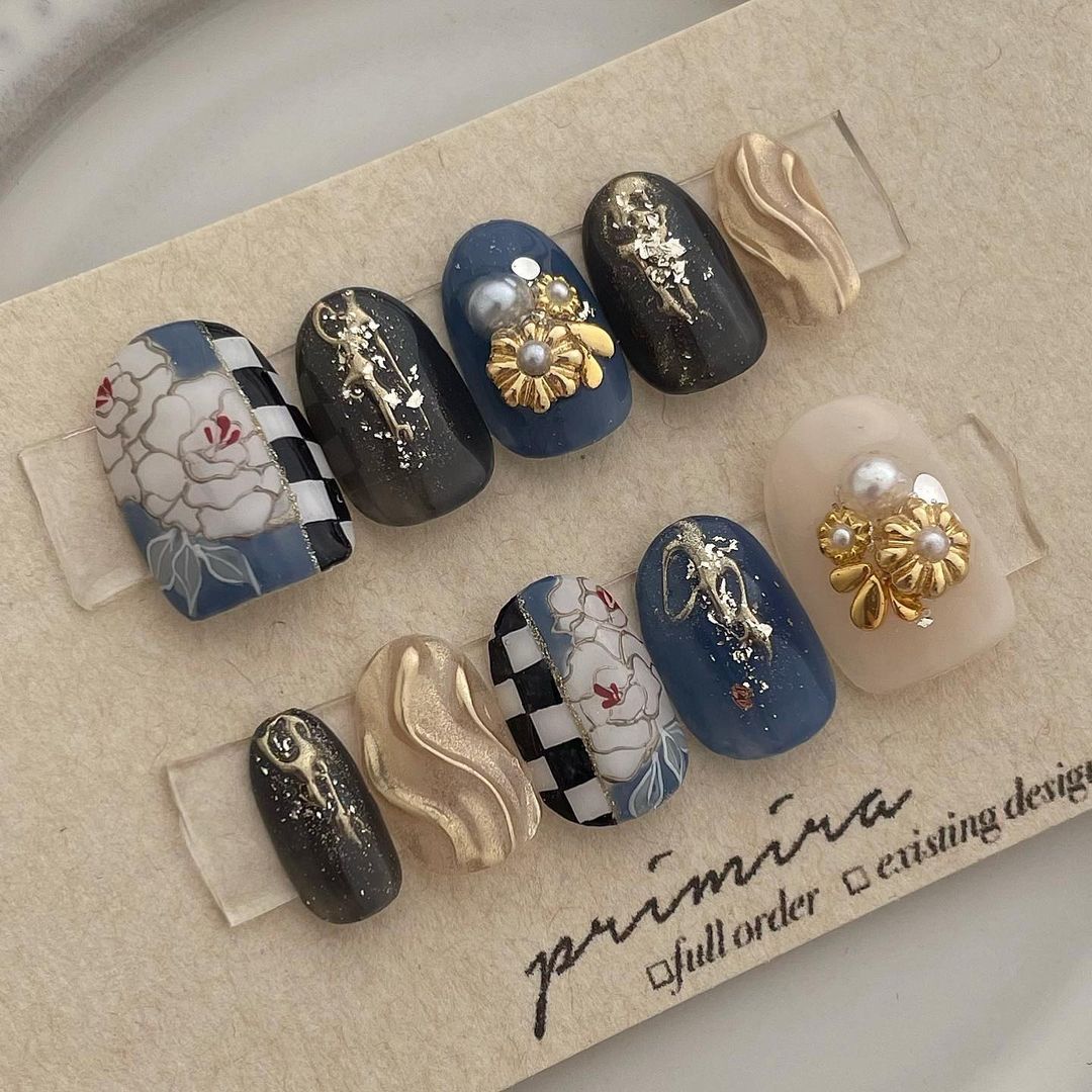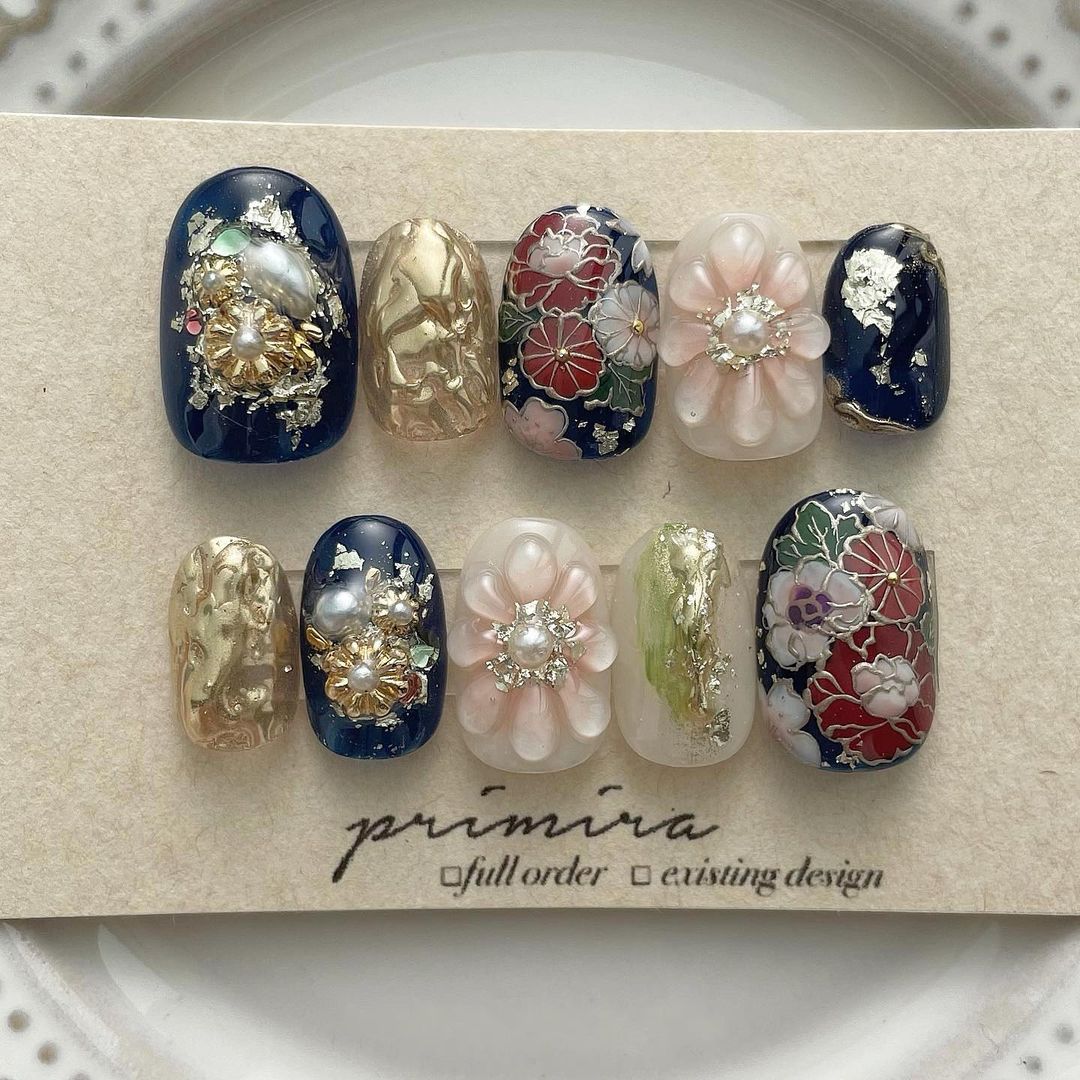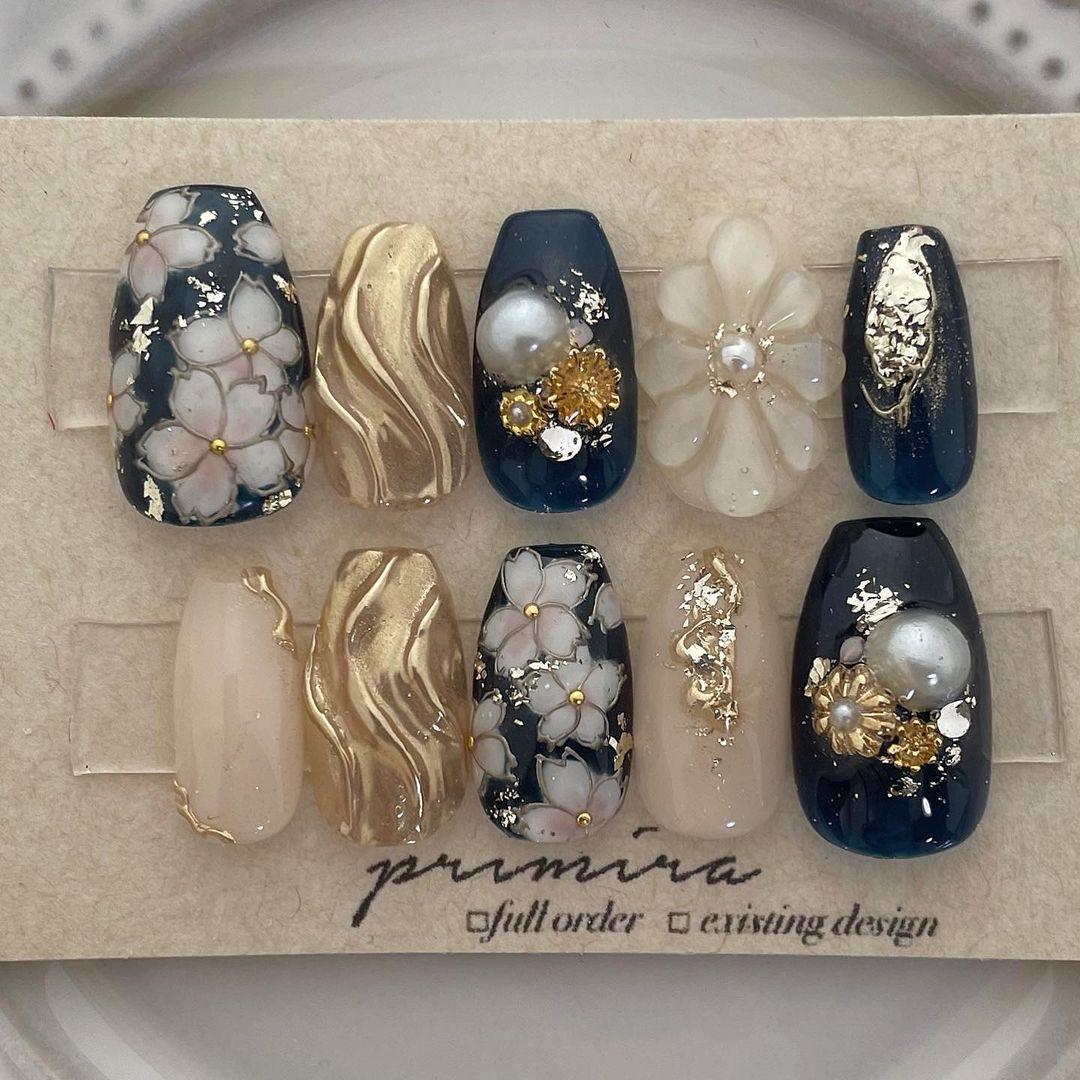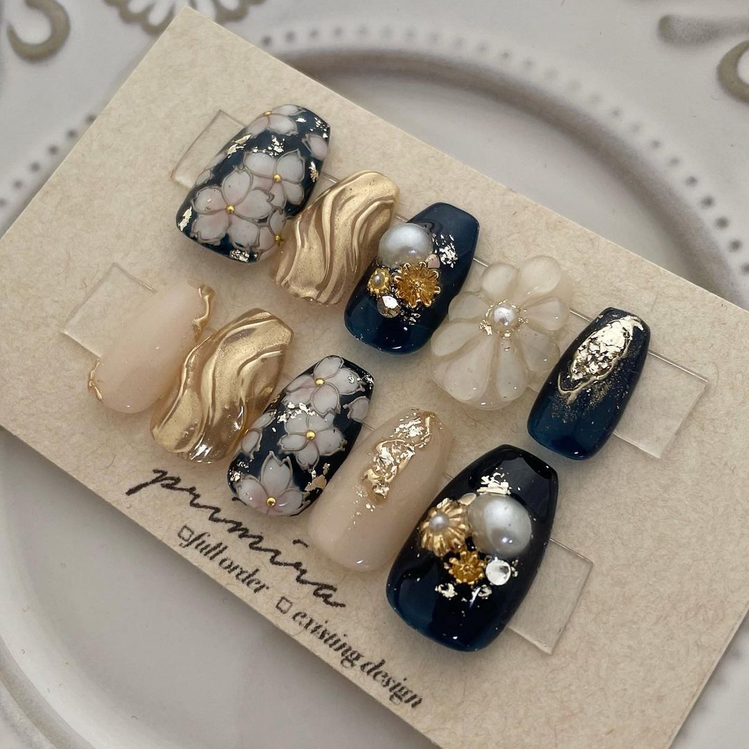 【保存版】明るめから深めまで!ブルーカラーの和柄ネイル69選!