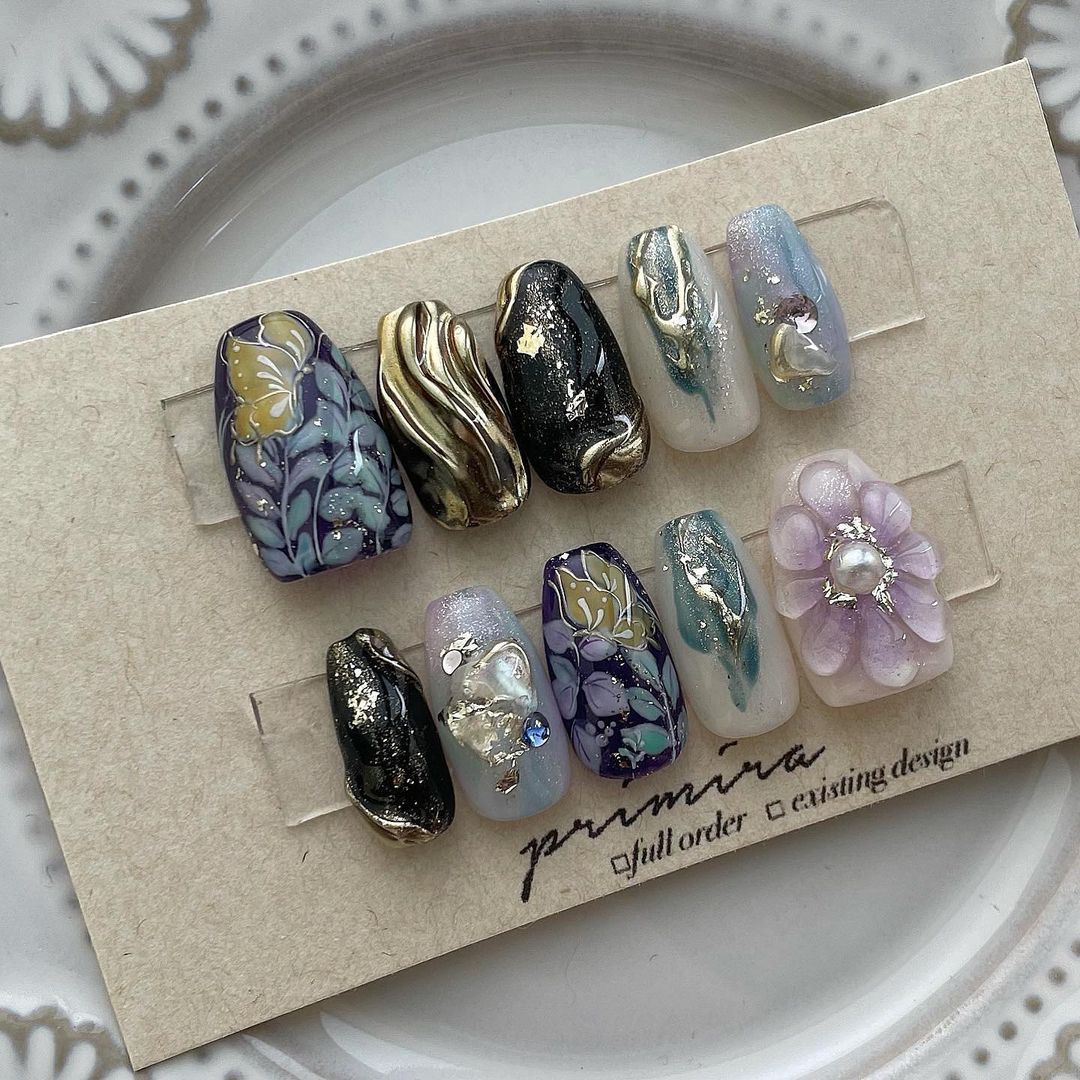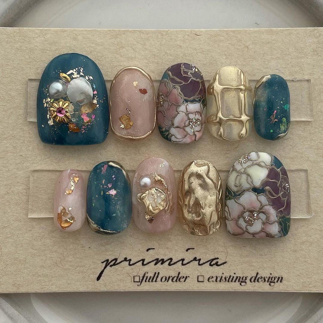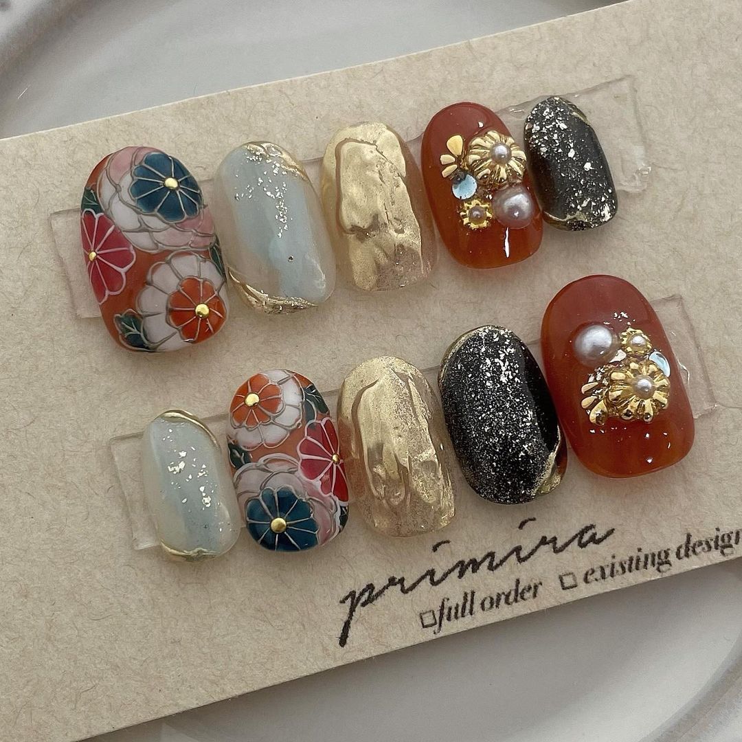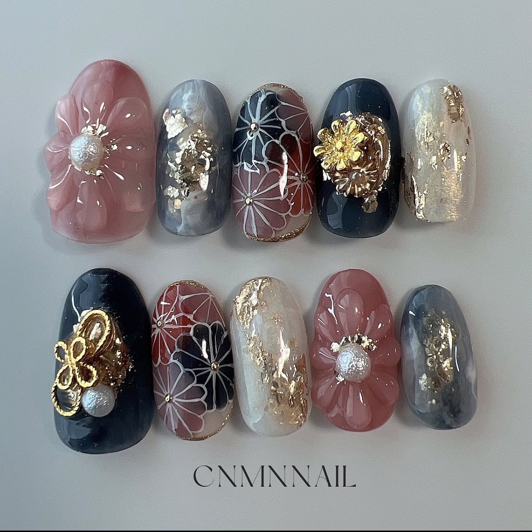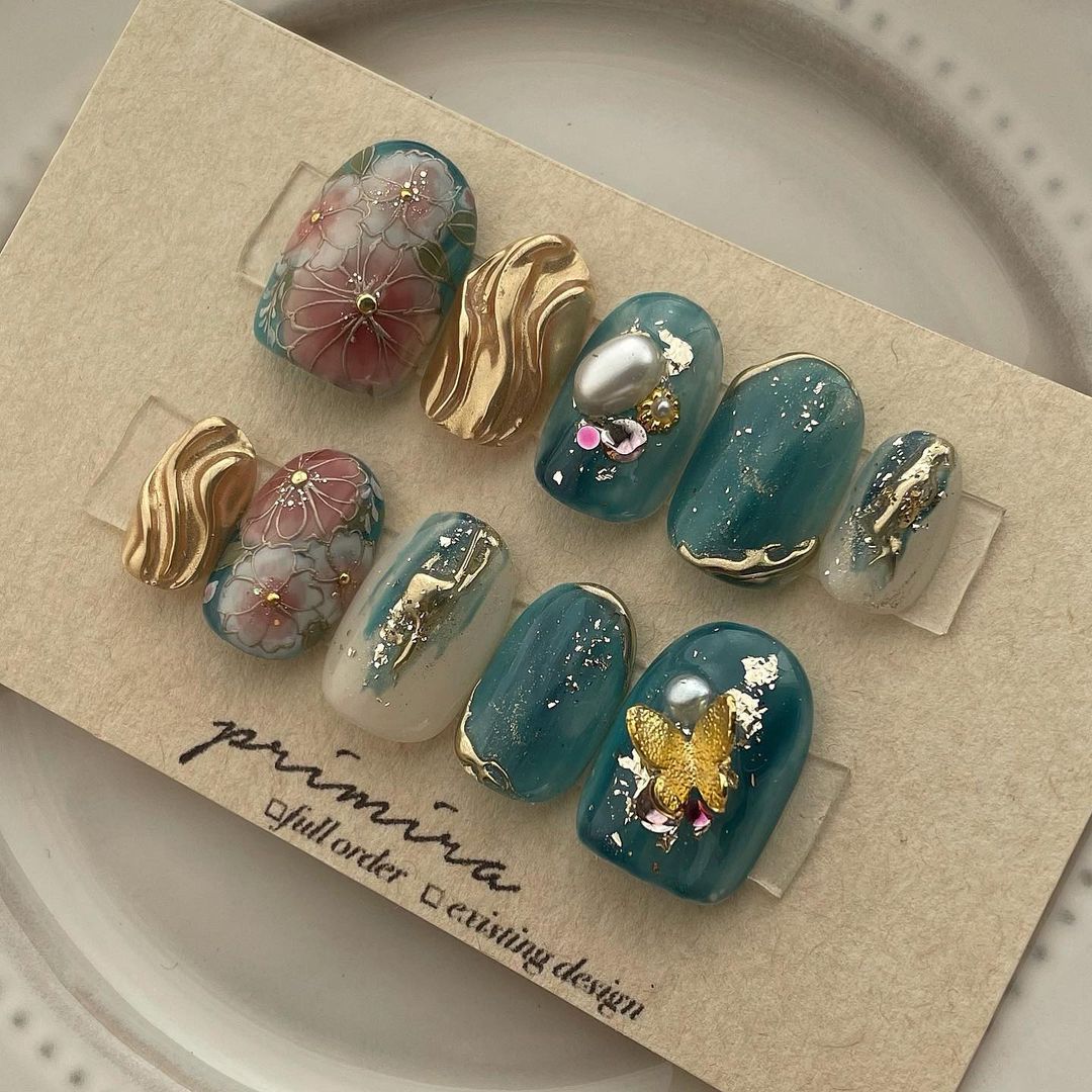 【保存版】明るめから深めまで!ブルーカラーの和柄ネイル69選!