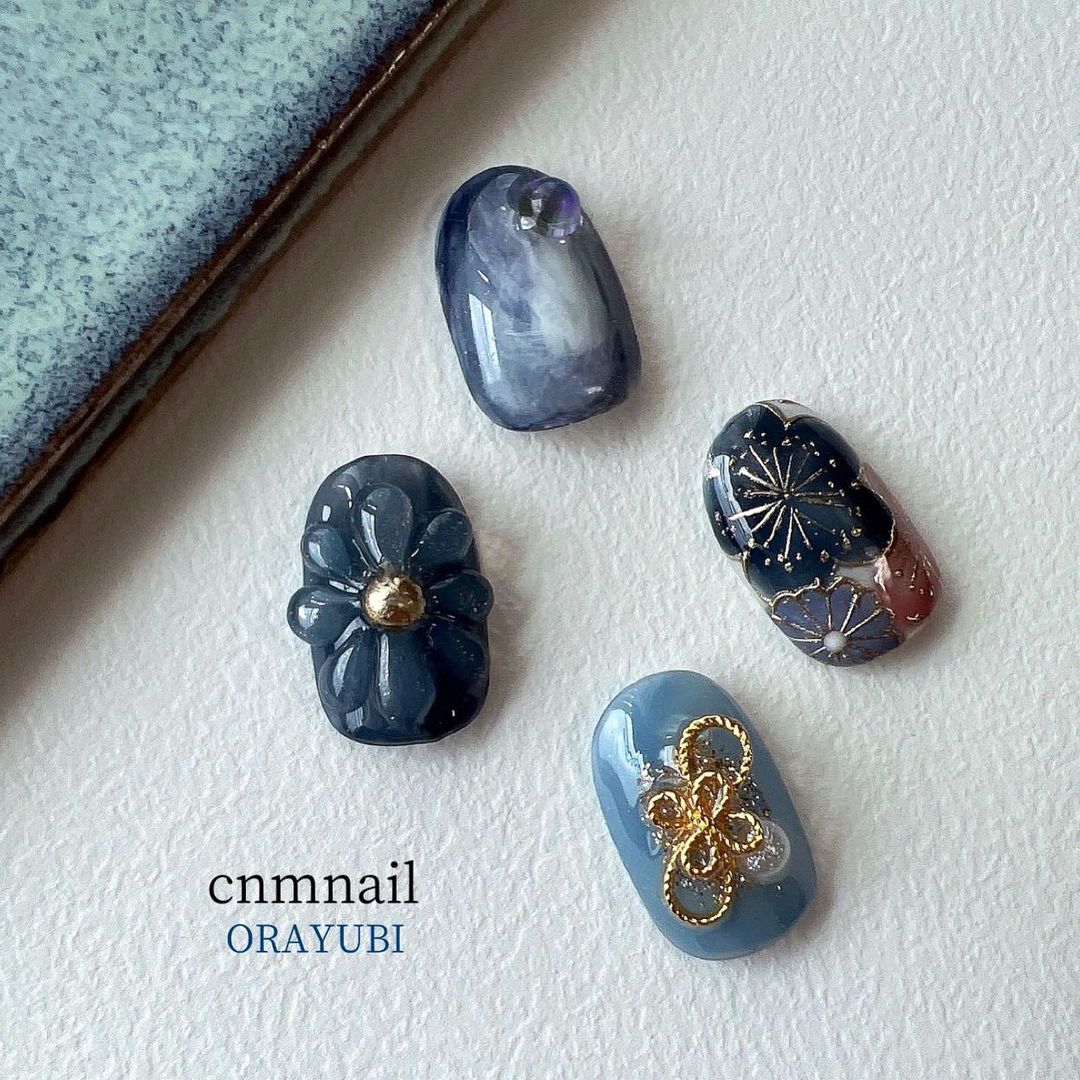 ブルーカラーの和柄ネイル69選!明るめから深めカラーまで!