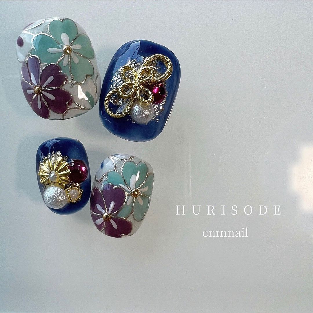 今回はブルーカラーの和柄ネイルデザインをご紹介します!