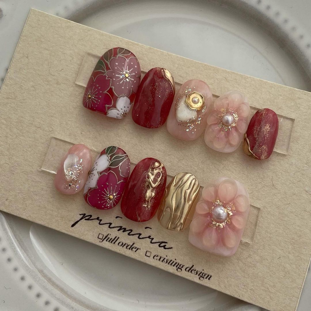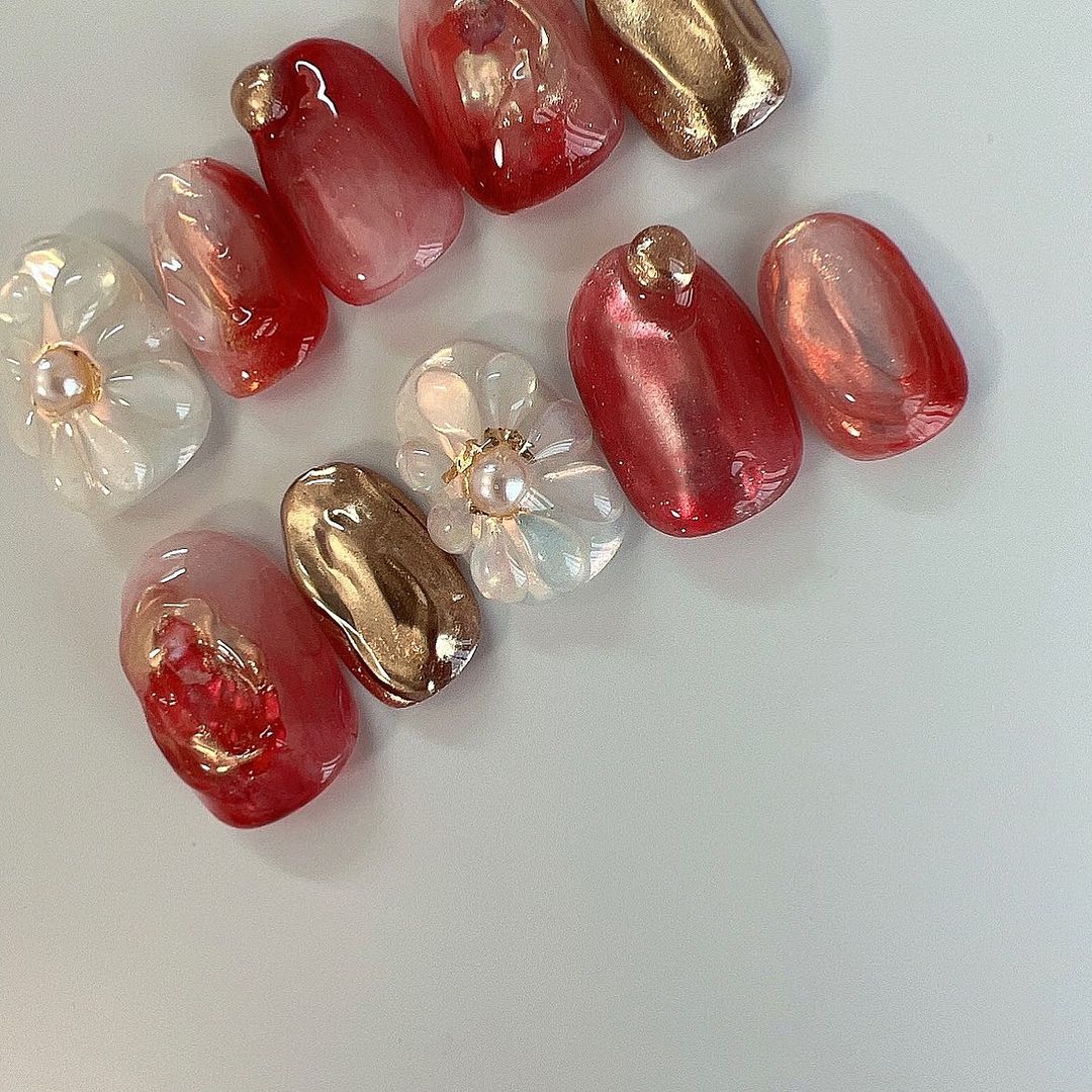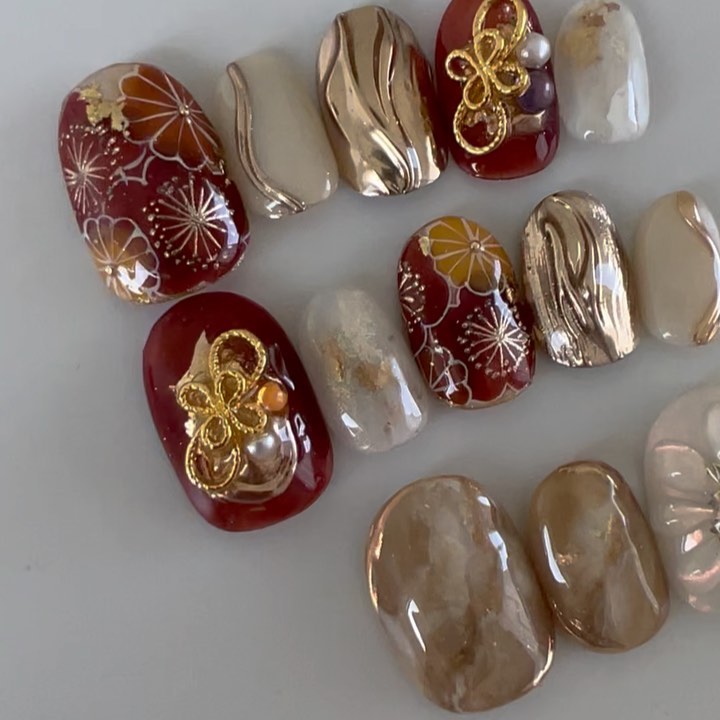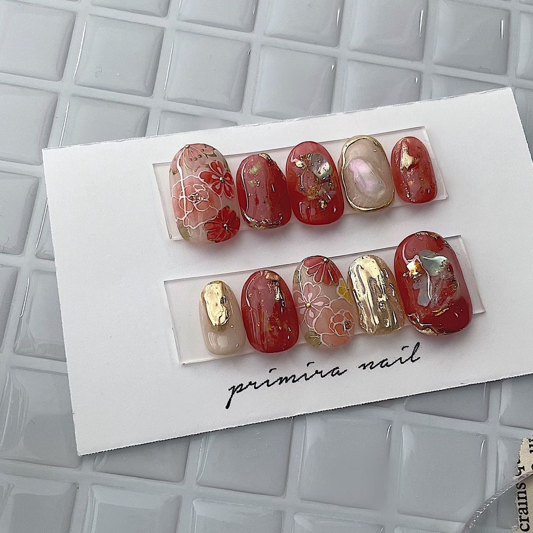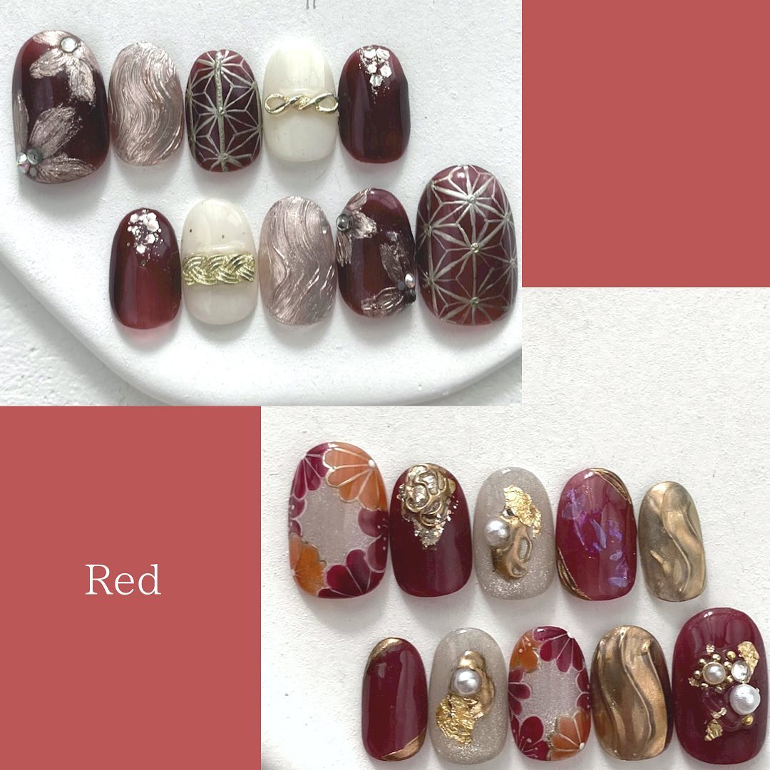 今回はレッド系カラーの和柄ネイルデザインをご紹介します!