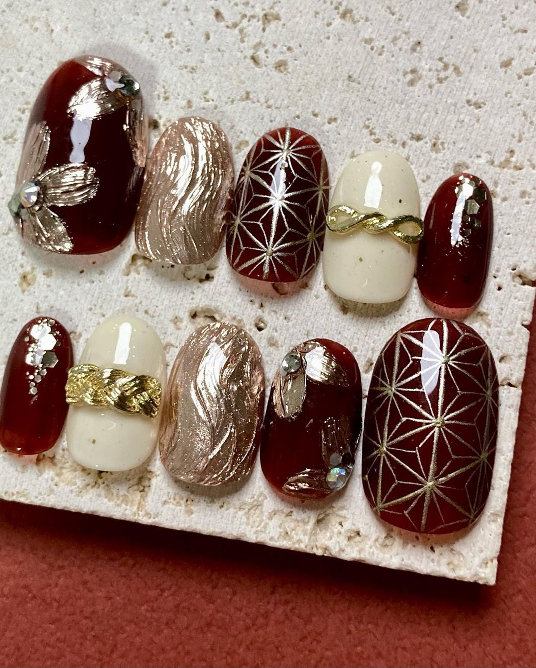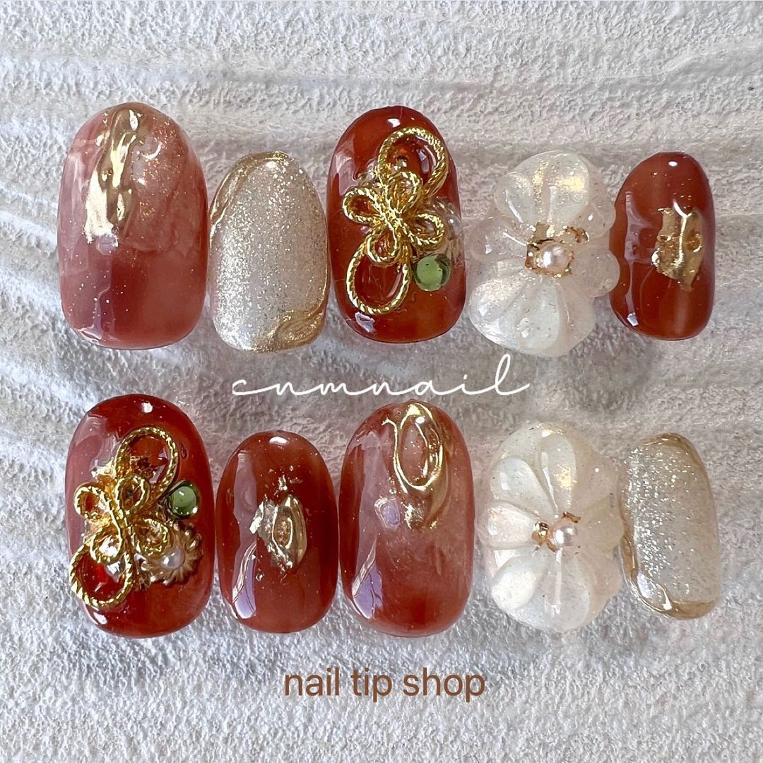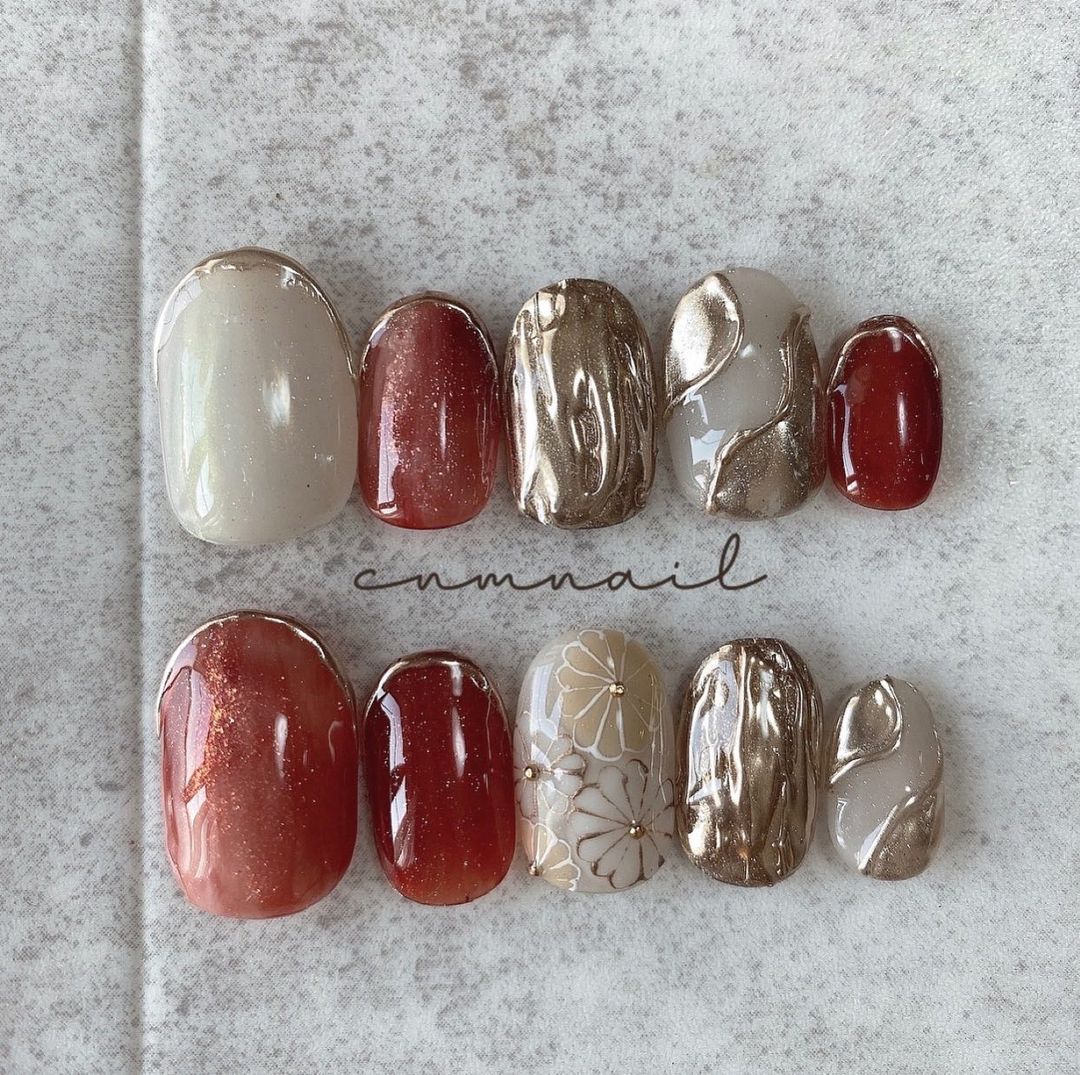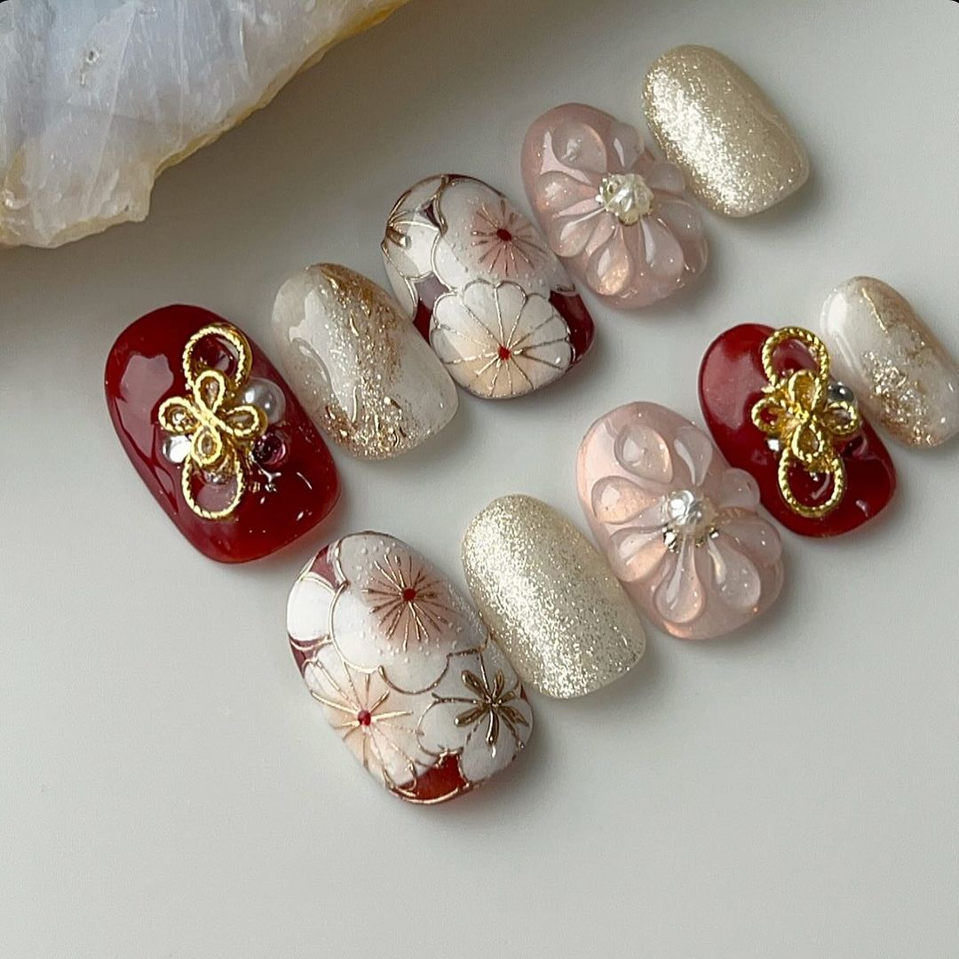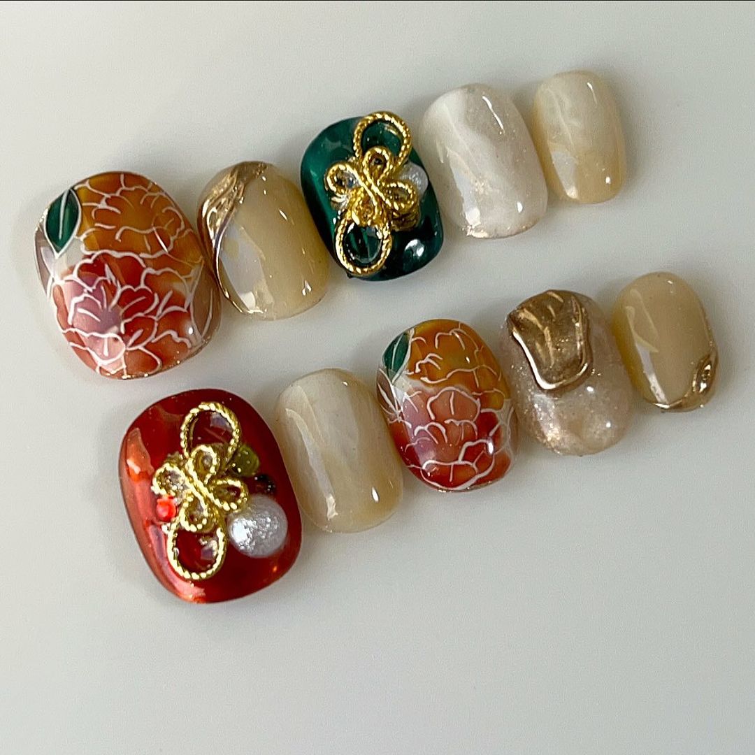 今回はレッド系カラーの和柄ネイルデザインをご紹介します!