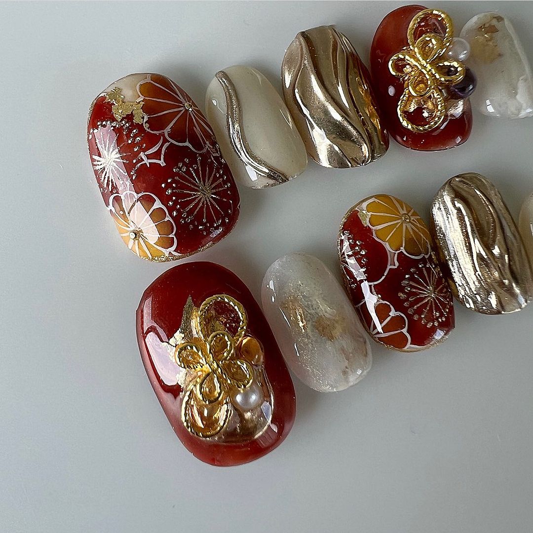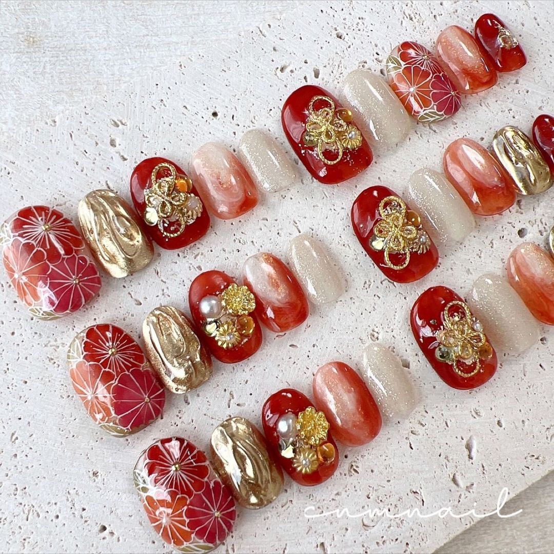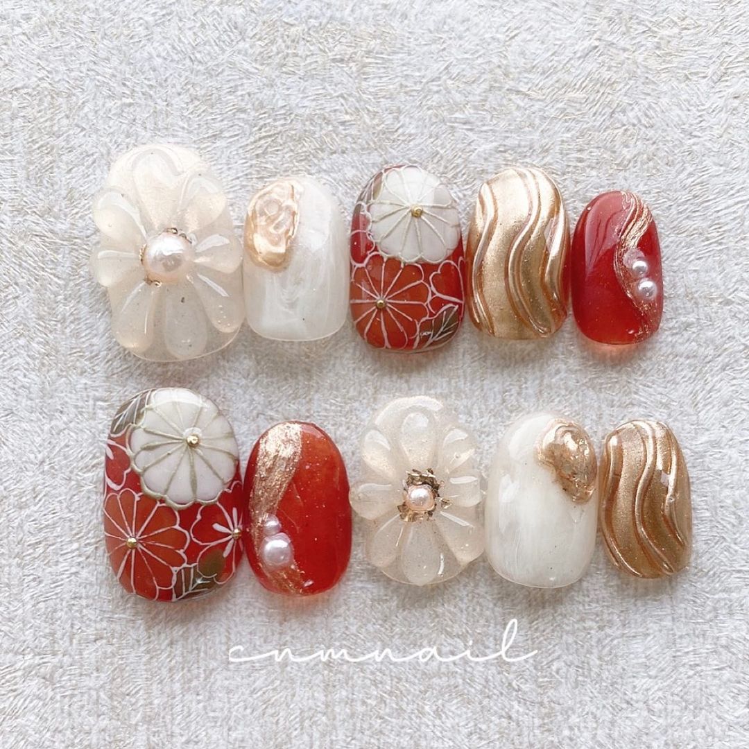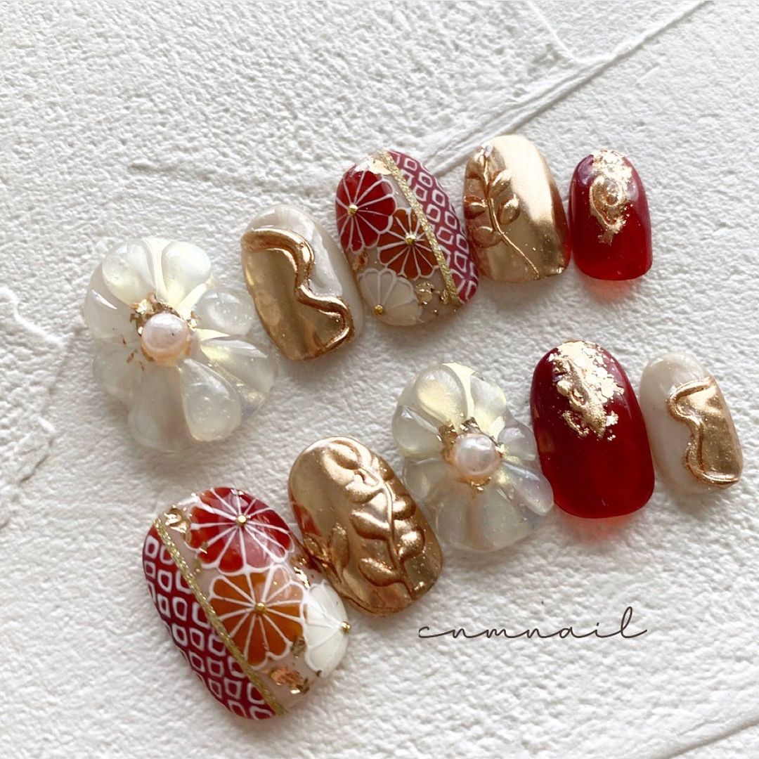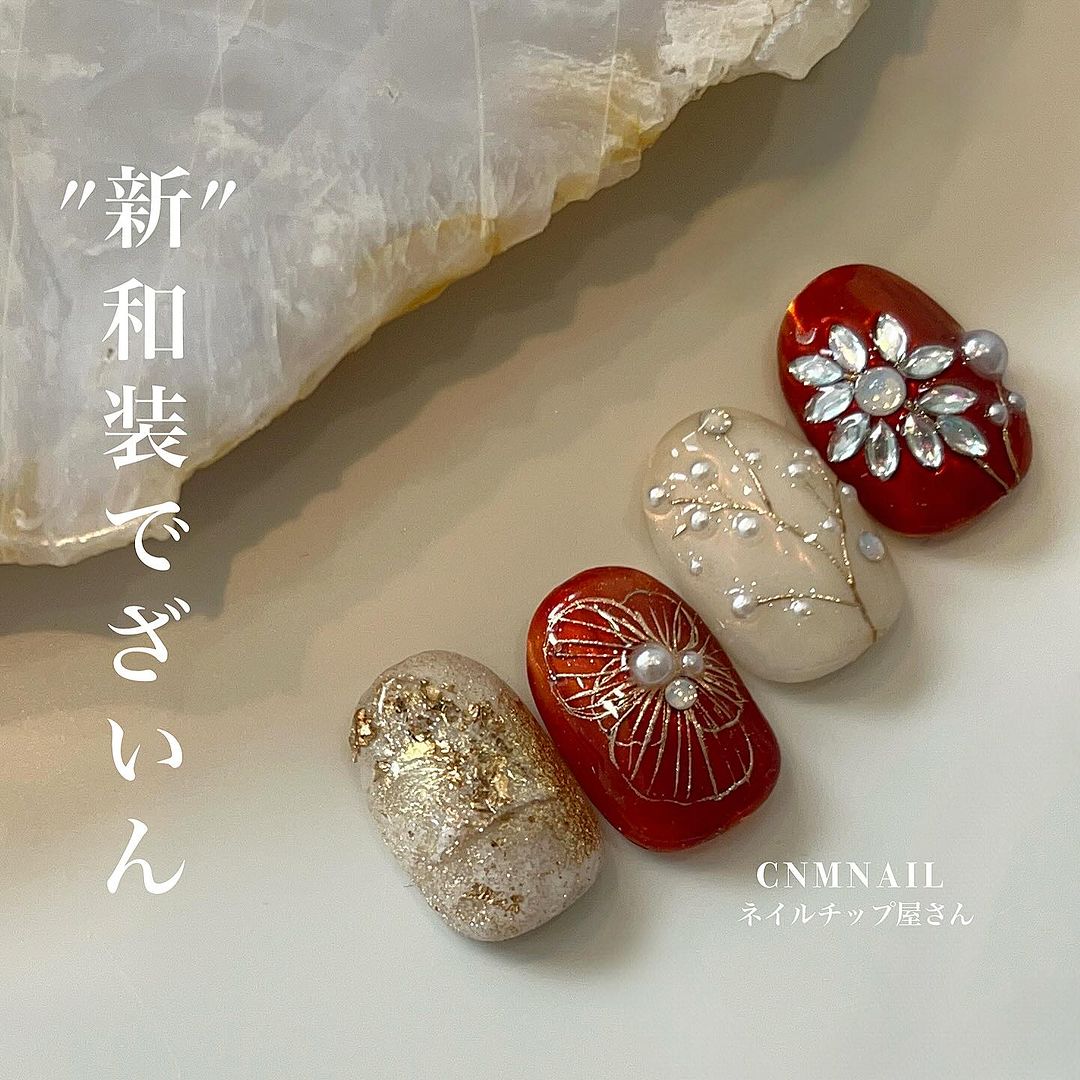 レッド系カラーの和柄ネイル101選!振袖や袴にも!