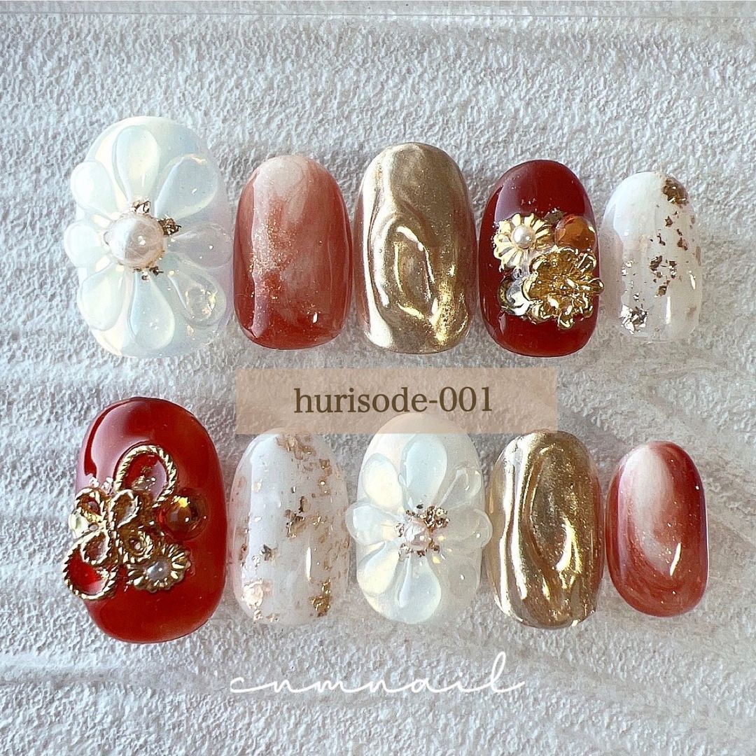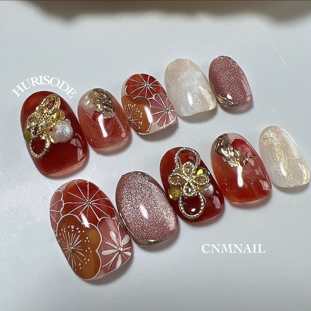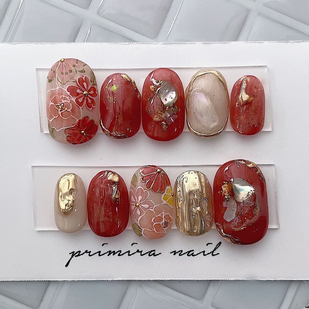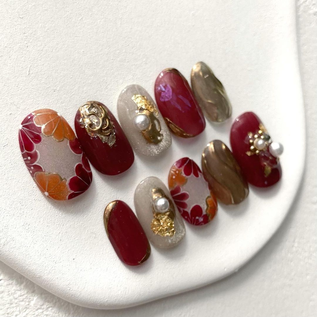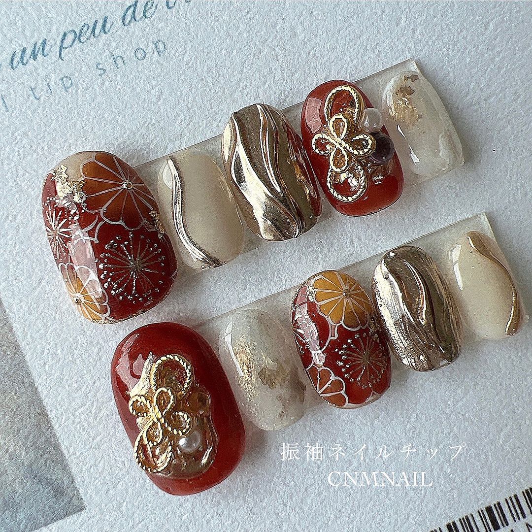 レッド系カラーの和柄ネイル101選!振袖や袴にも!