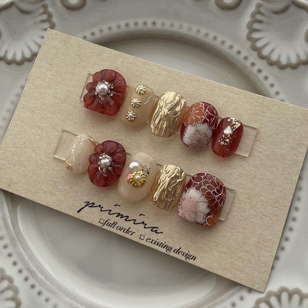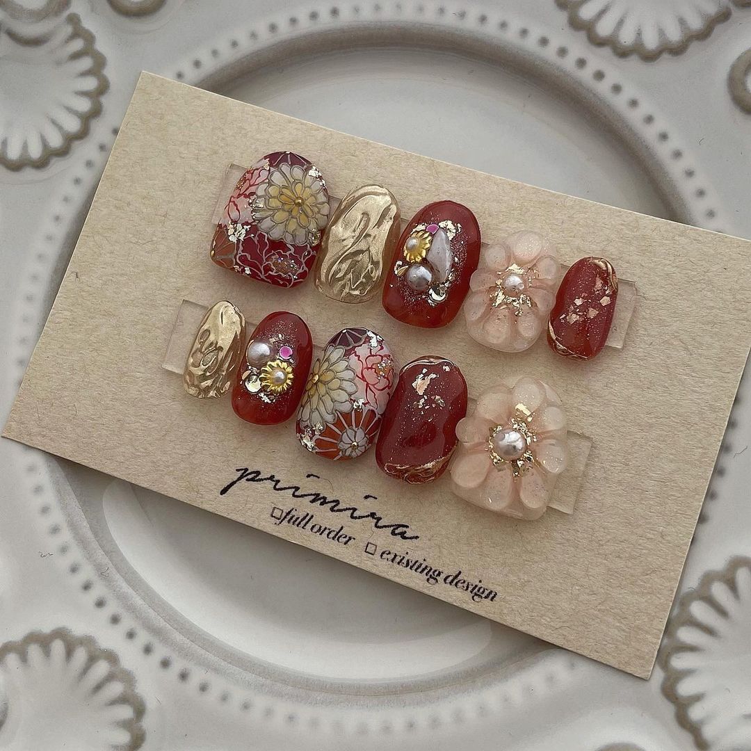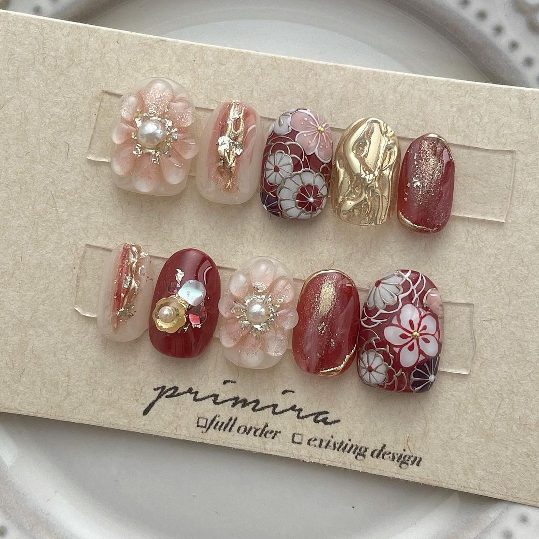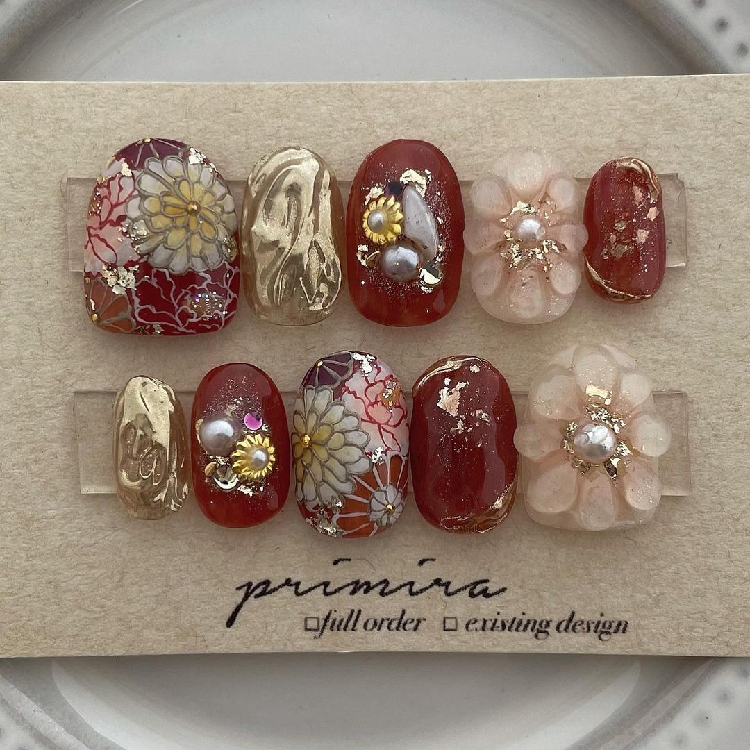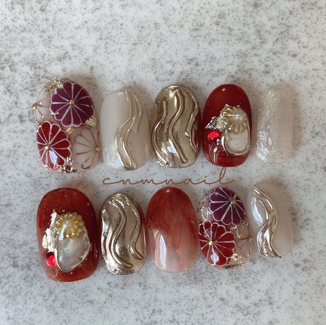 レッド系カラーの和柄ネイル101選!振袖や袴にも!