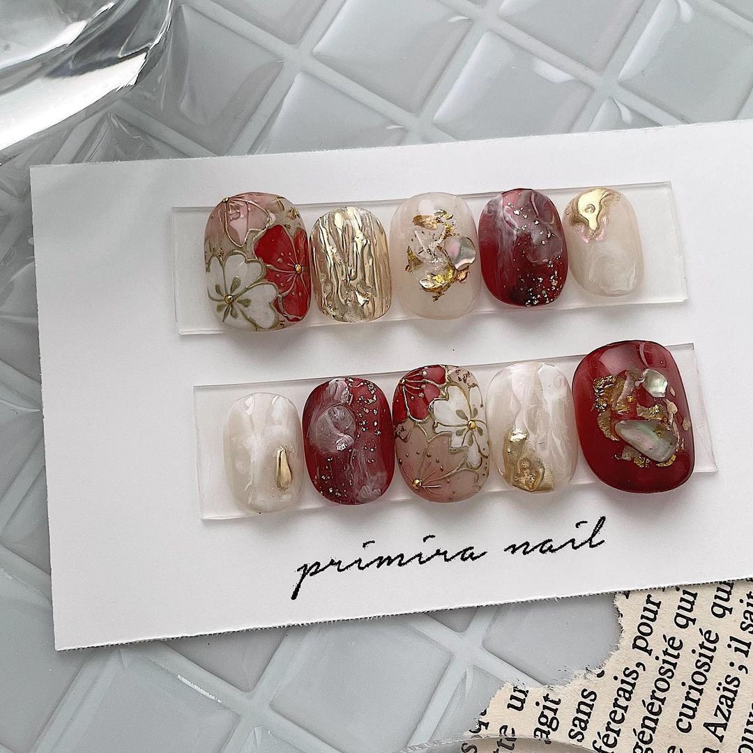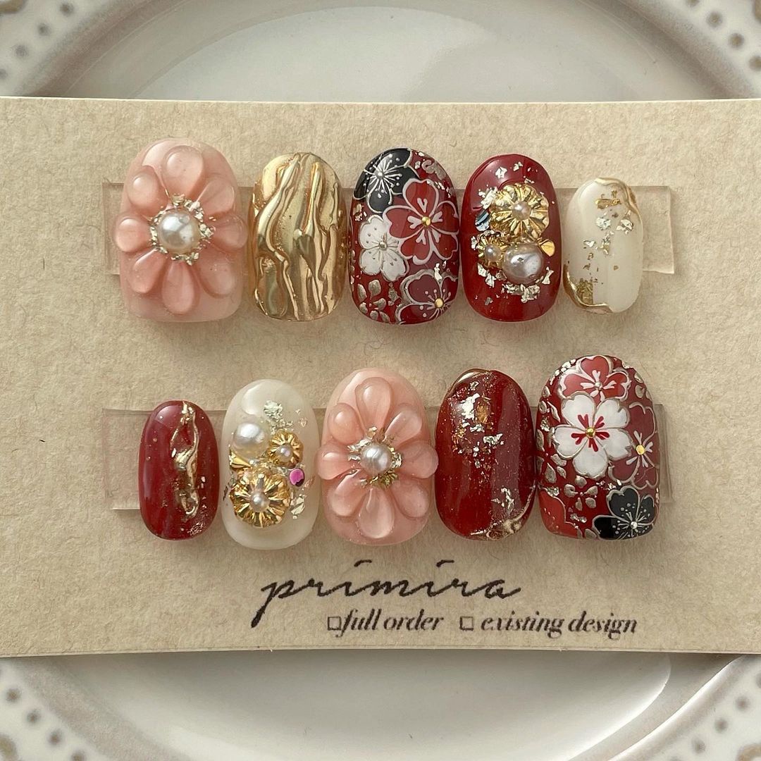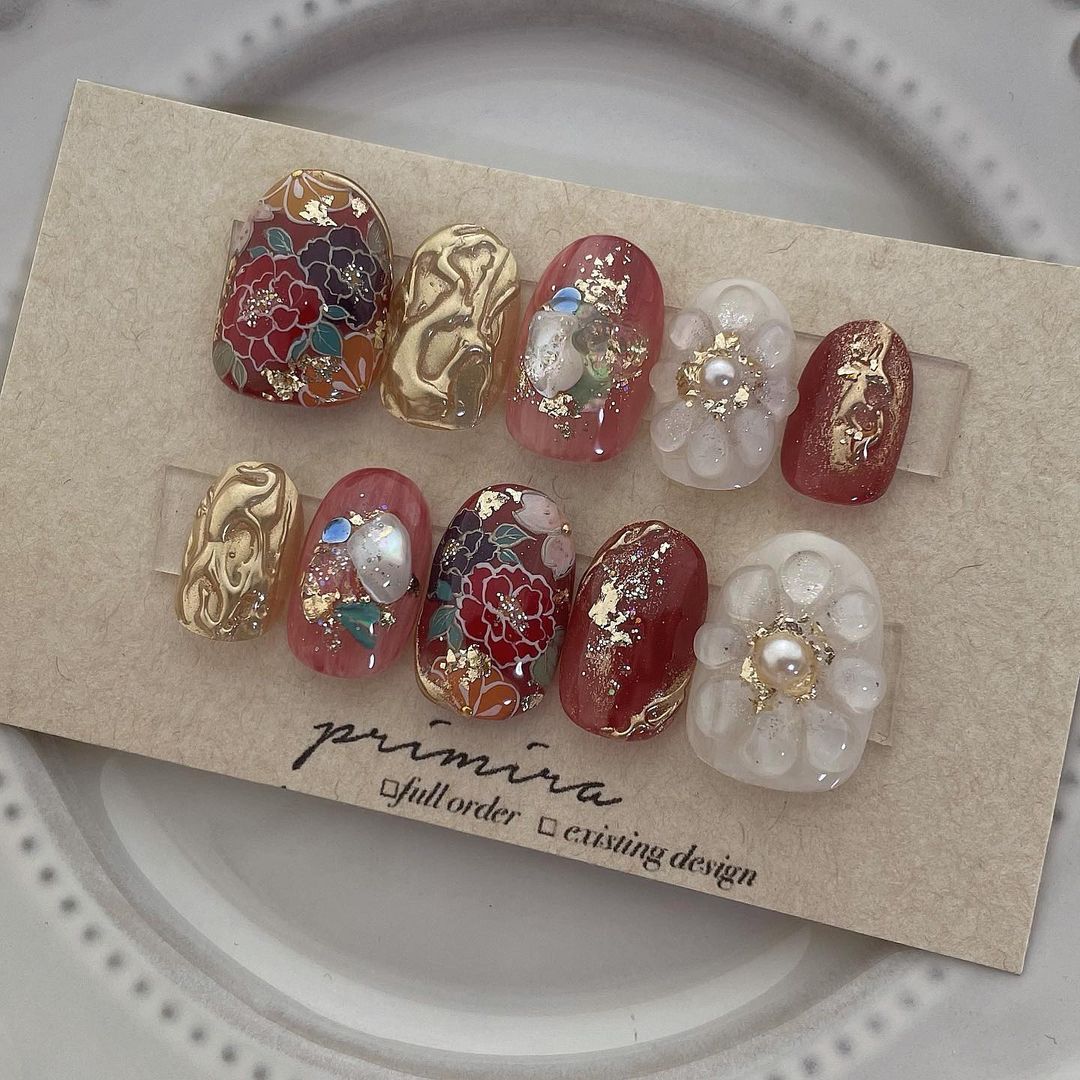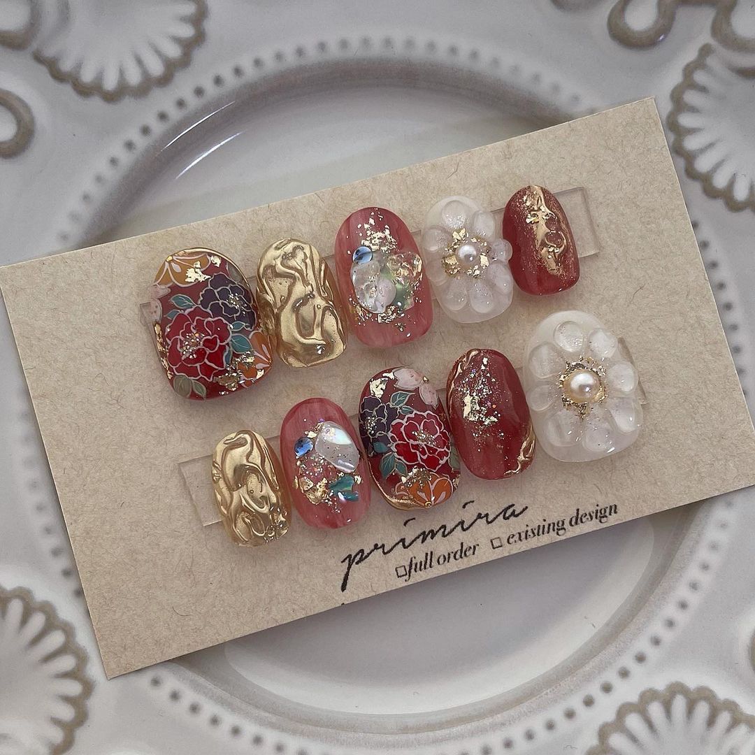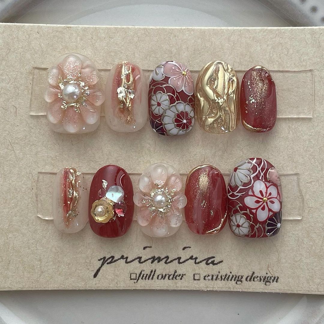 レッド系カラーの和柄ネイル101選!振袖や袴にも!