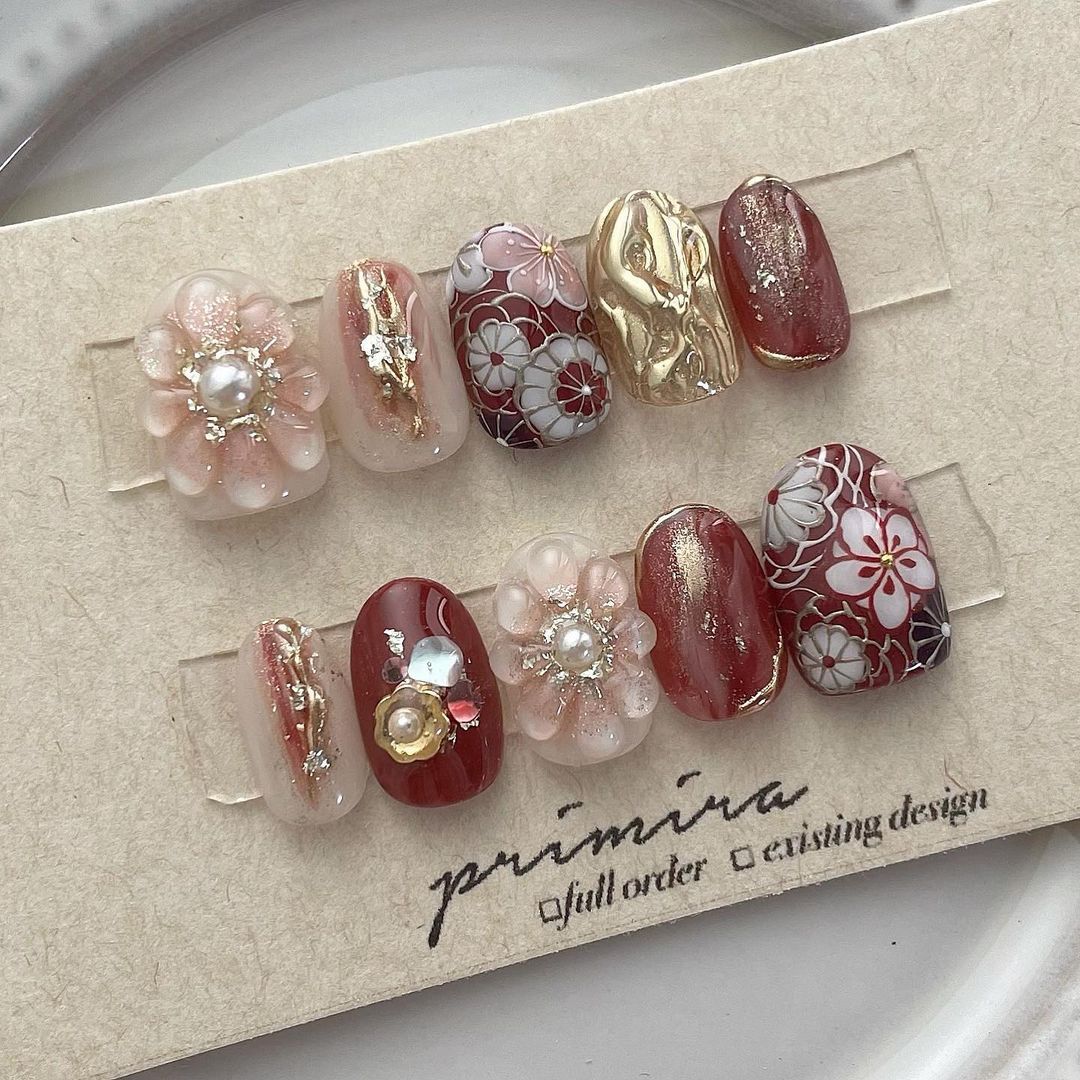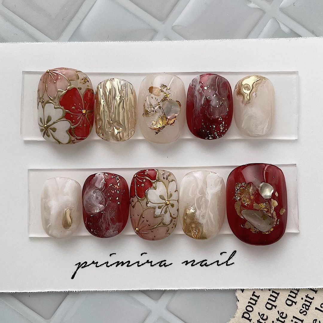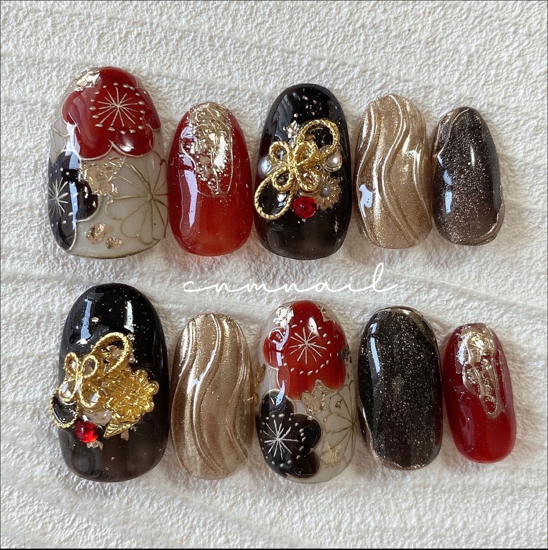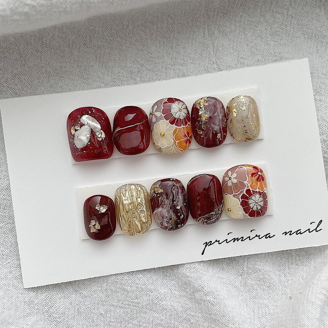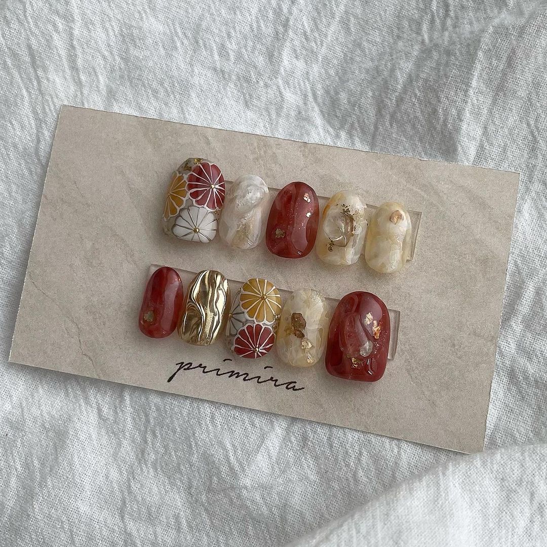 レッド系カラーの和柄ネイル101選!振袖や袴にも!