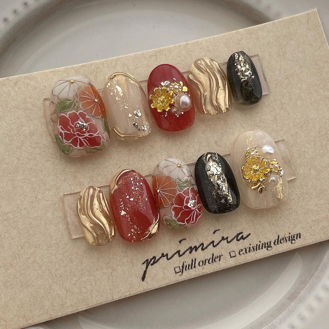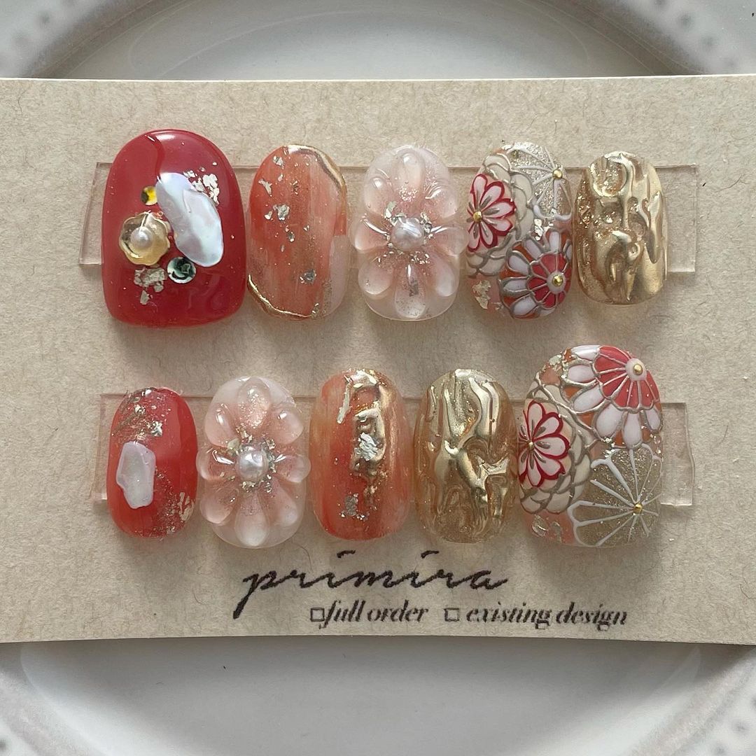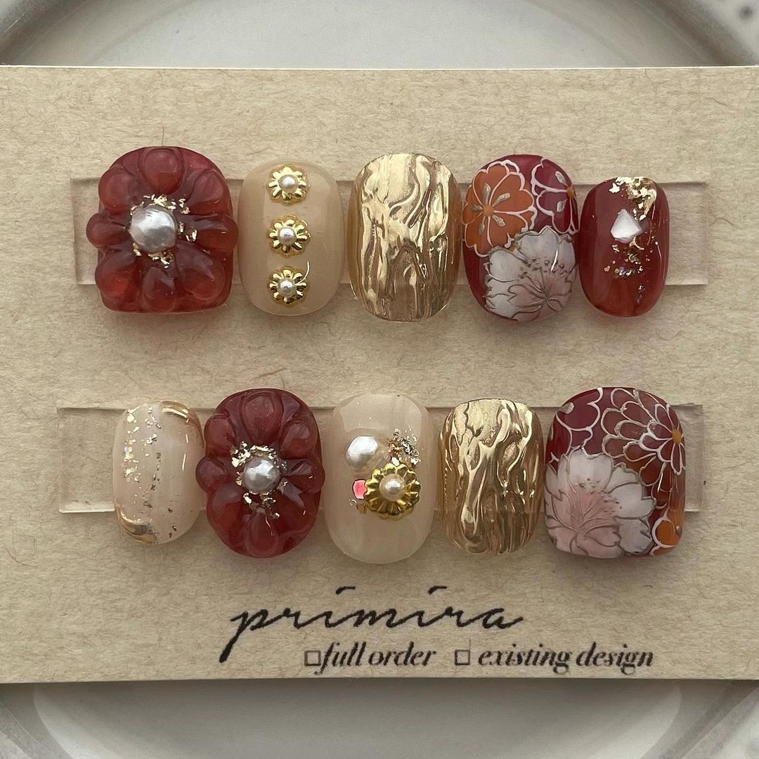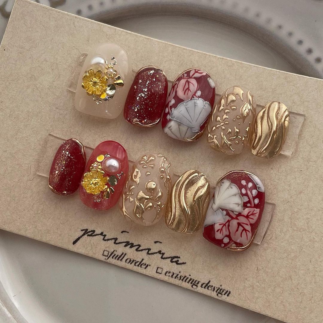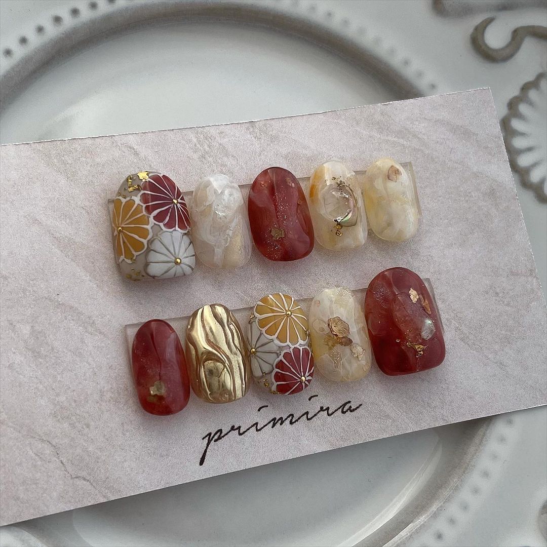 レッド系カラーの和柄ネイル101選!振袖や袴にも!
