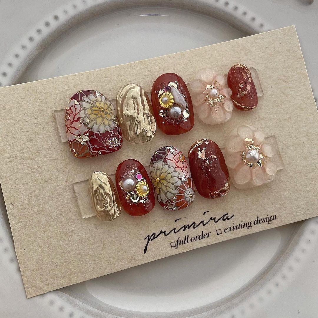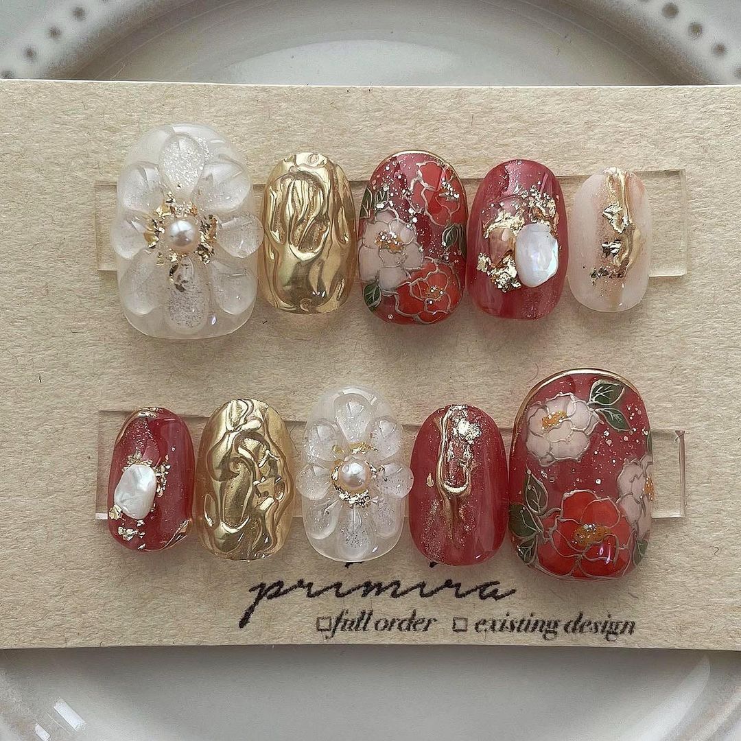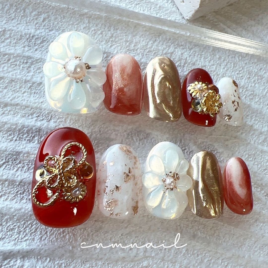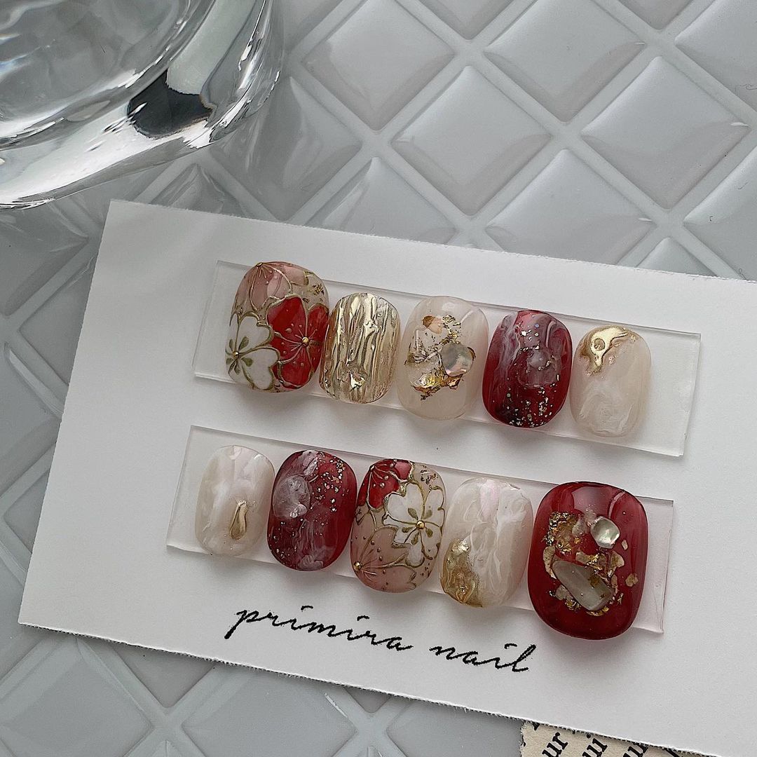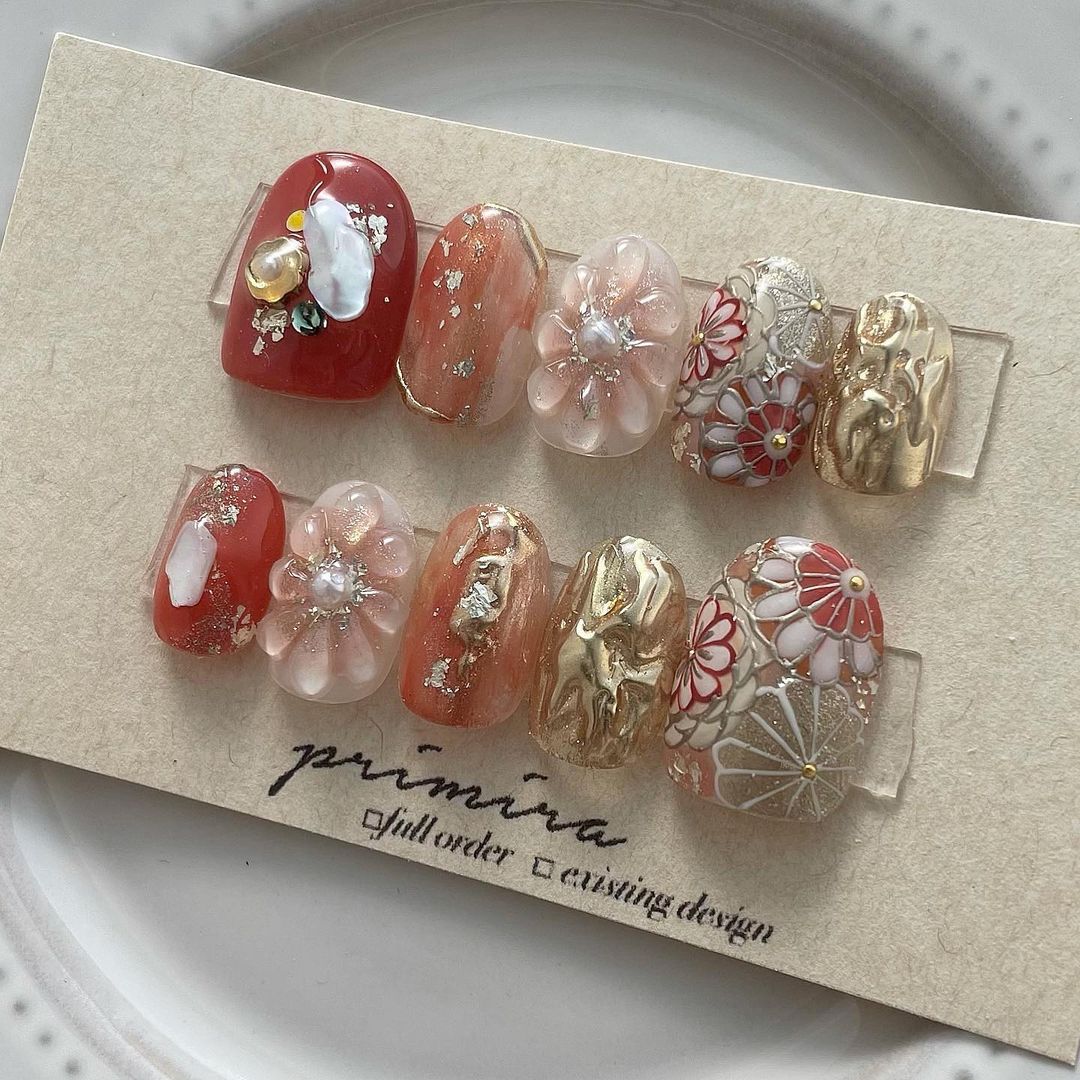 レッド系カラーの和柄ネイル101選!振袖や袴にも!