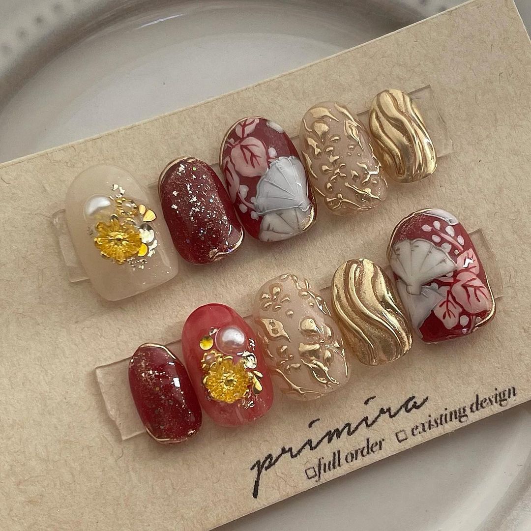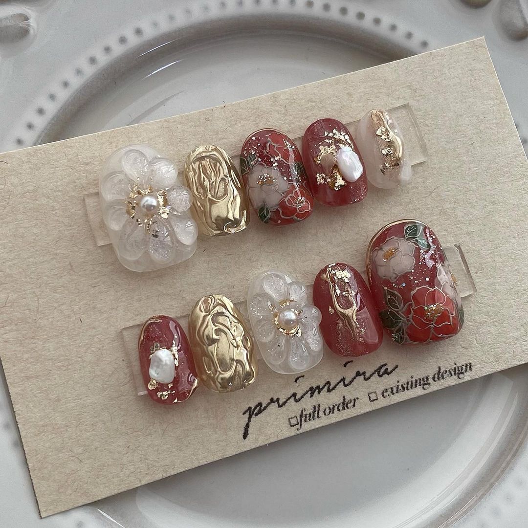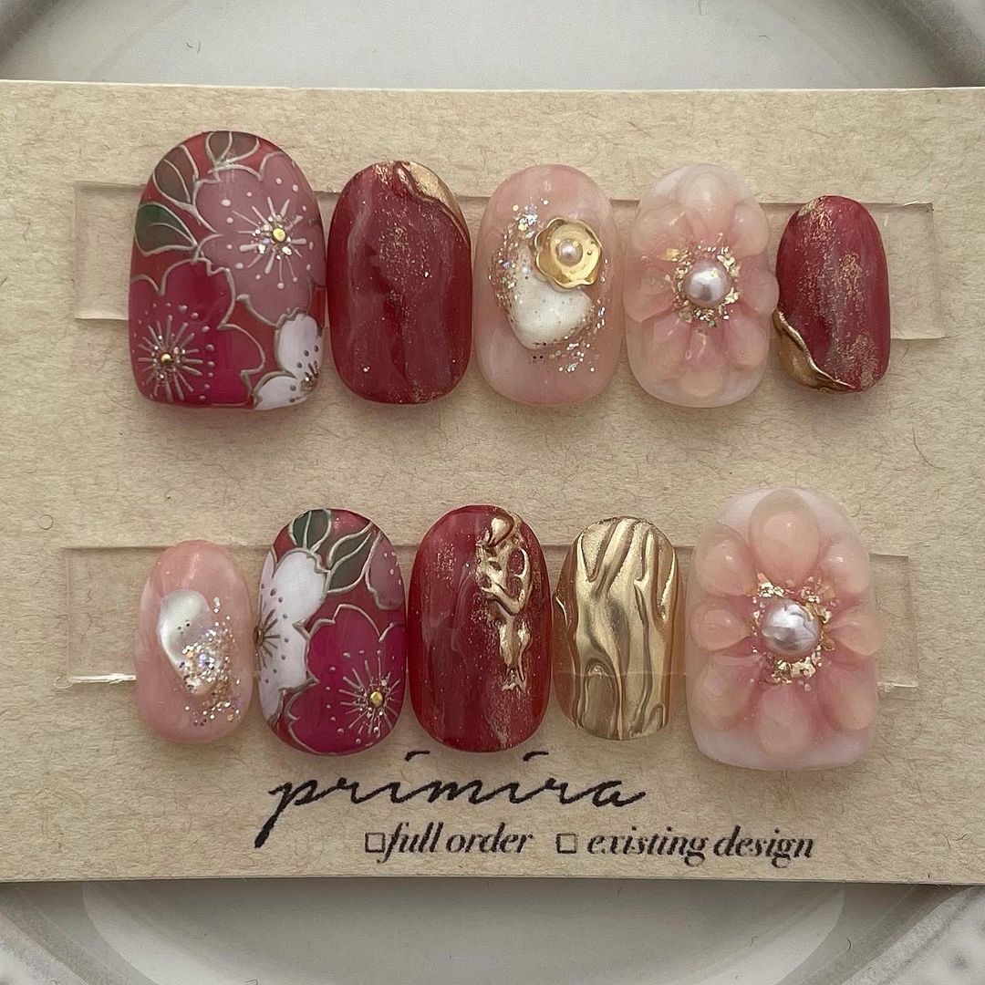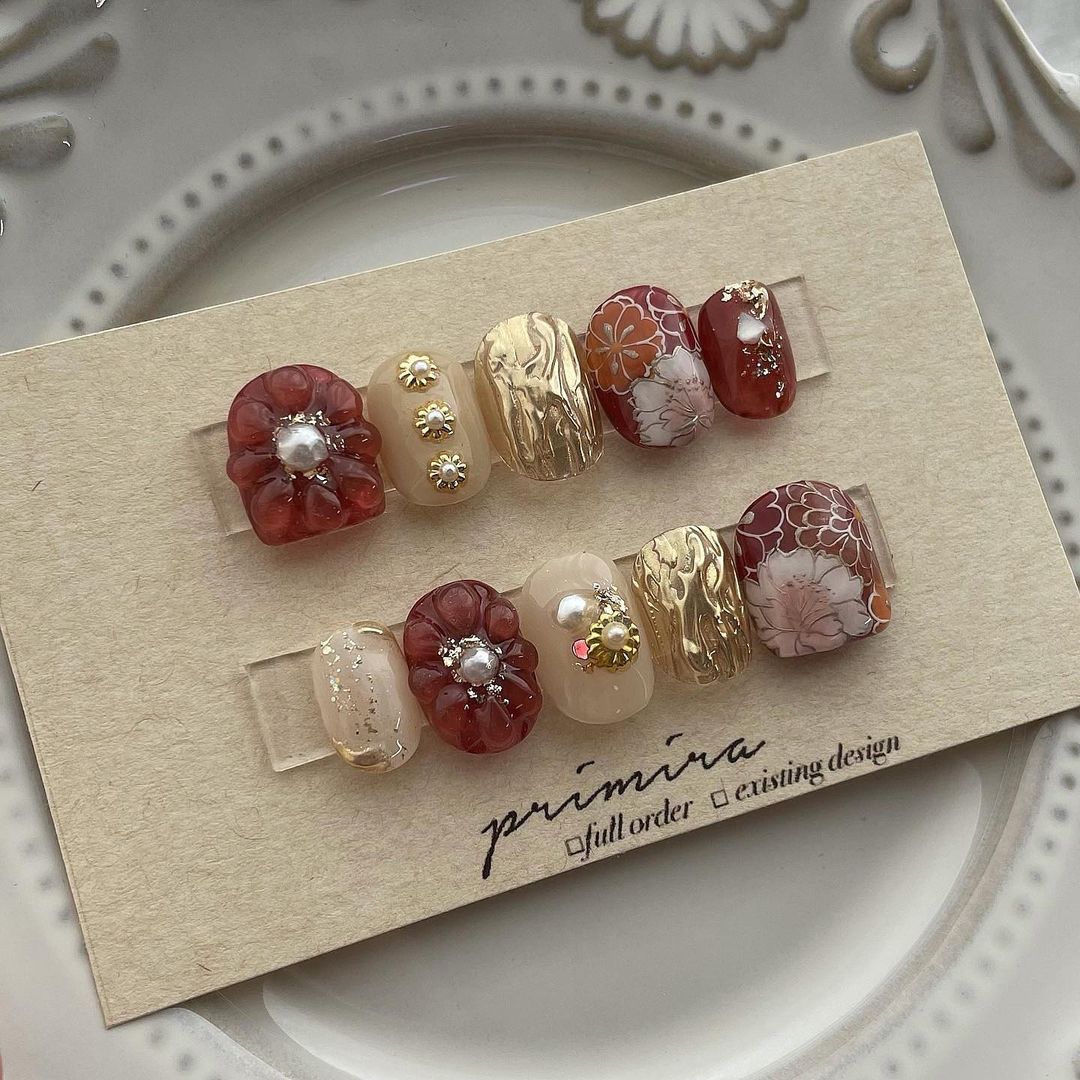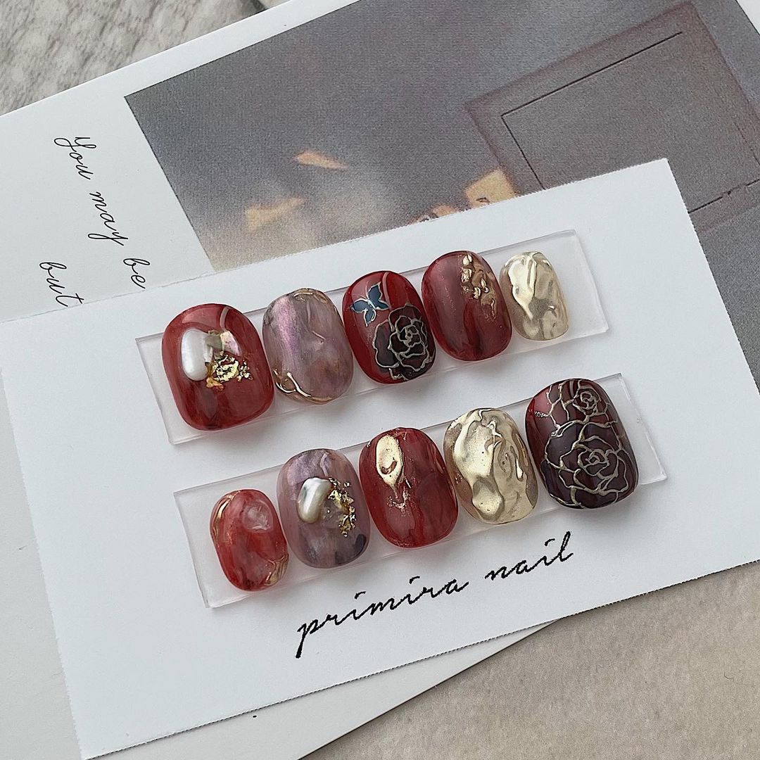 レッド系カラーの和柄ネイル101選!振袖や袴にも!