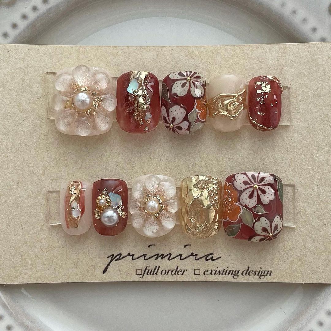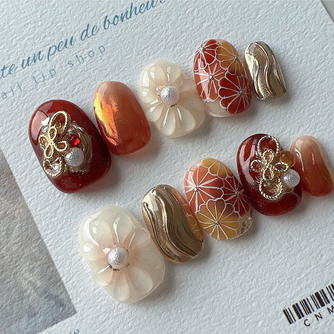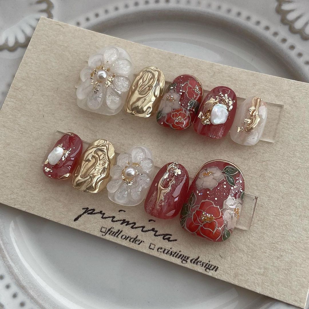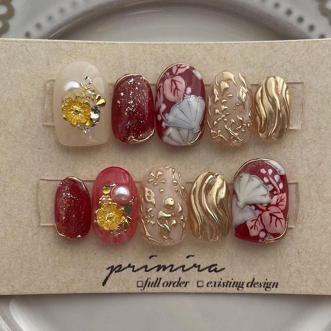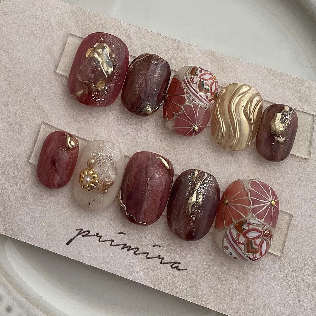レッド系カラーの和柄ネイル101選!振袖や袴にも!