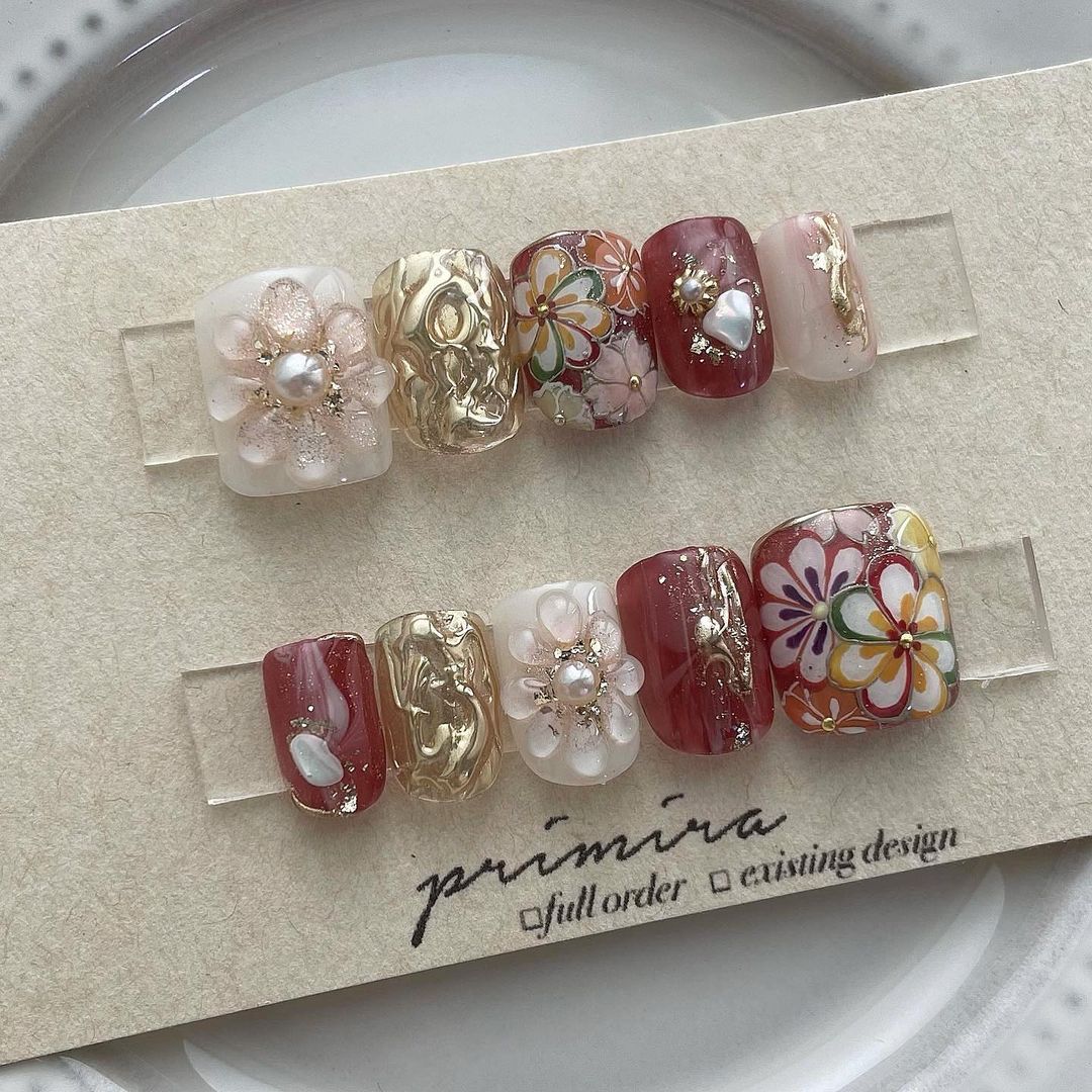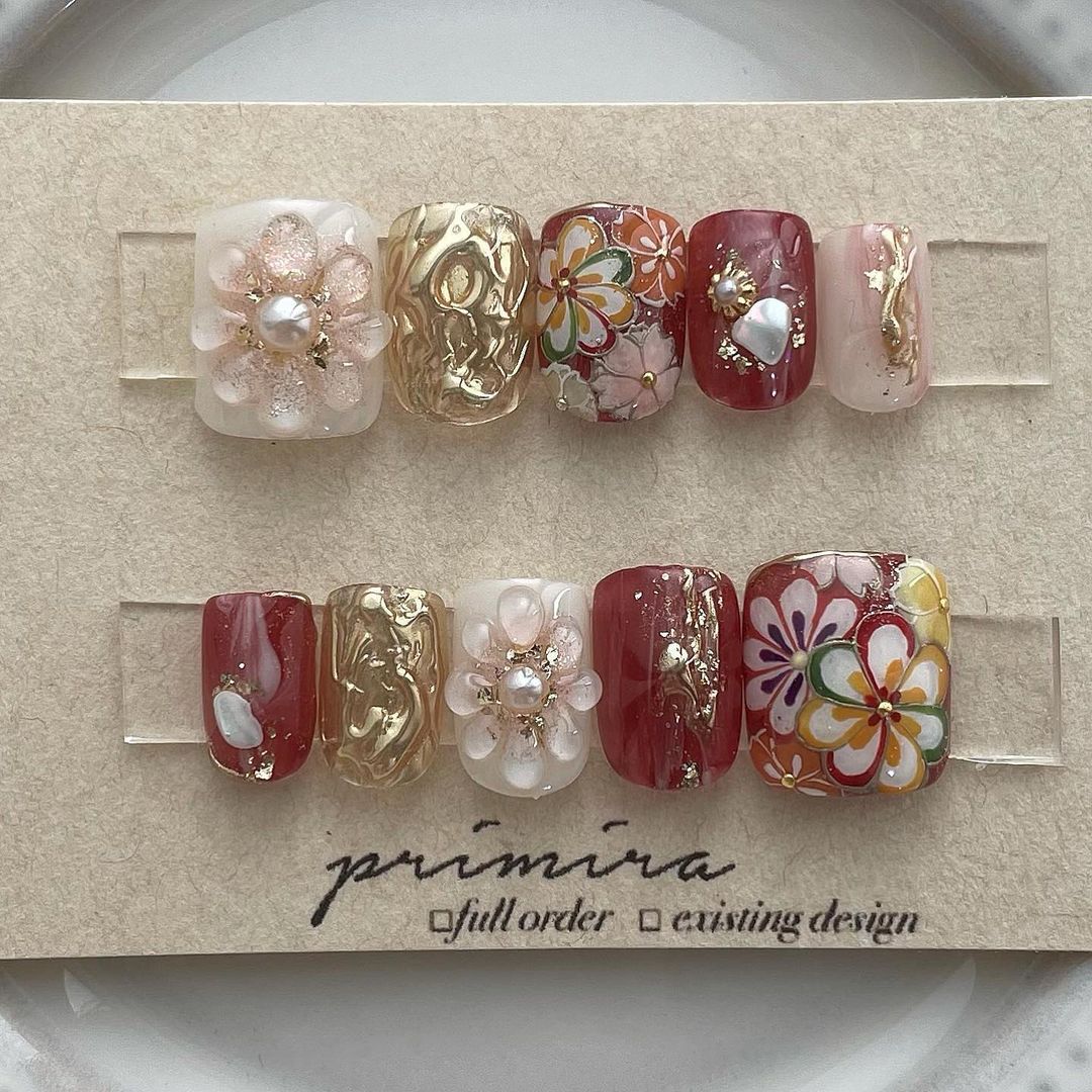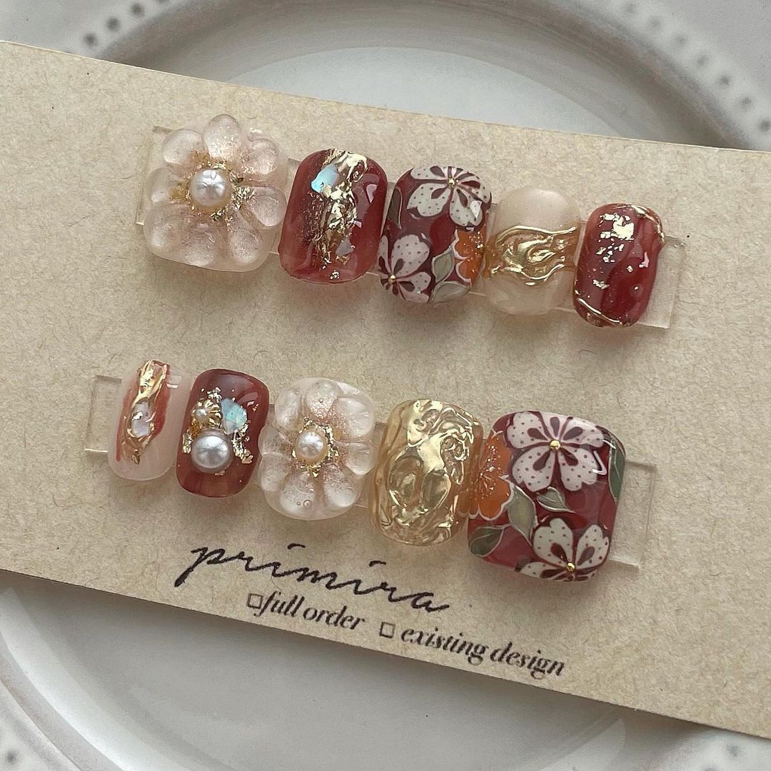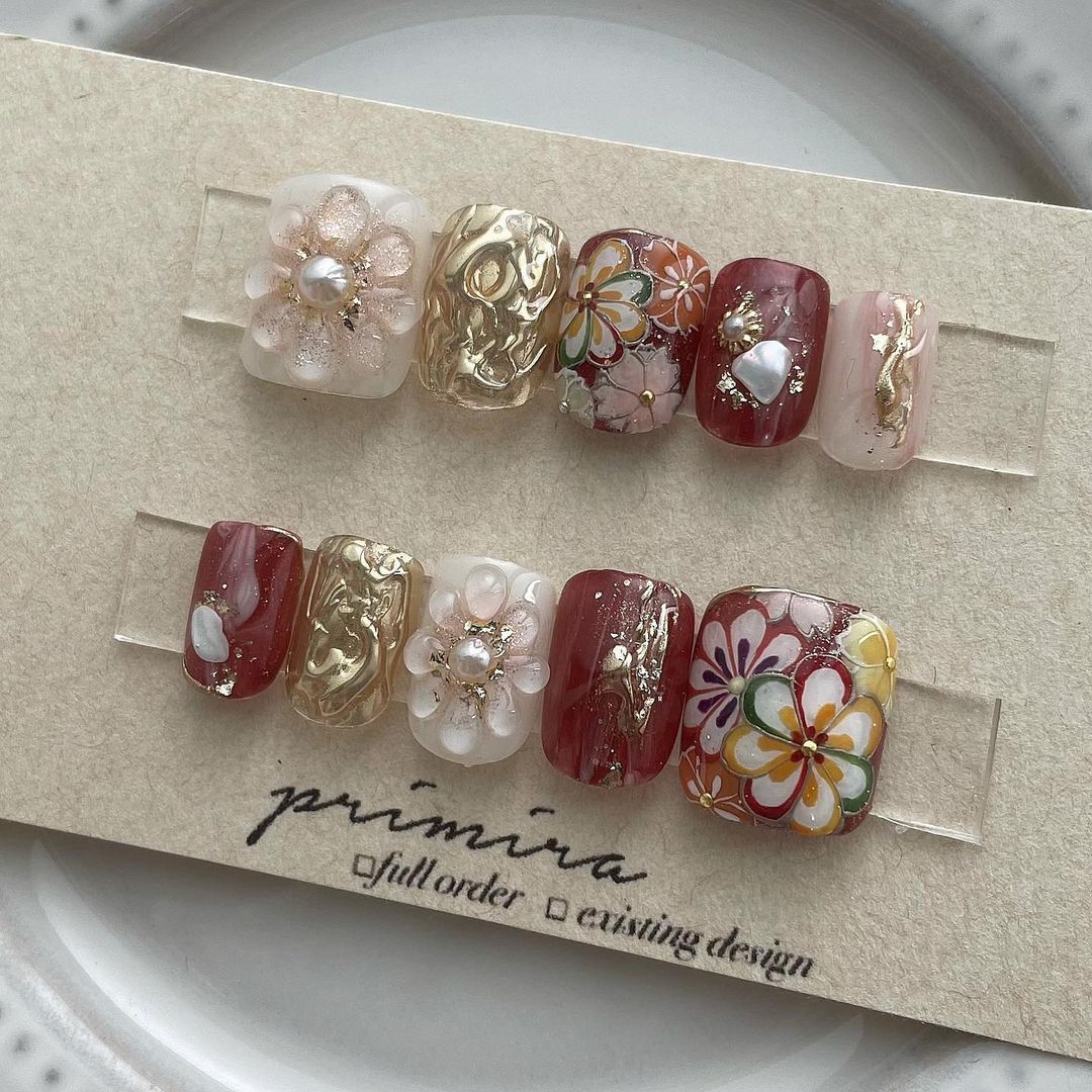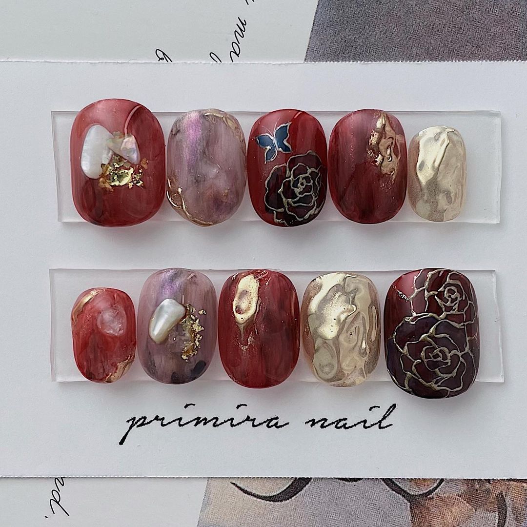 レッド系カラーの和柄ネイル101選!振袖や袴にも!
