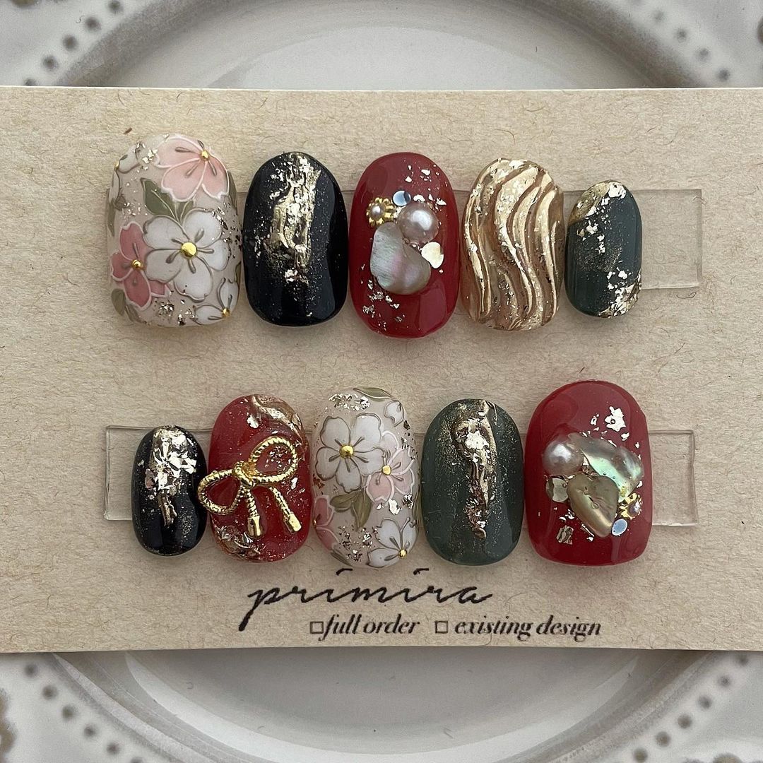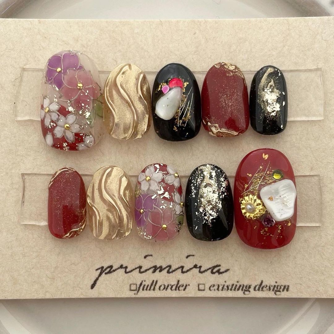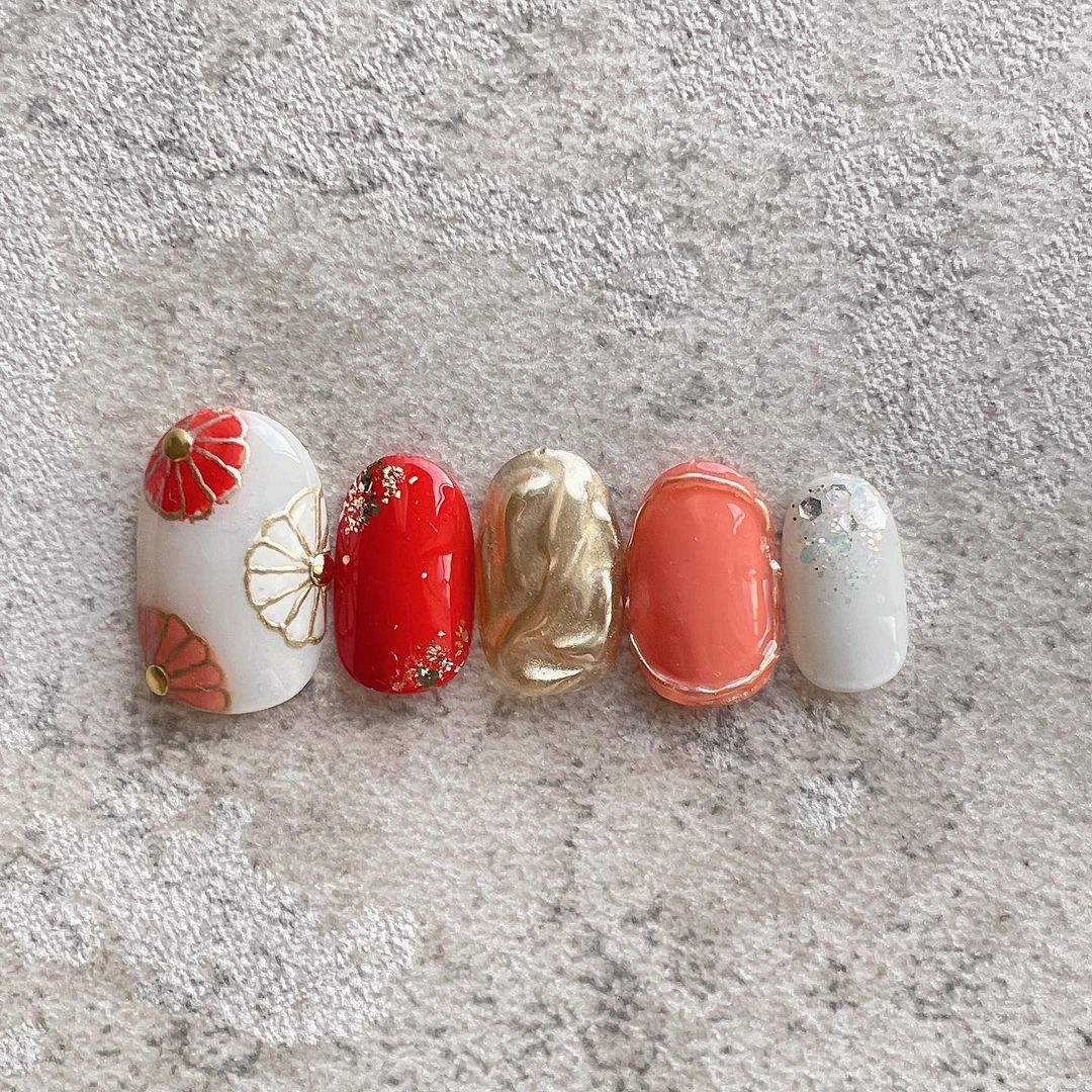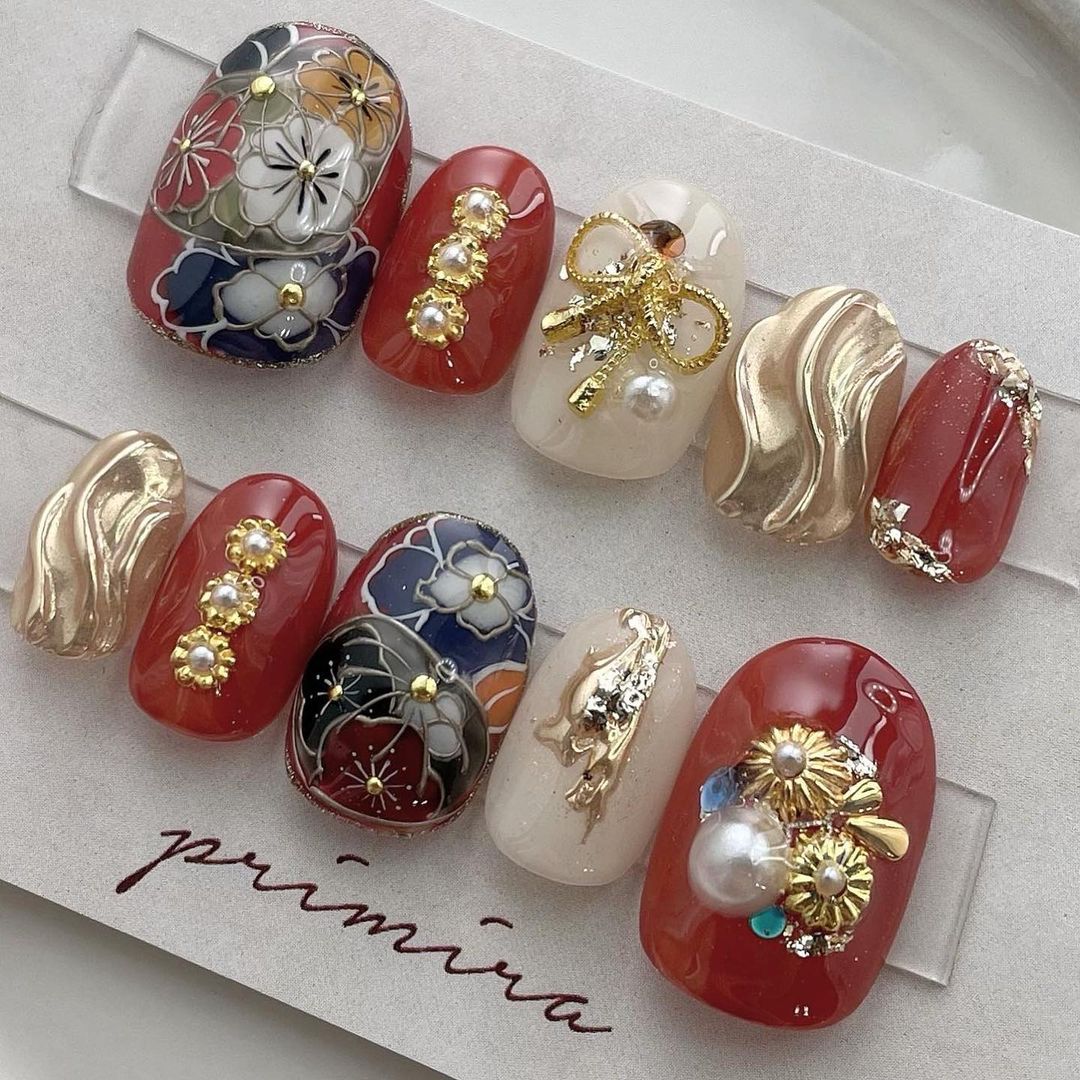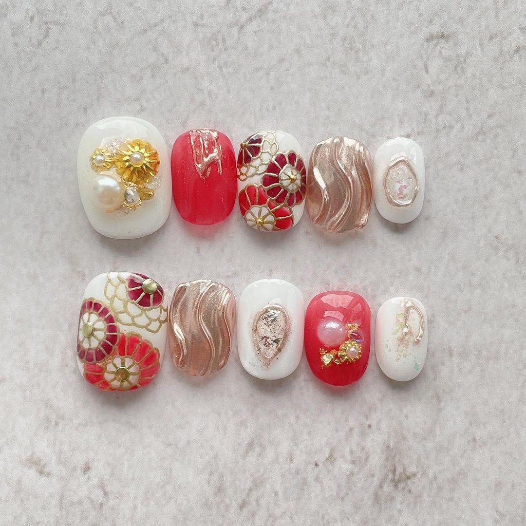 今回はレッド系カラーの和柄ネイルデザインをご紹介します!
