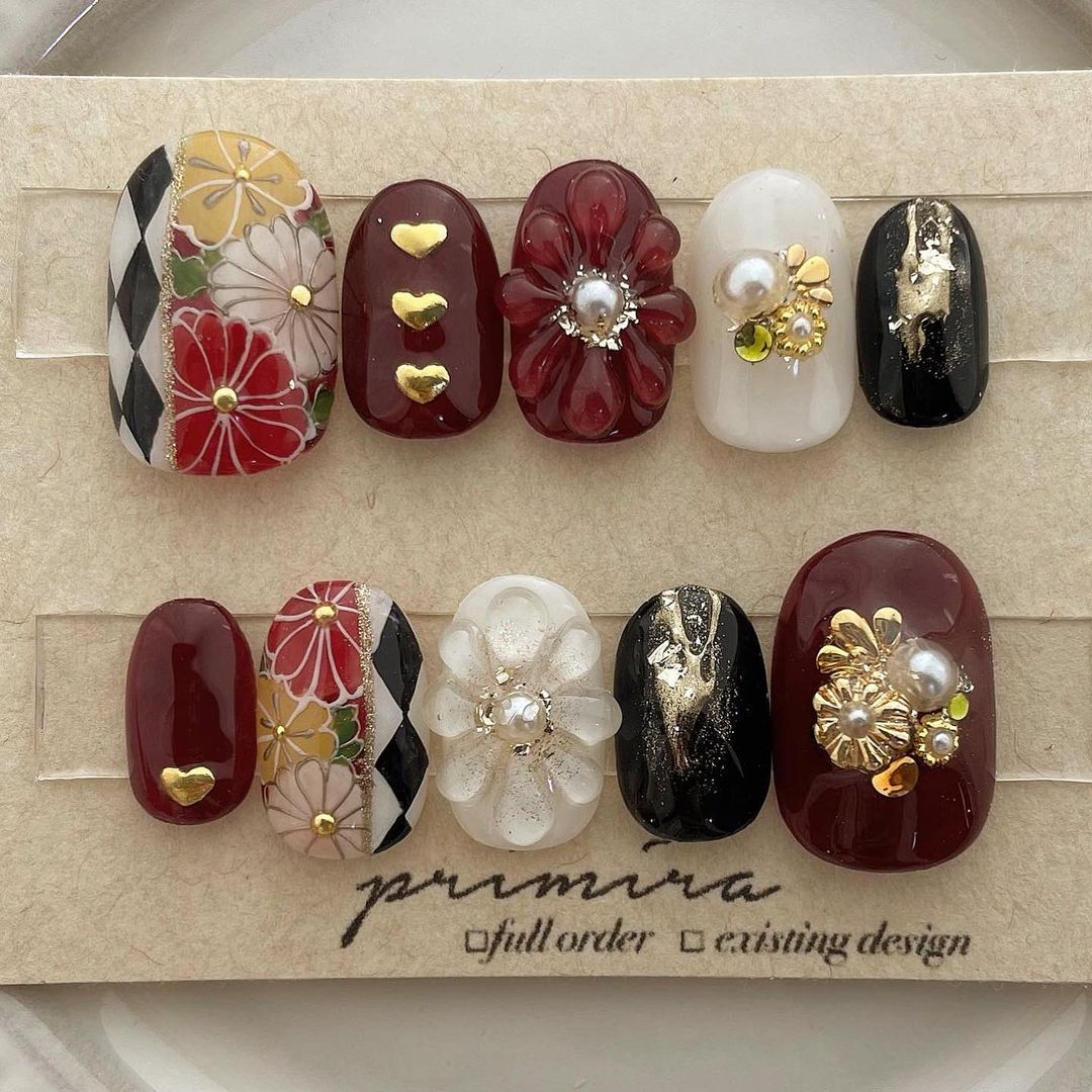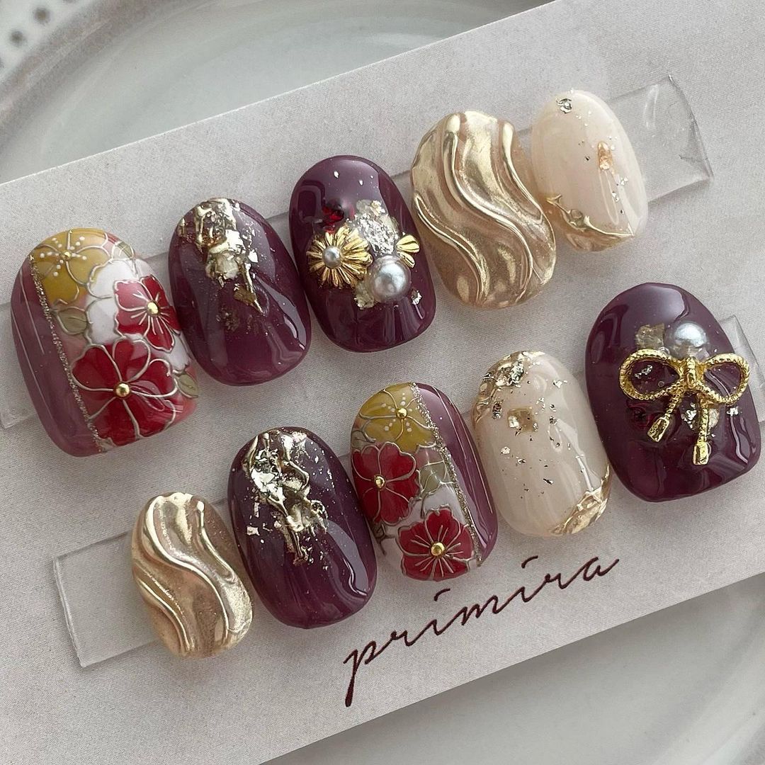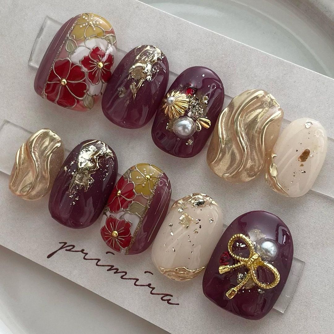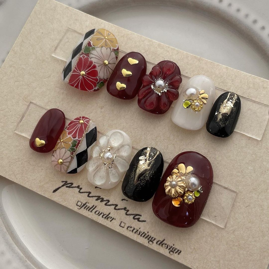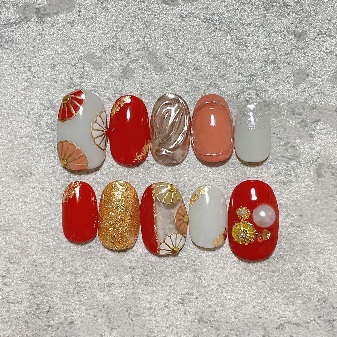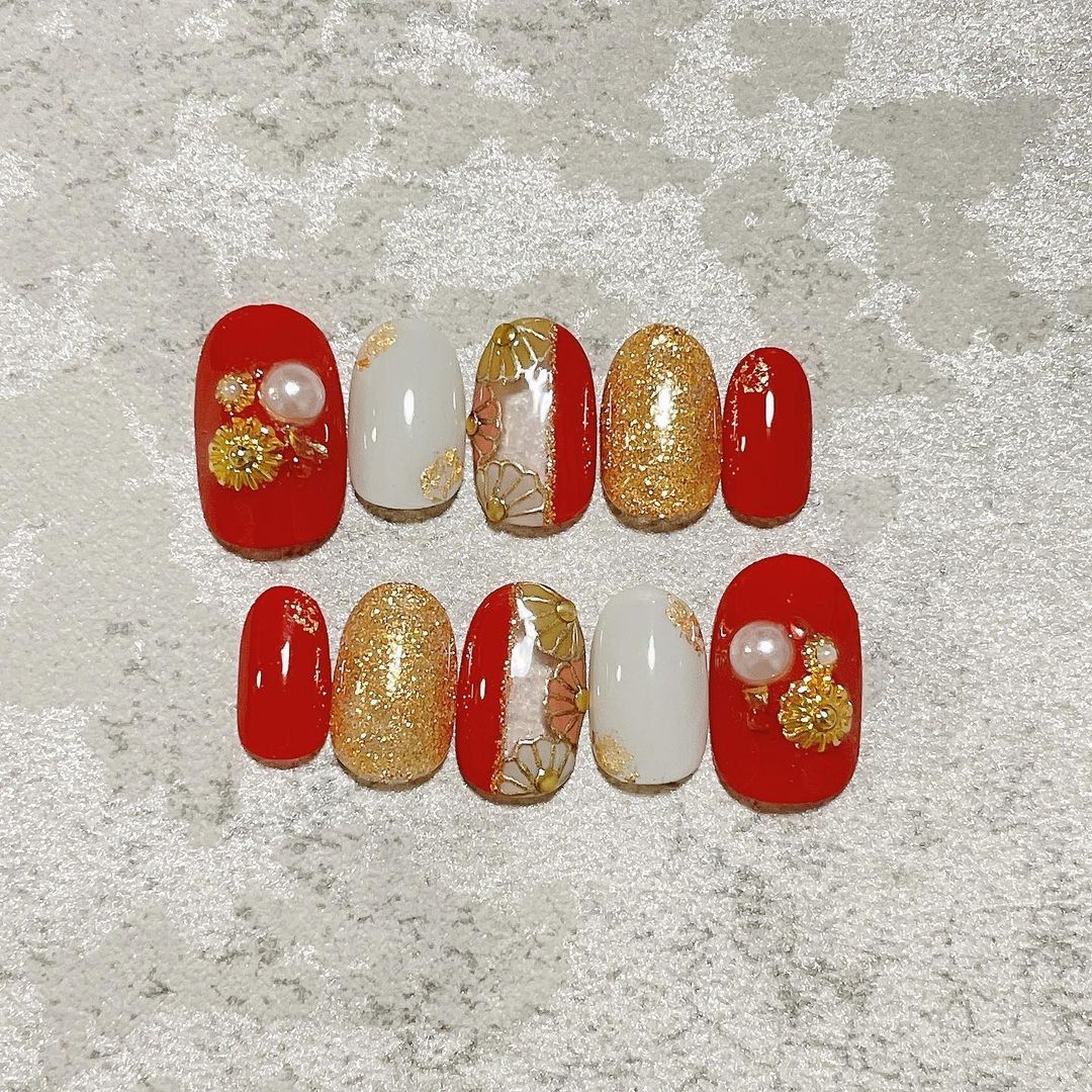 今回はレッド系カラーの和柄ネイルデザインをご紹介します!