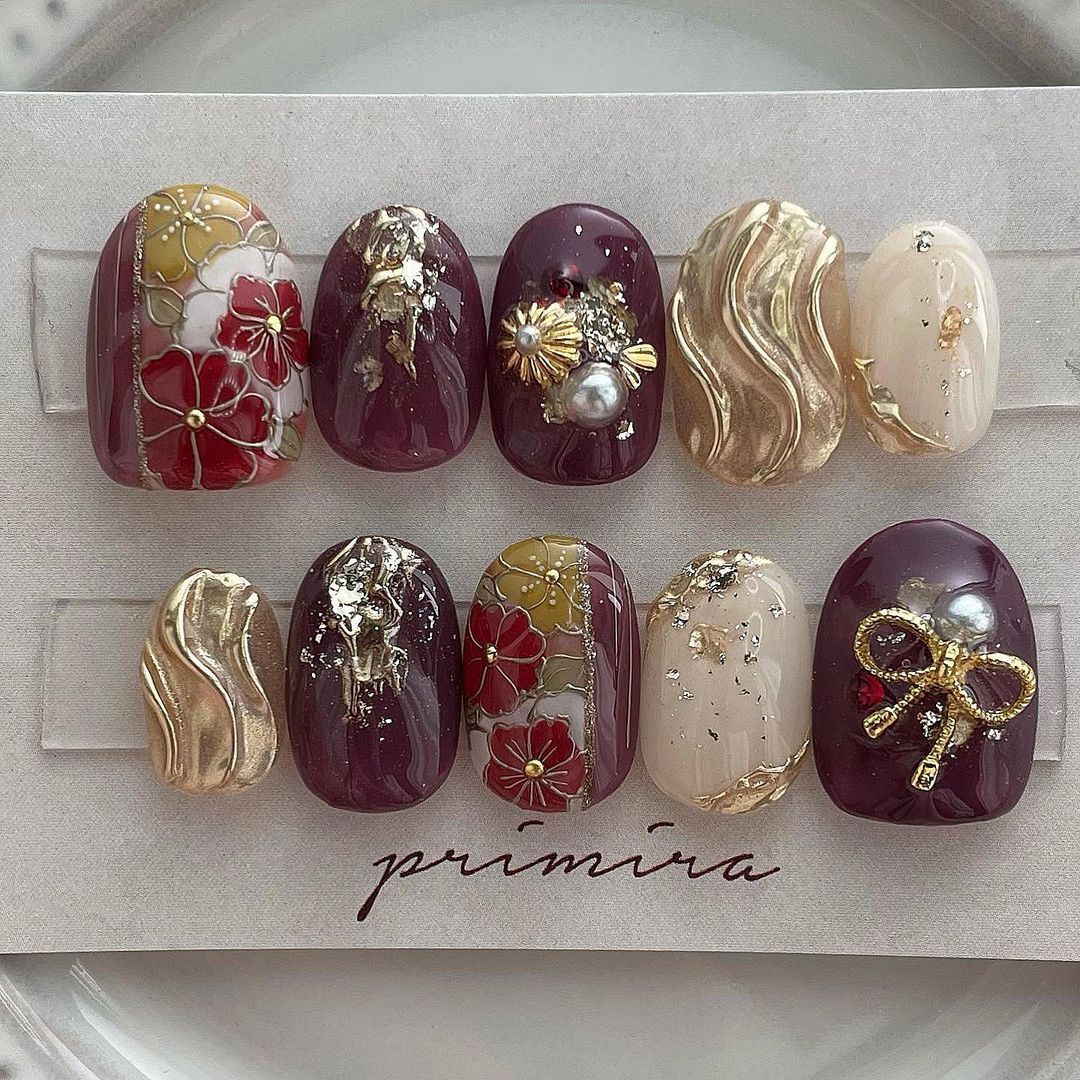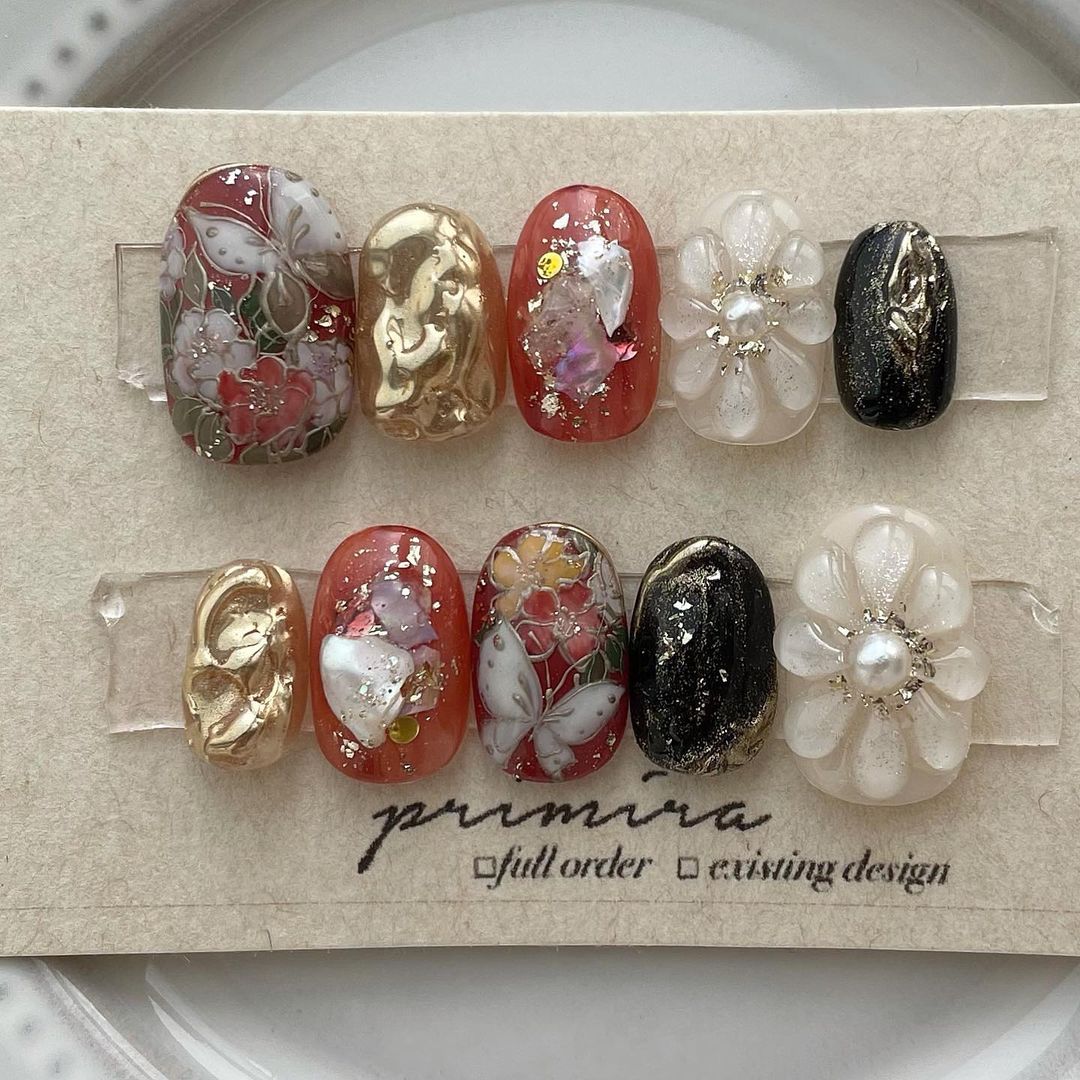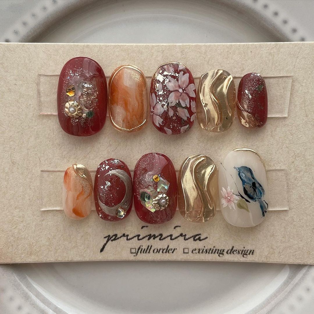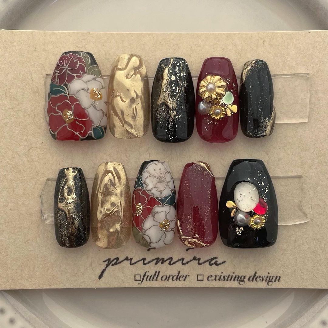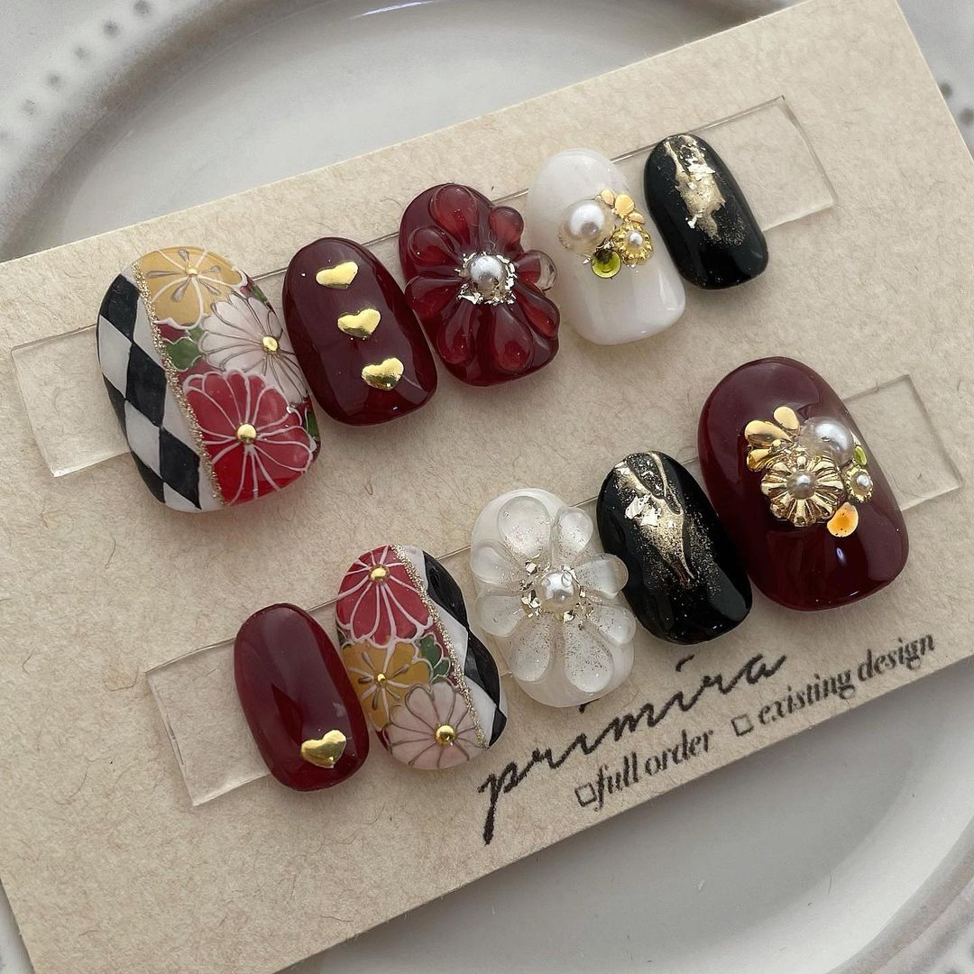 今回はレッド系カラーの和柄ネイルデザインをご紹介します!