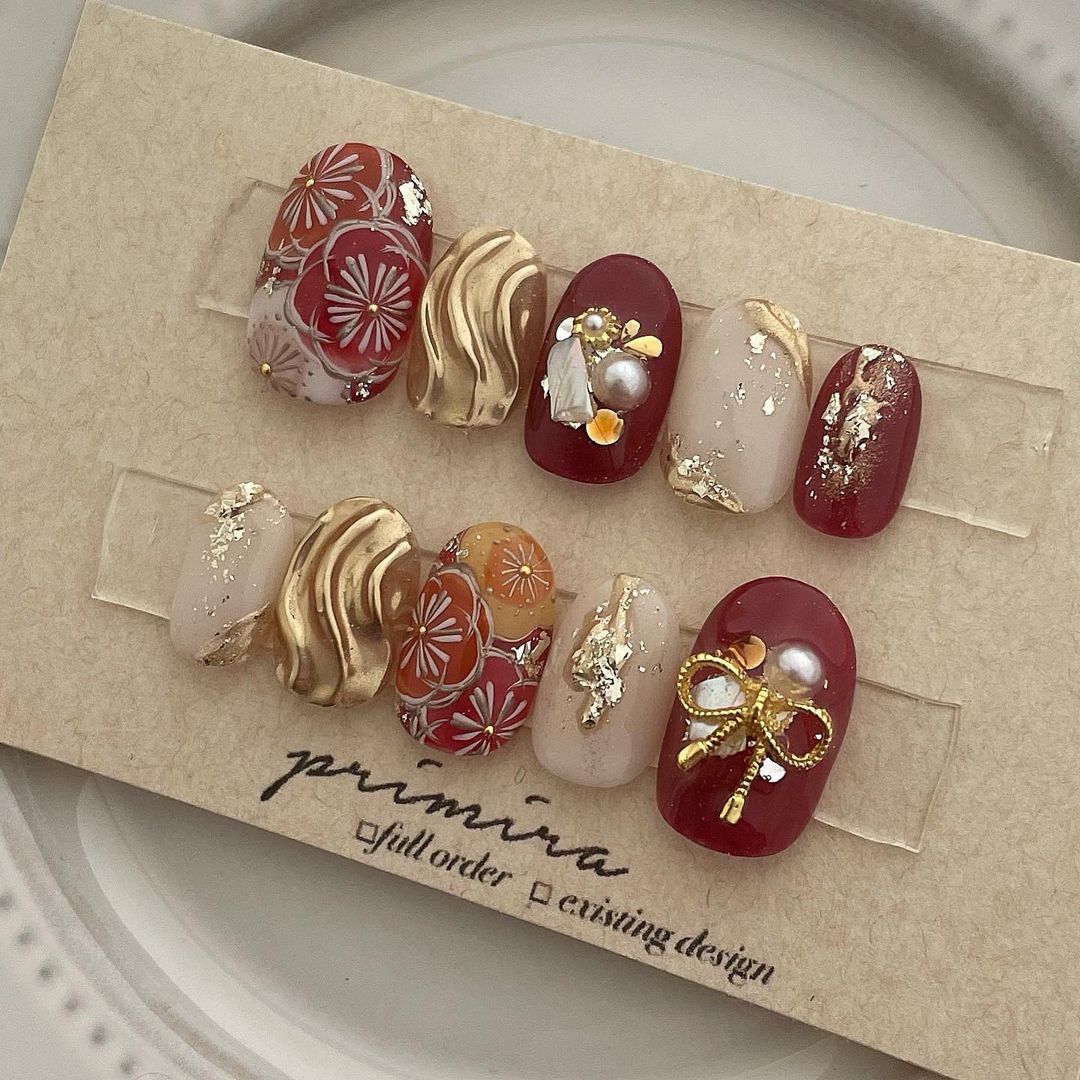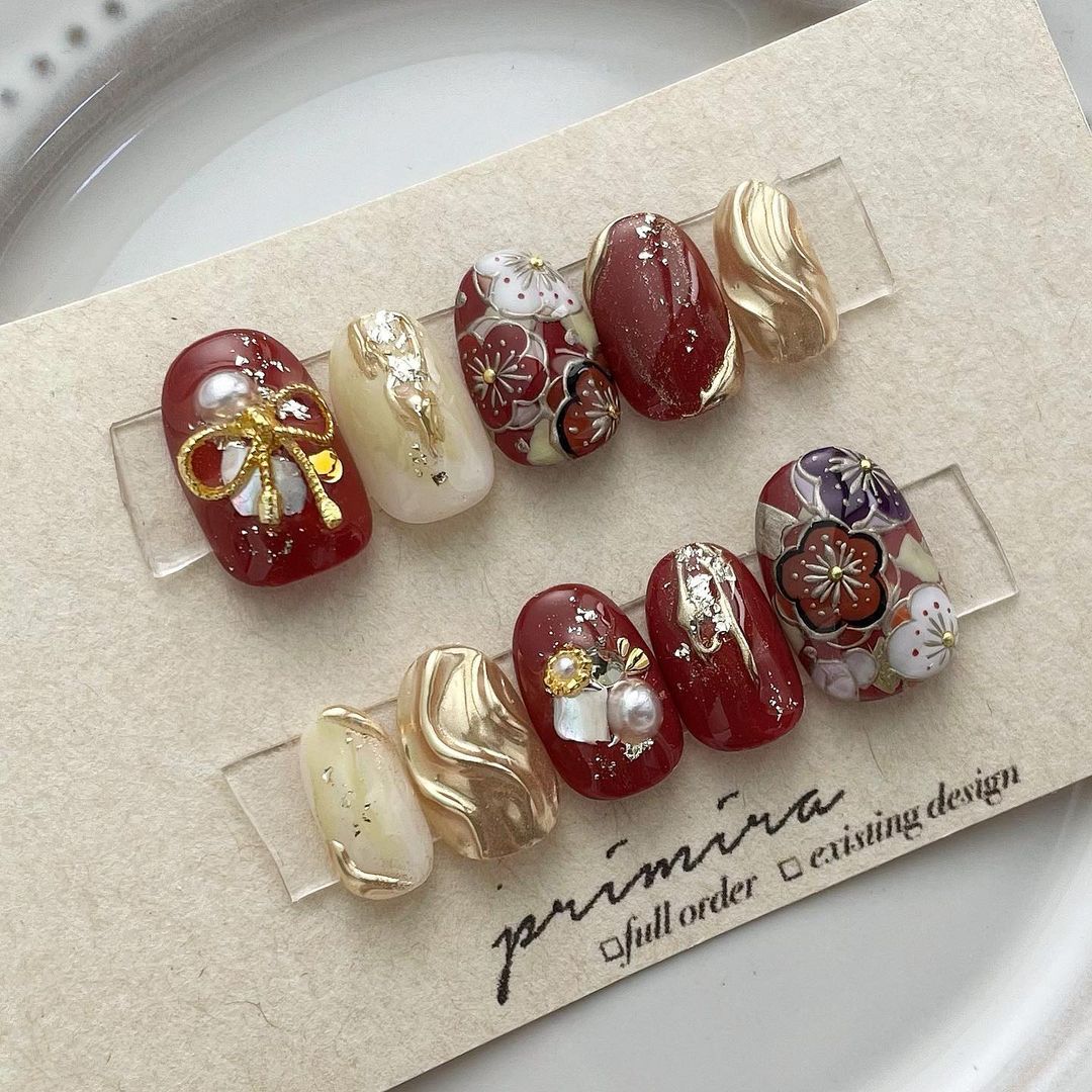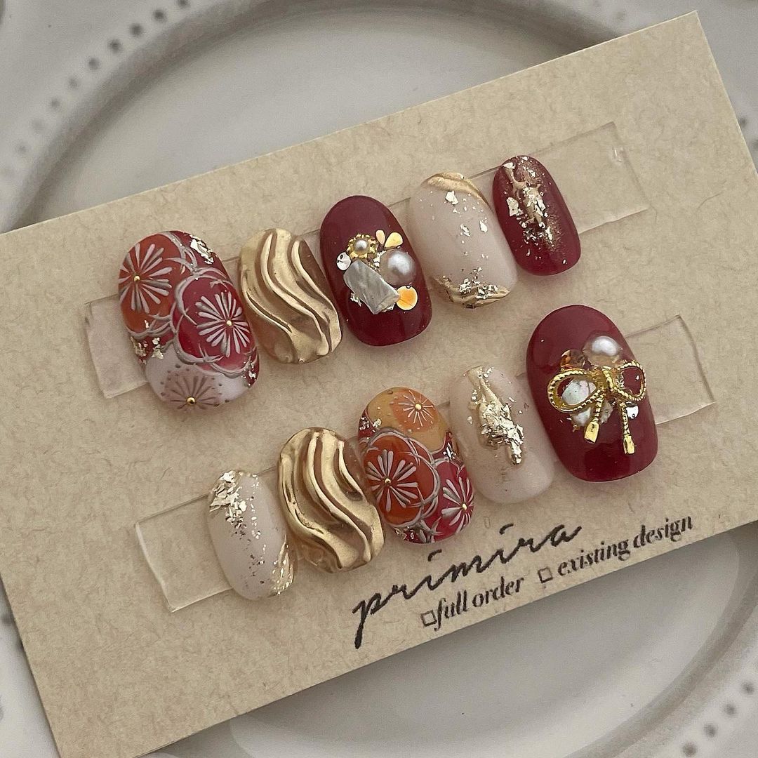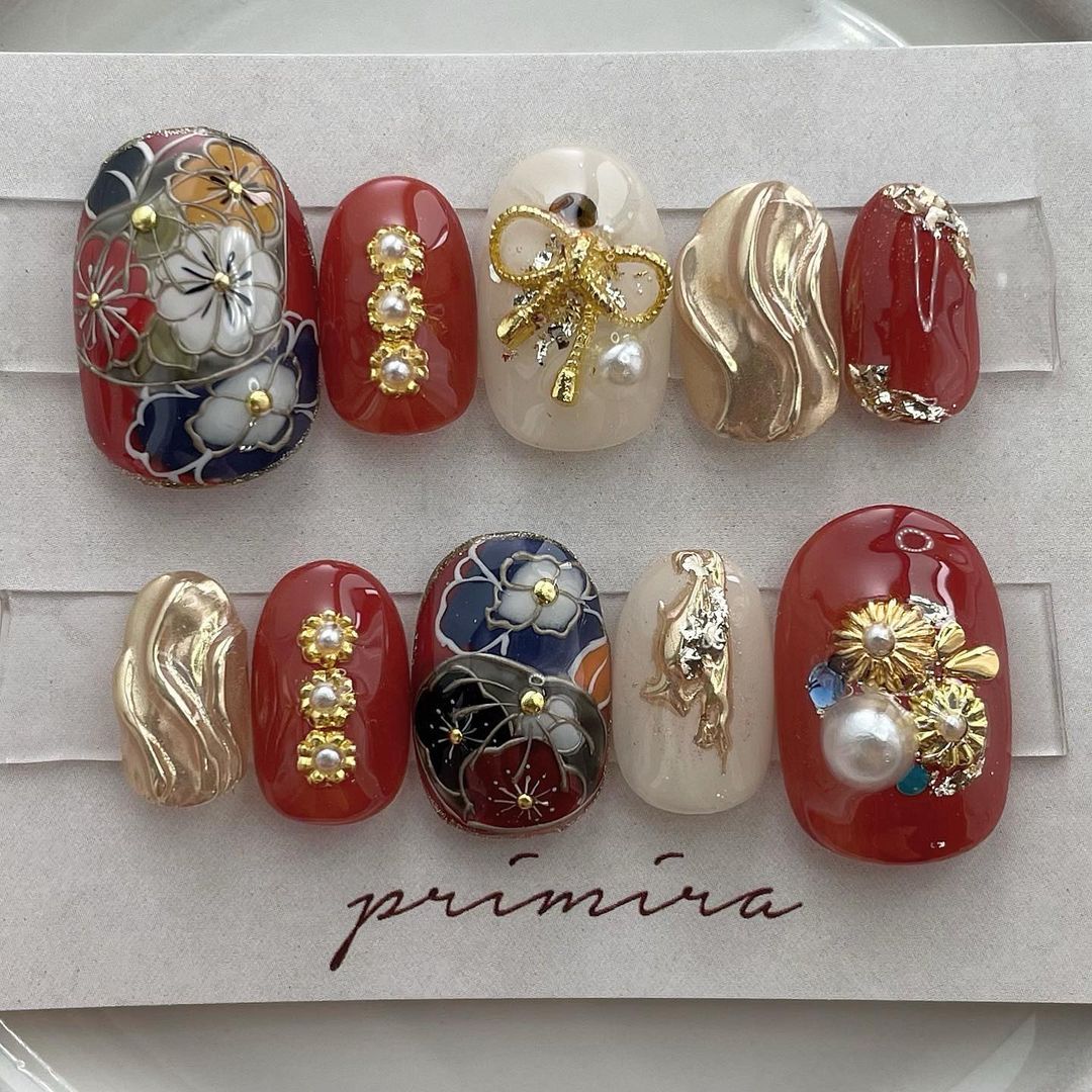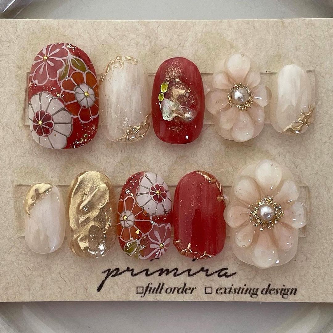 【保存版】レッド系カラーの和柄ネイル103選!普段使いから特別な日向けも!