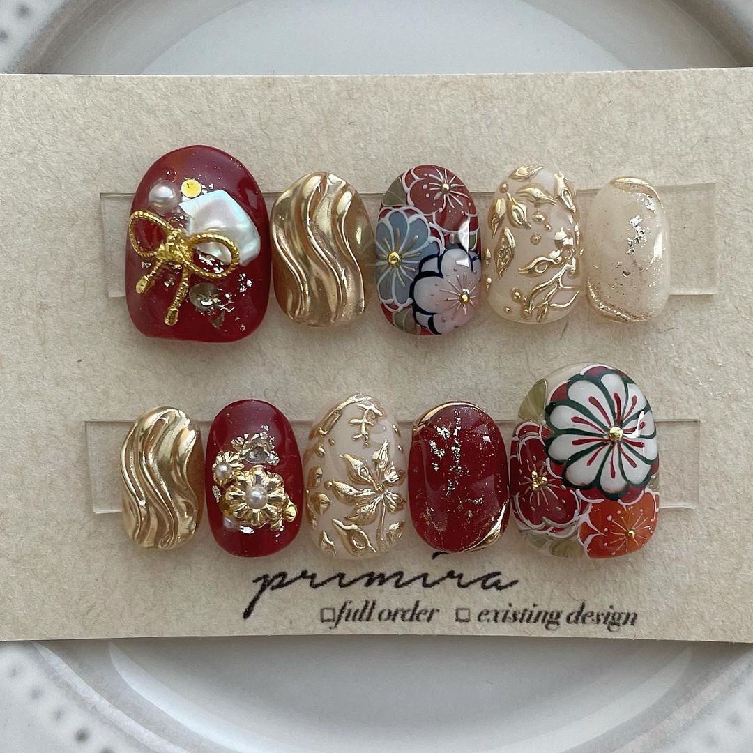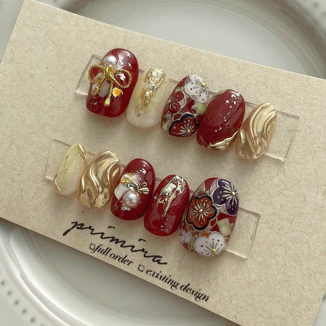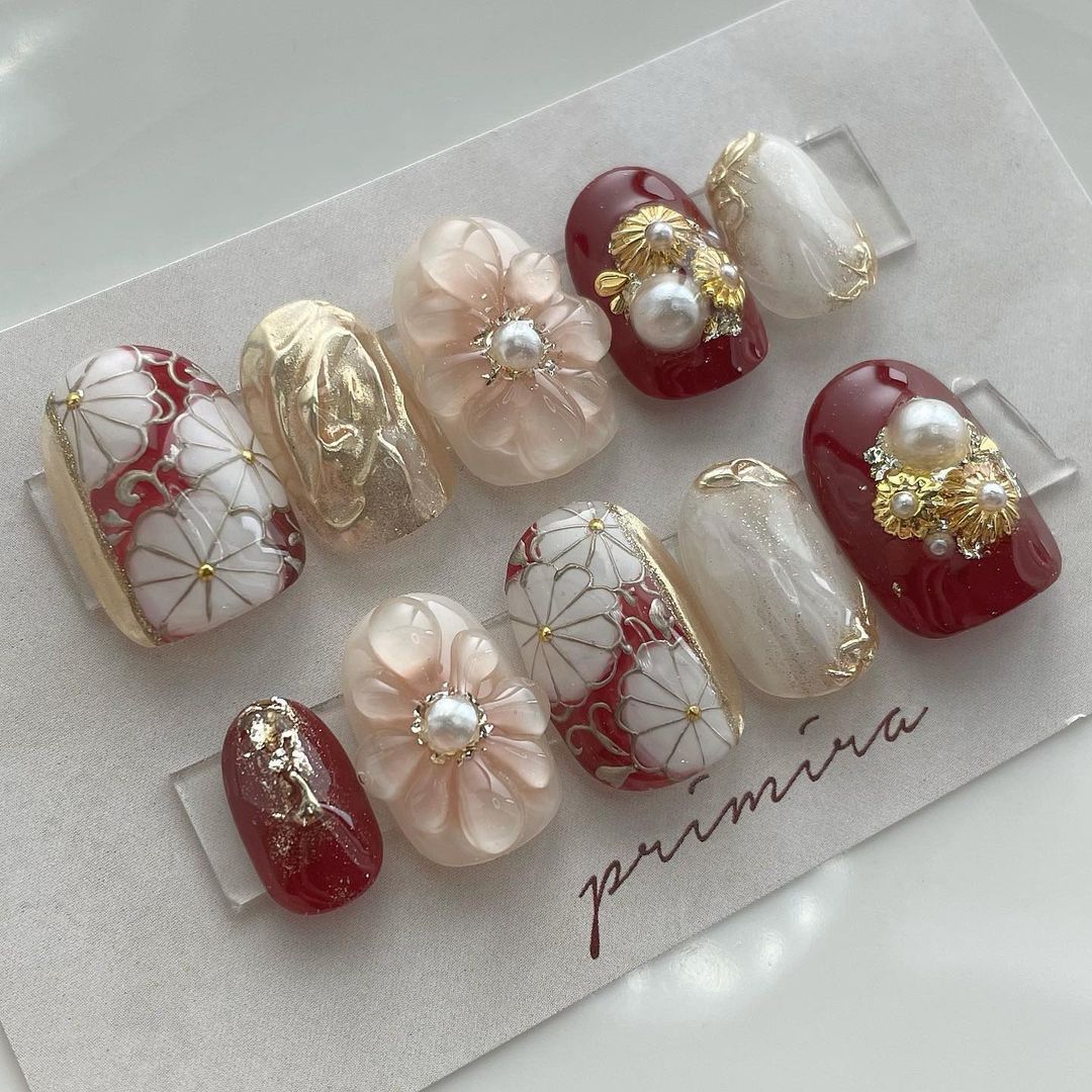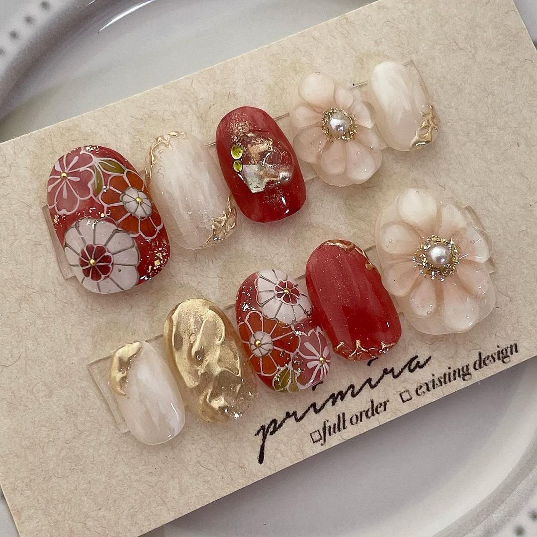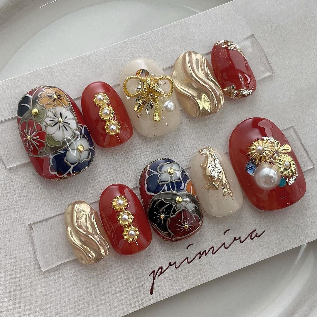 【保存版】レッド系カラーの和柄ネイル103選!普段使いから特別な日向けも!
