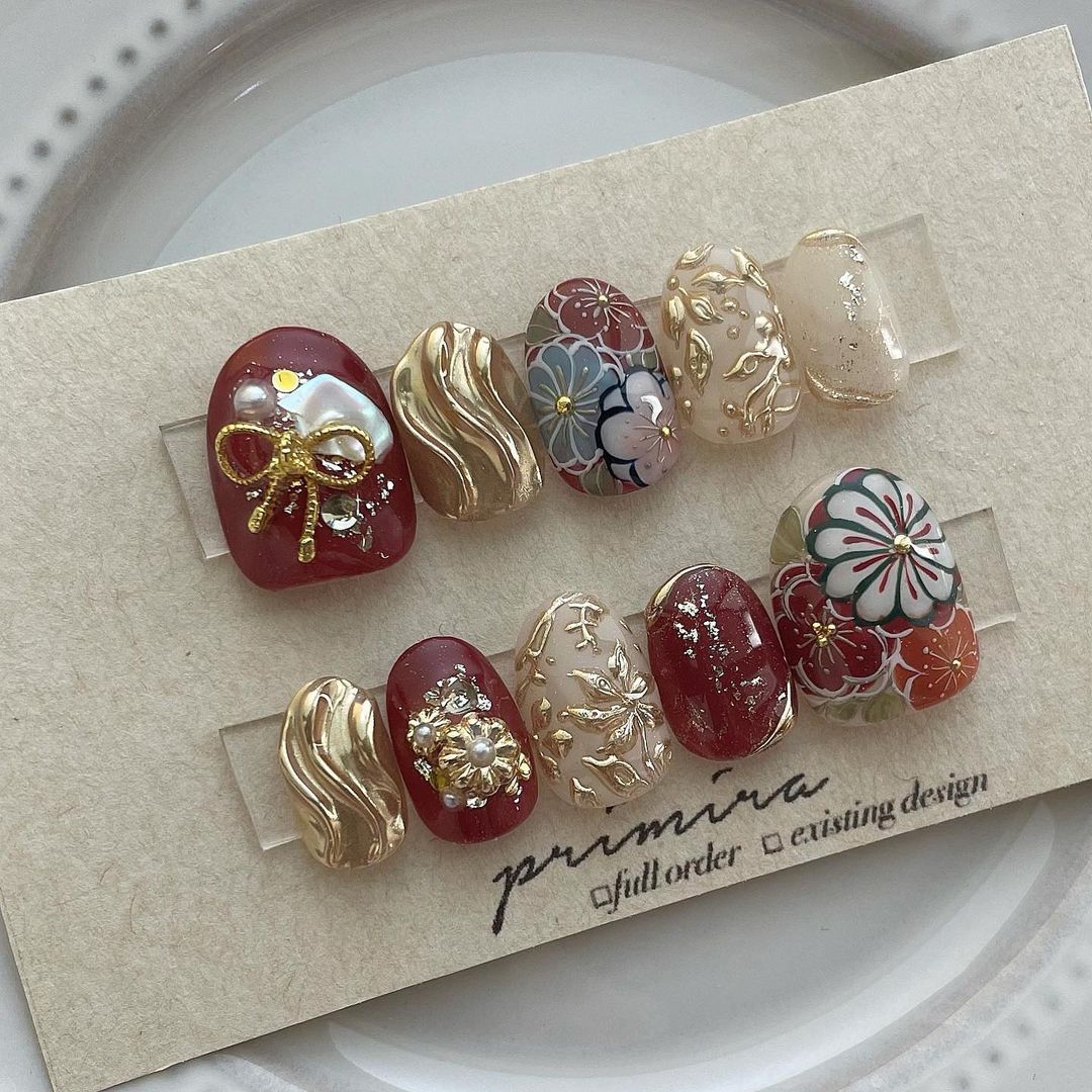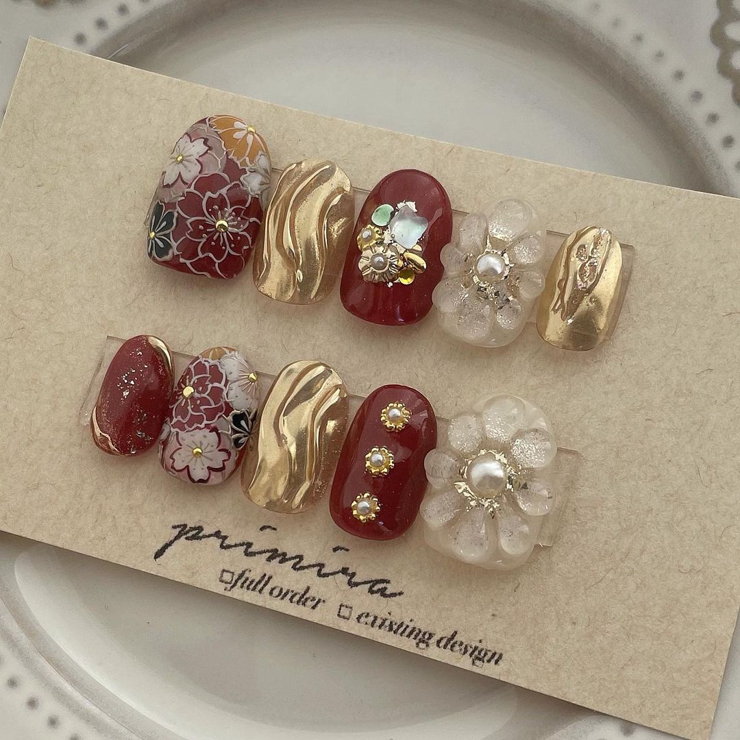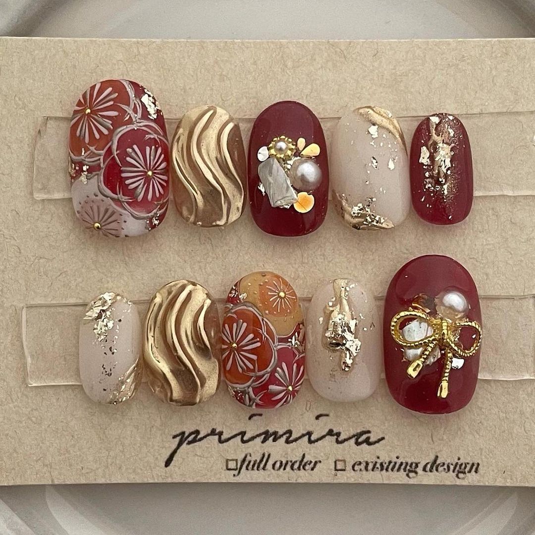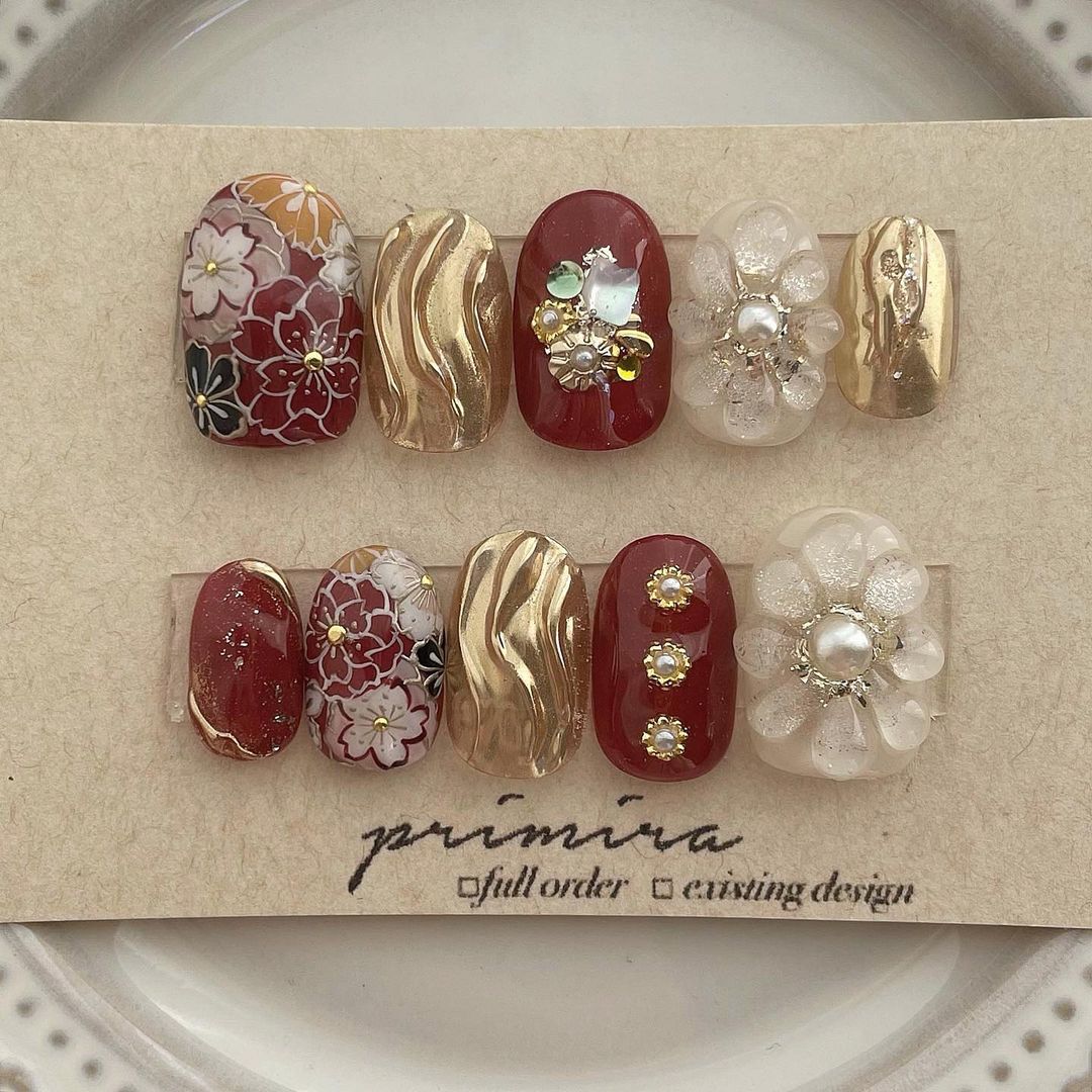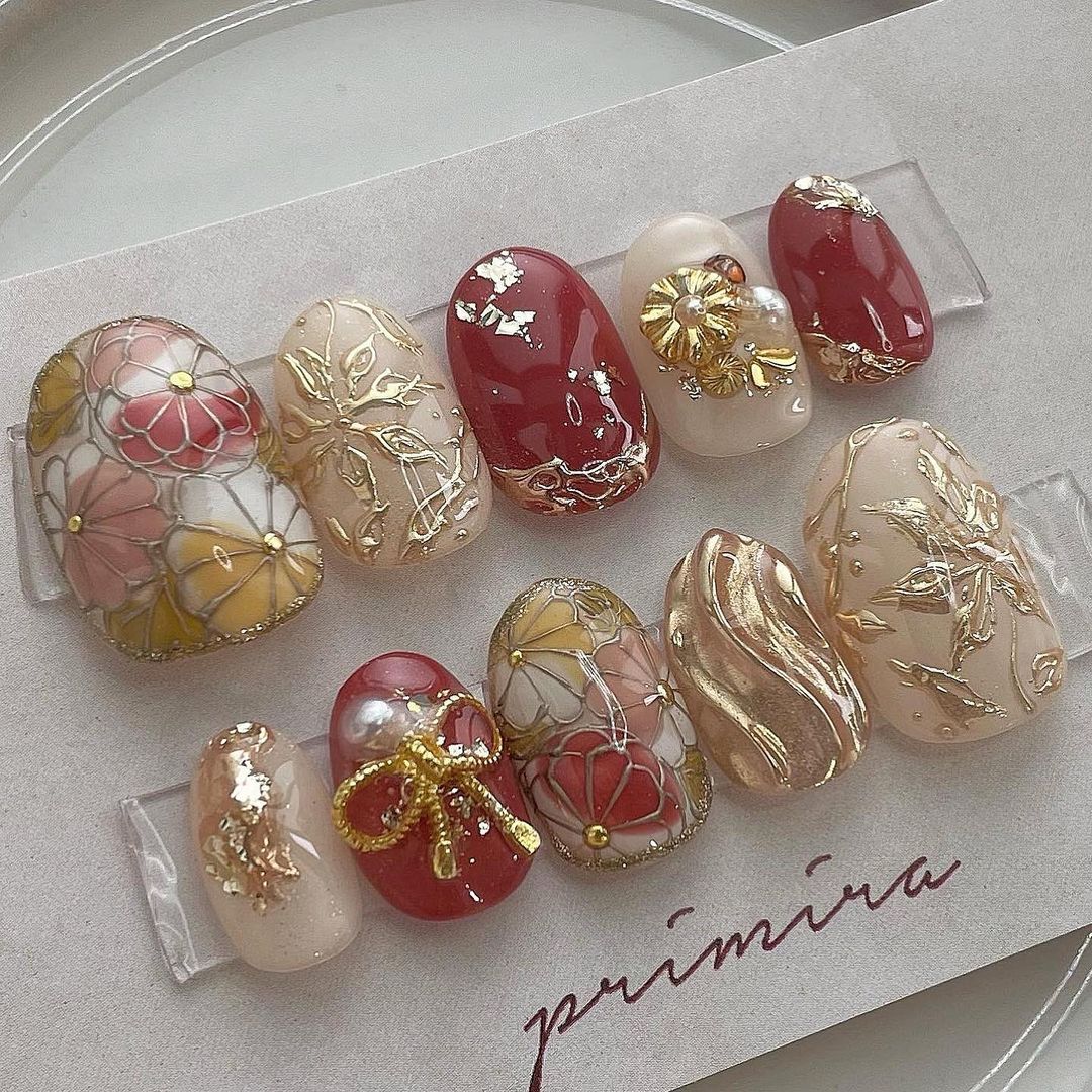 【保存版】レッド系カラーの和柄ネイル103選!普段使いから特別な日向けも!