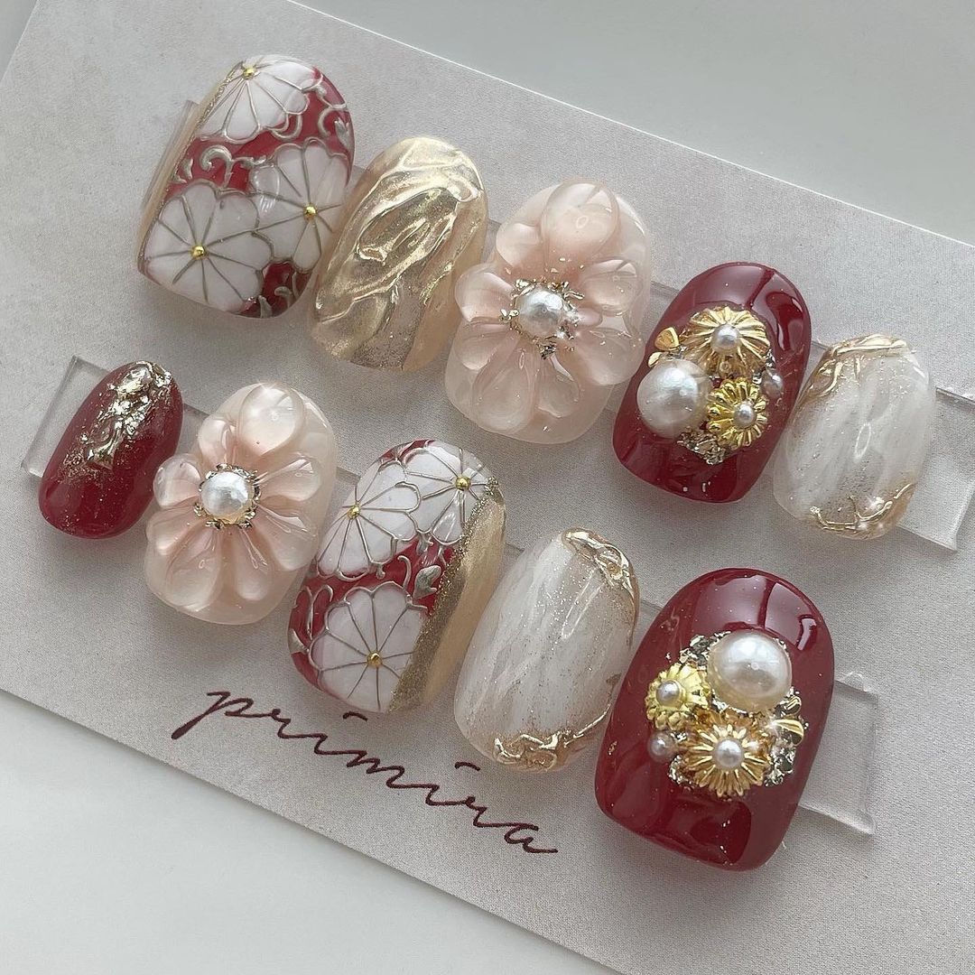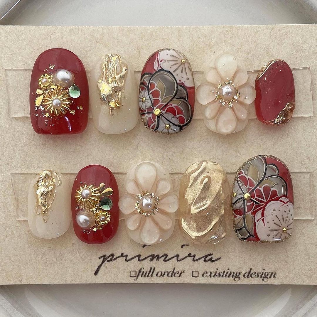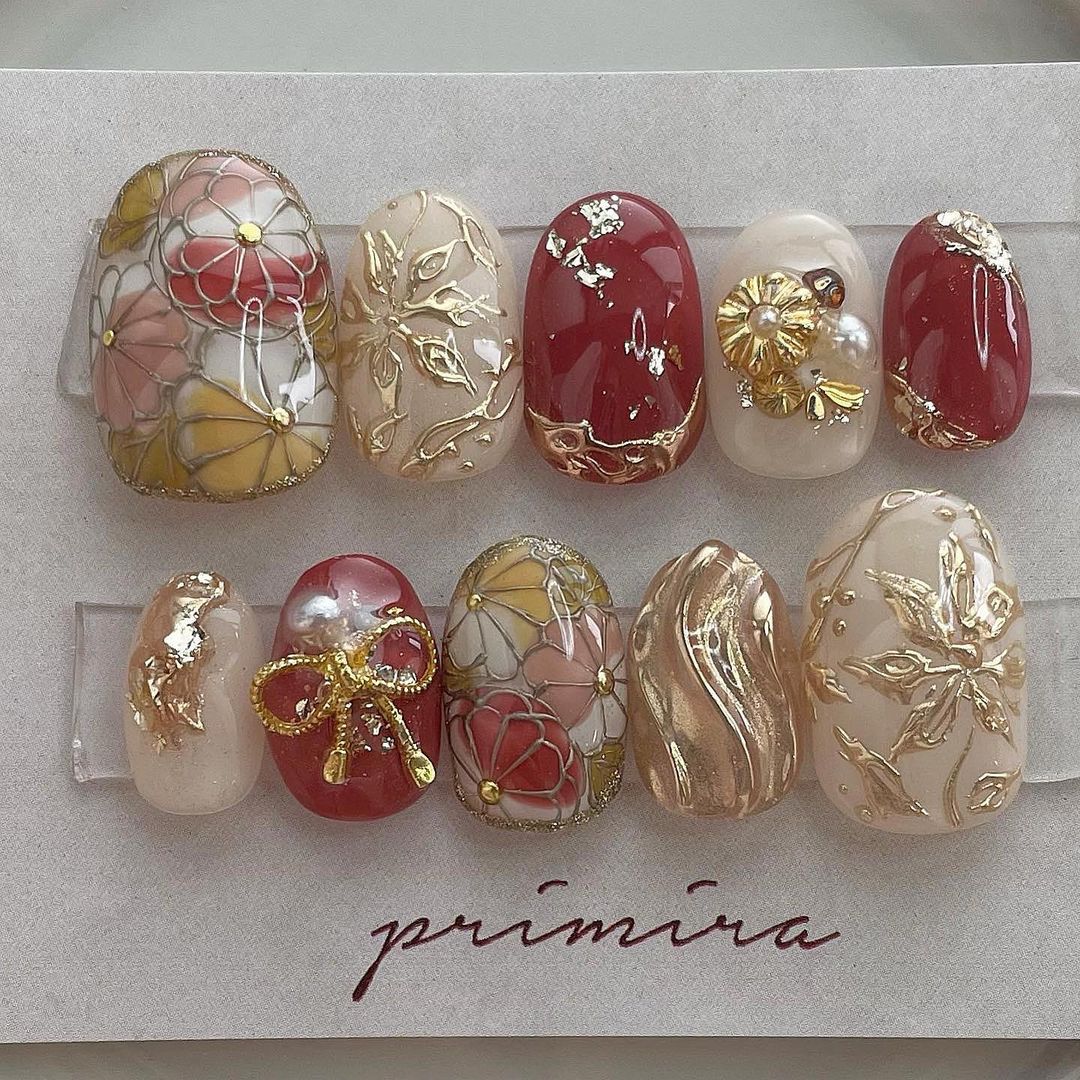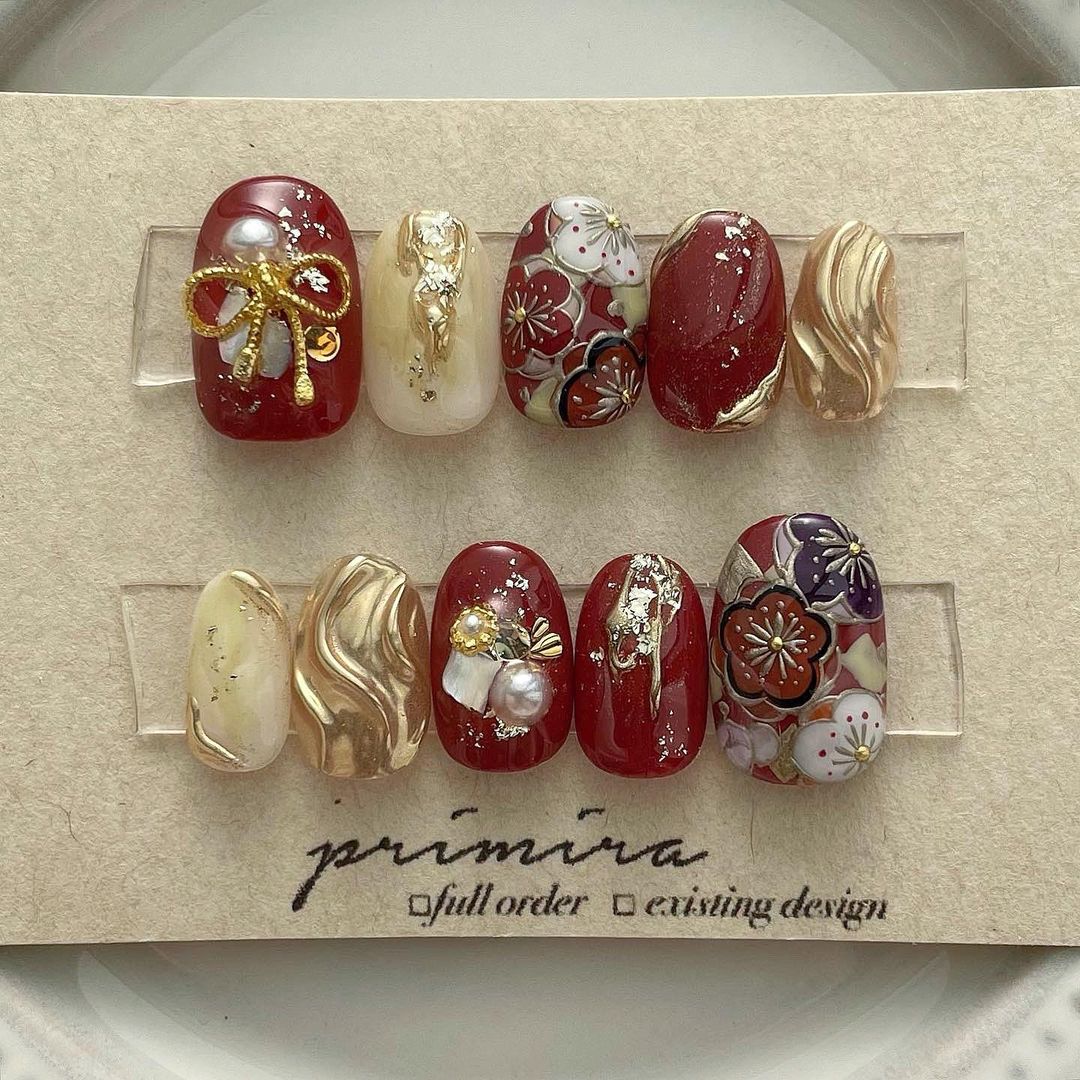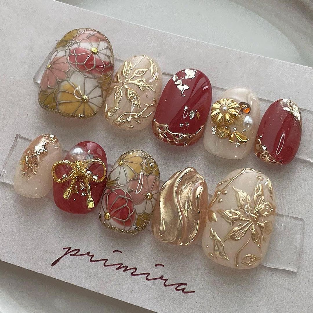 【保存版】レッド系カラーの和柄ネイル103選!普段使いから特別な日向けも!