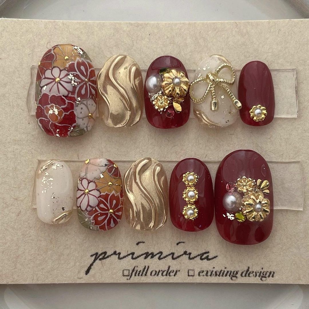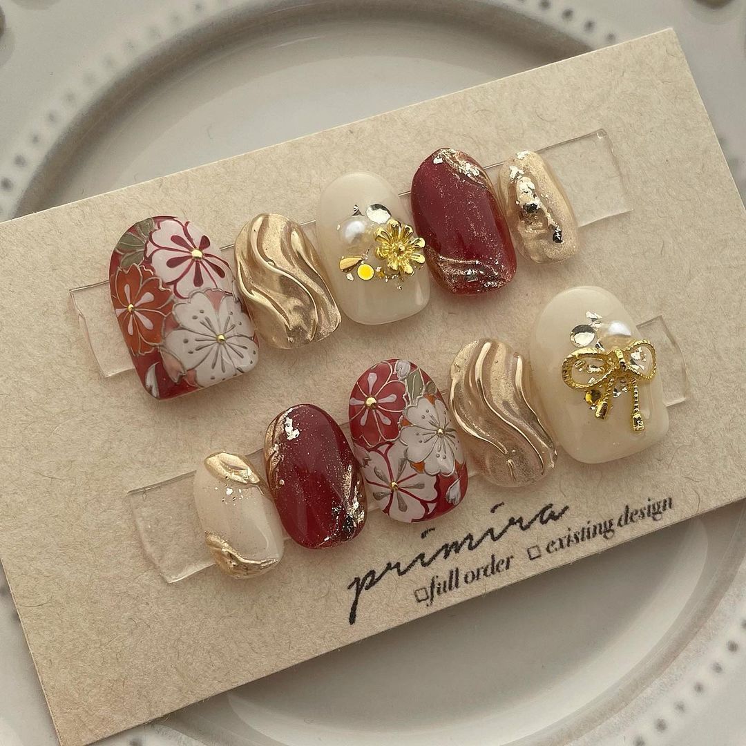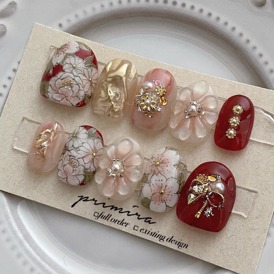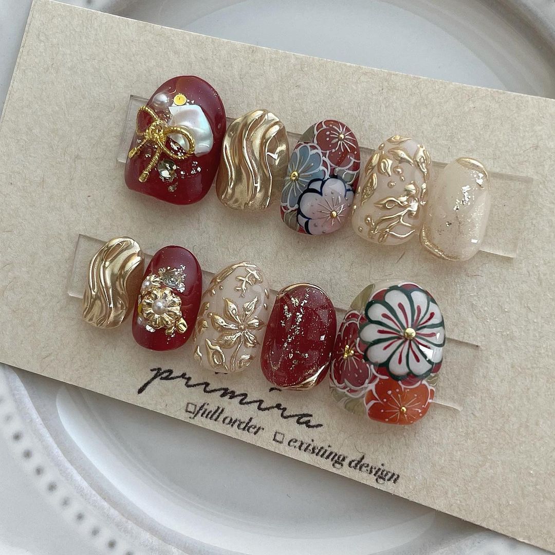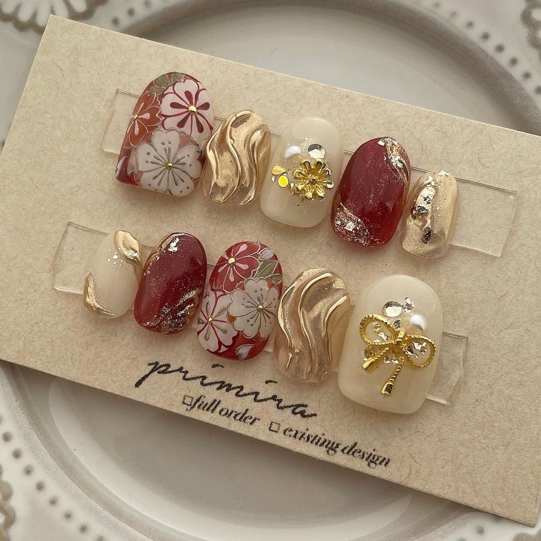 【保存版】レッド系カラーの和柄ネイル103選!普段使いから特別な日向けも!