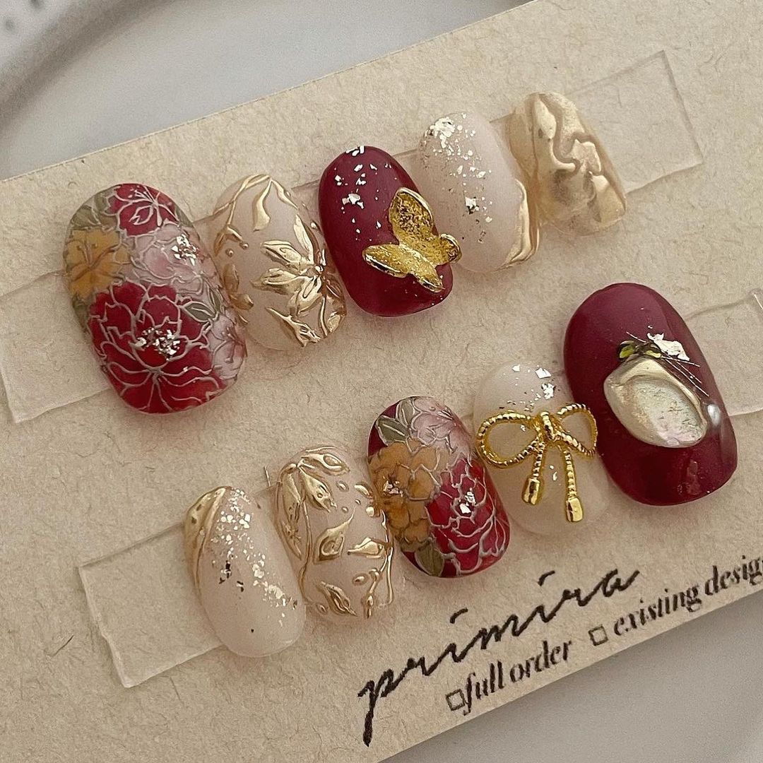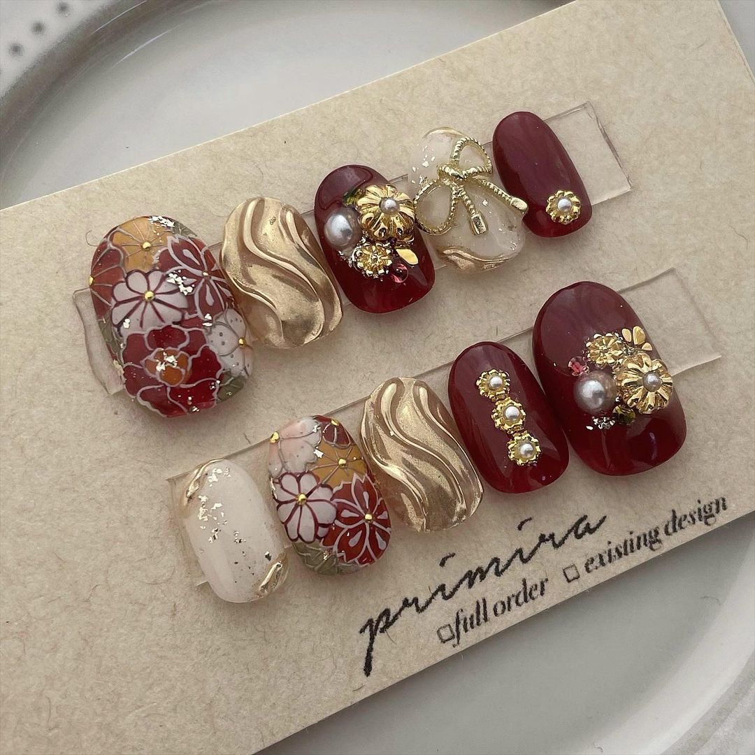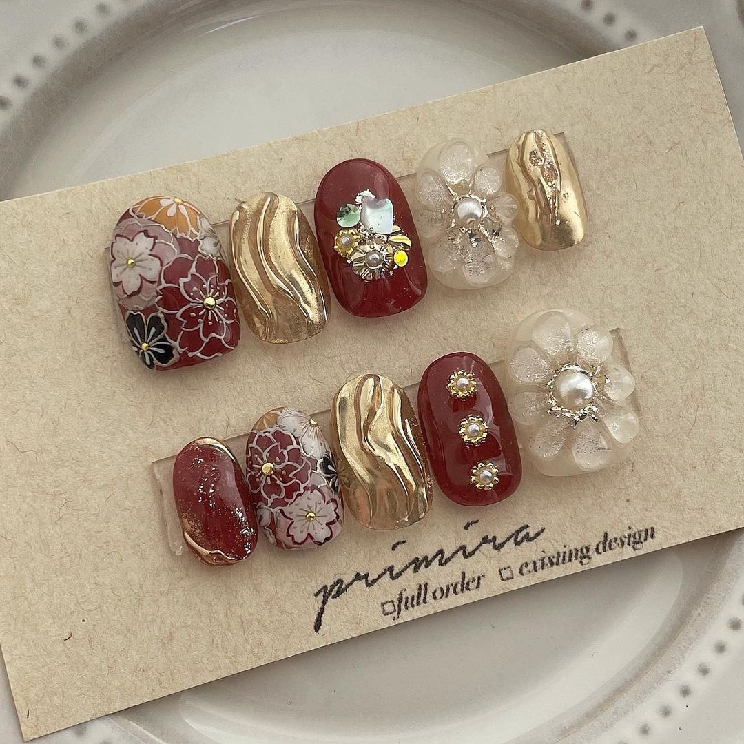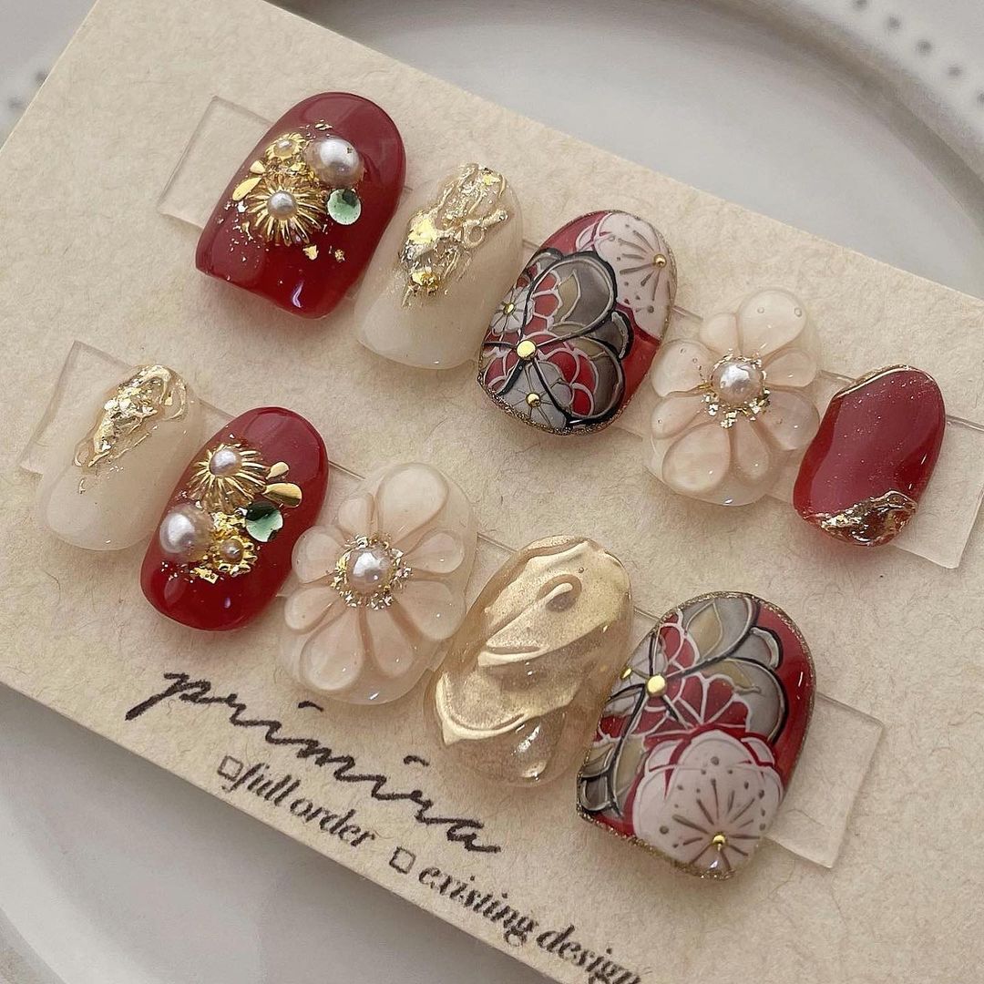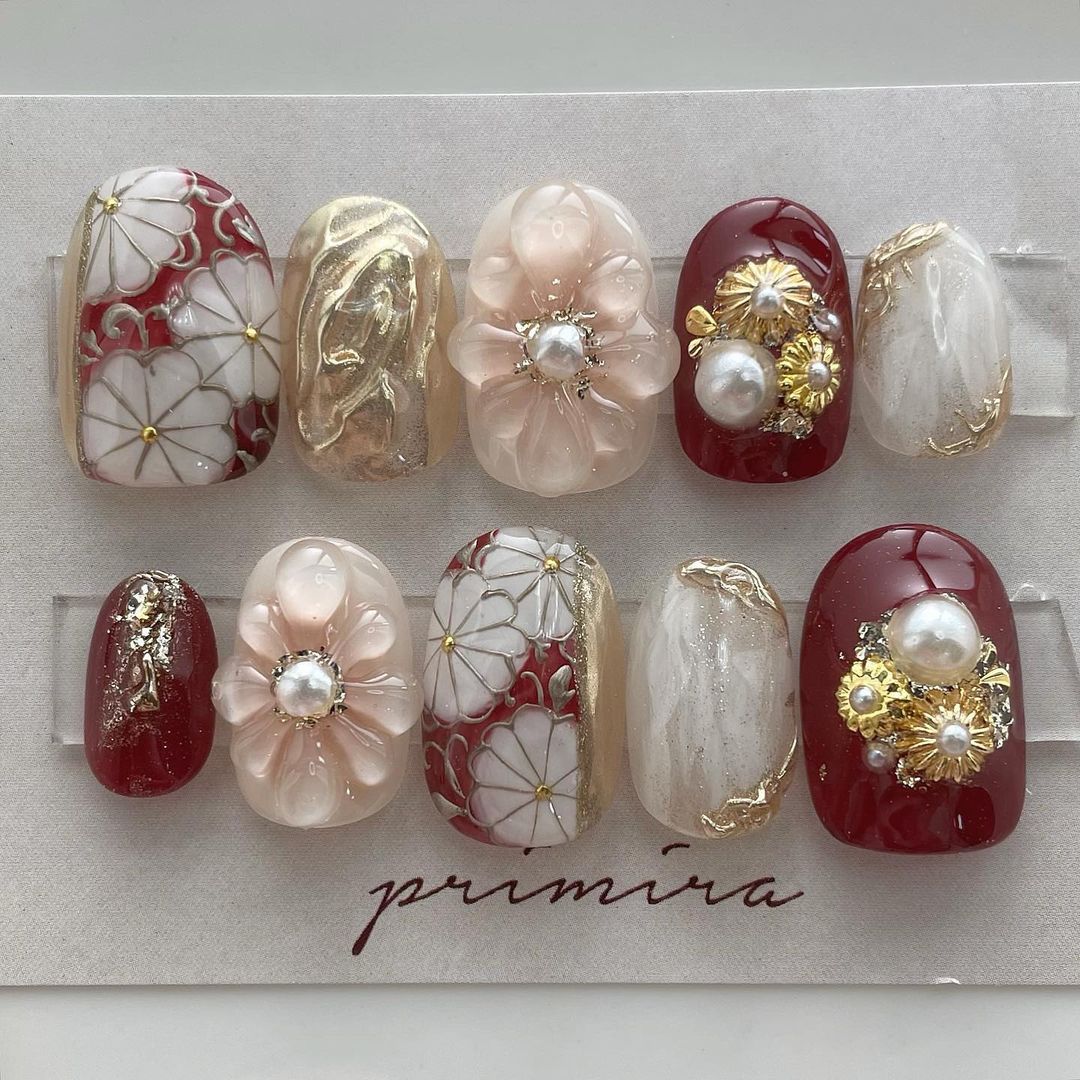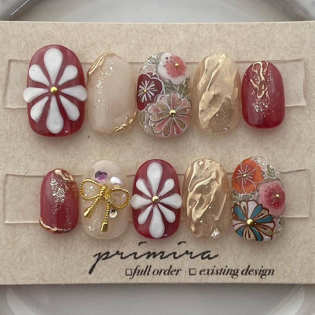 【保存版】レッド系カラーの和柄ネイル103選!普段使いから特別な日向けも!