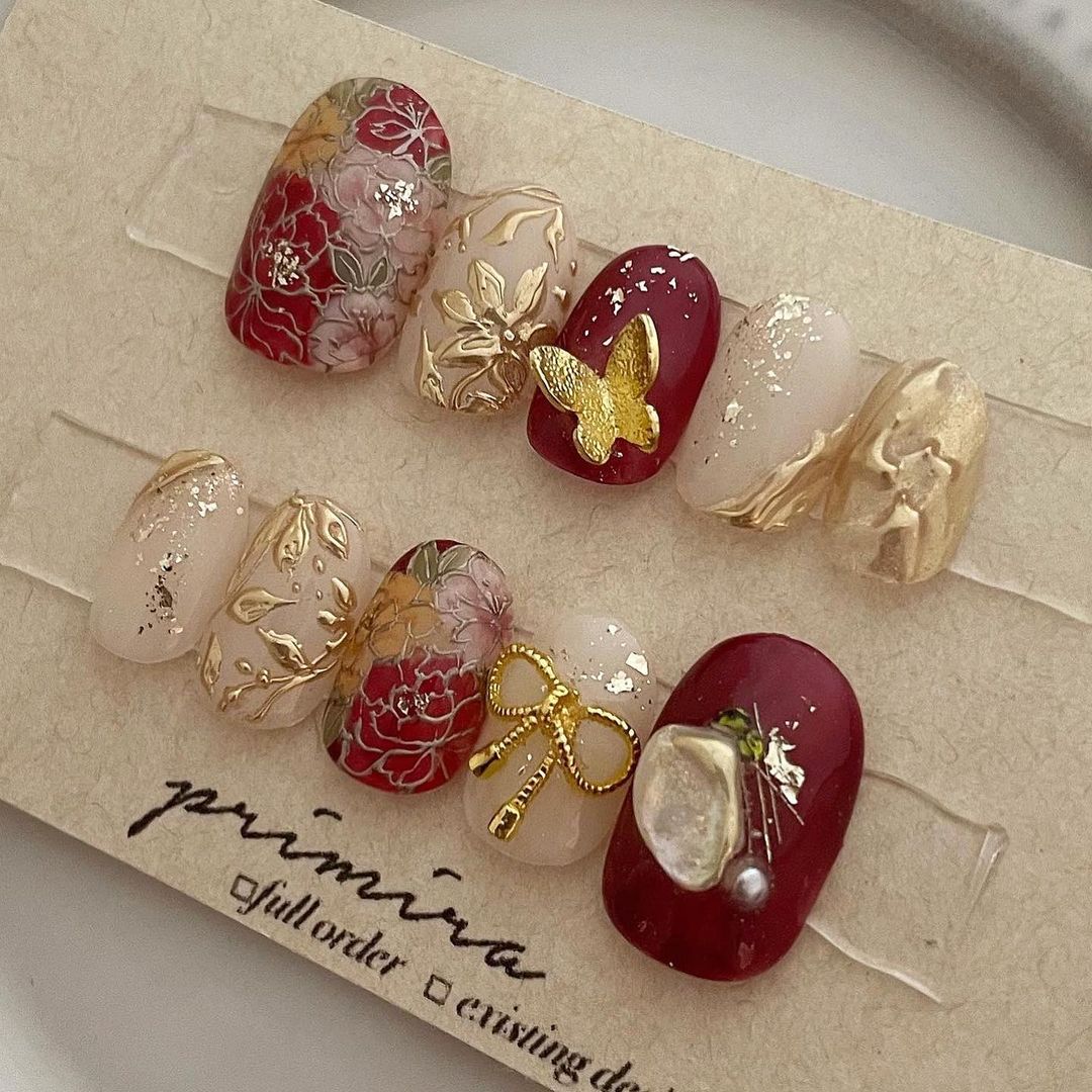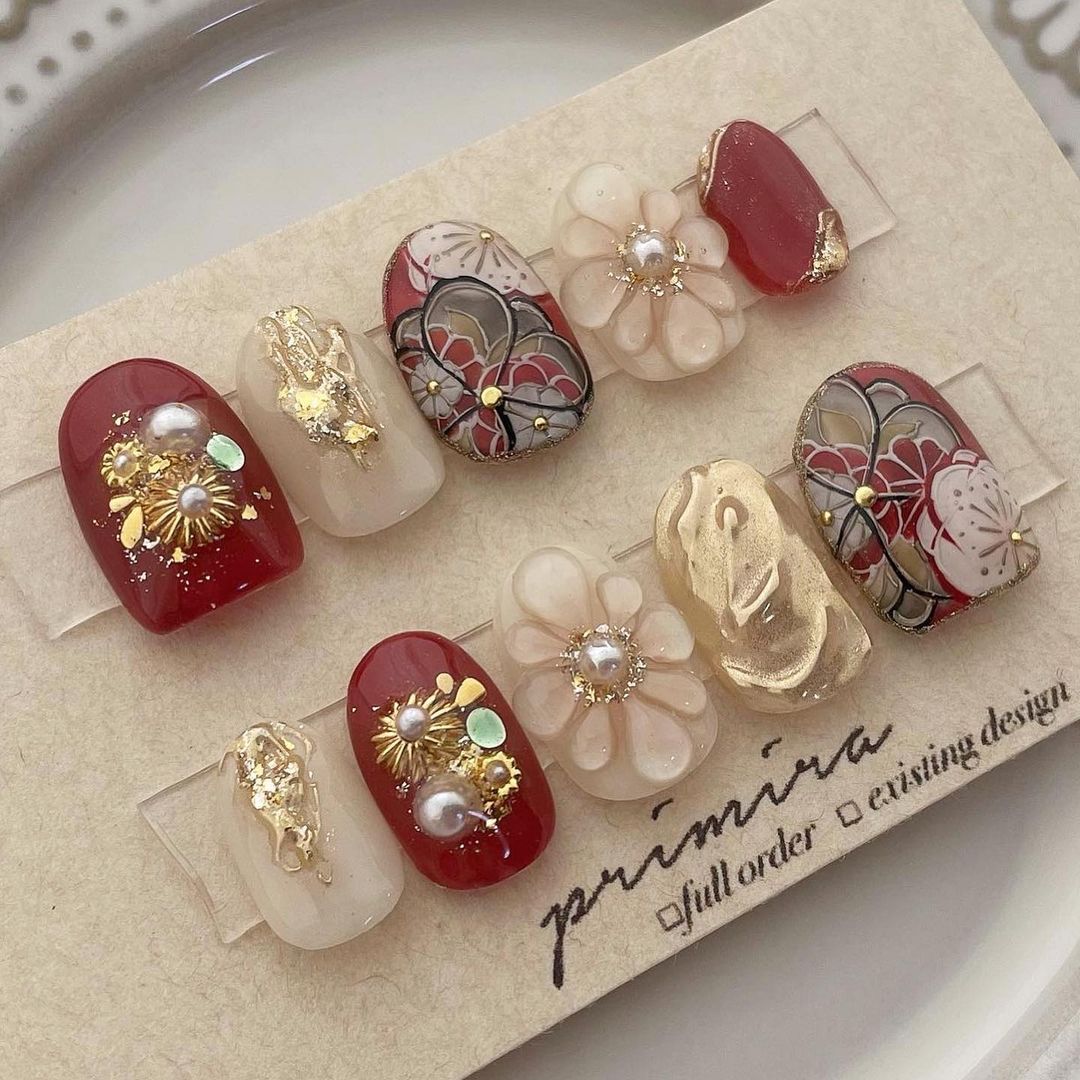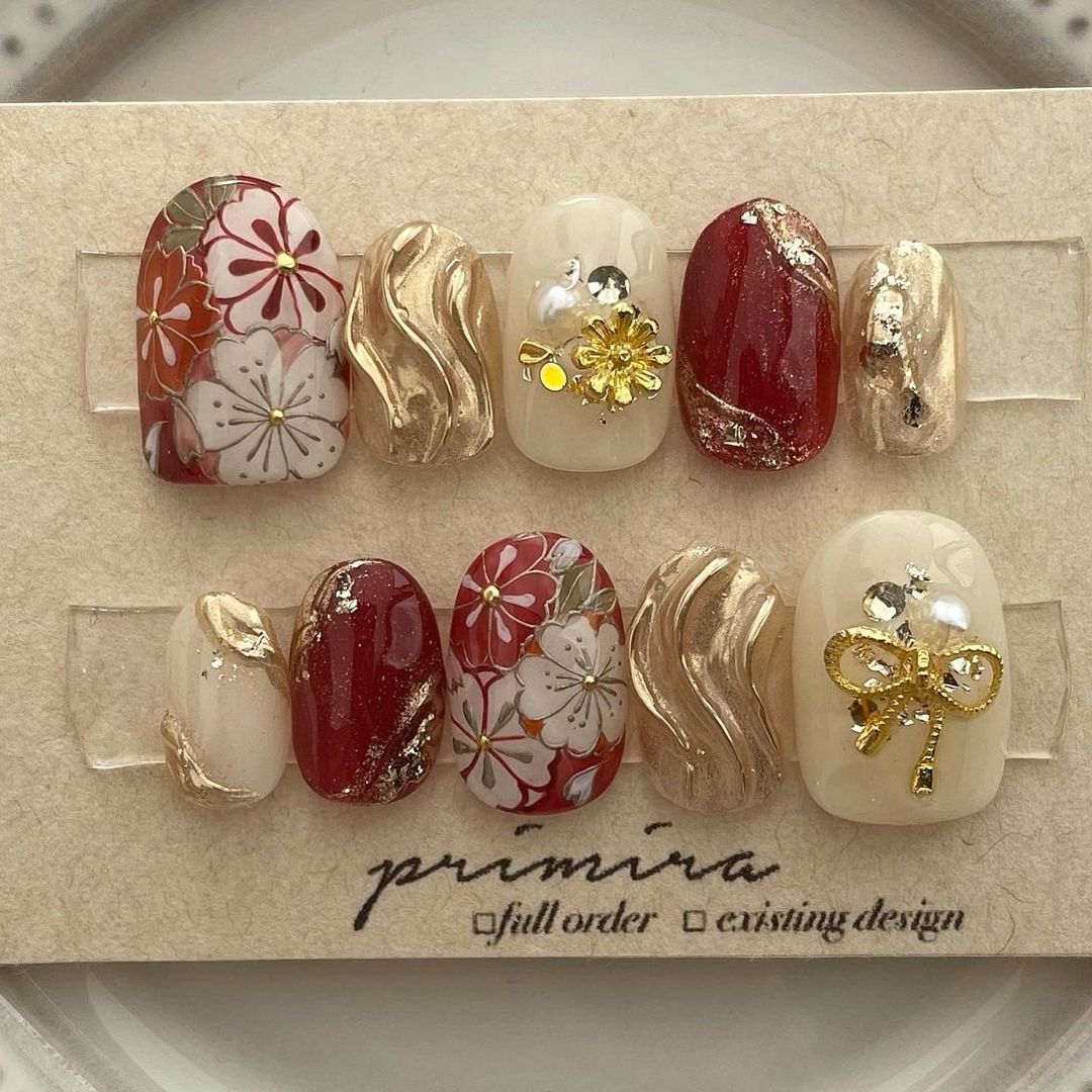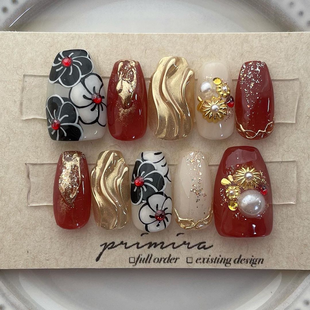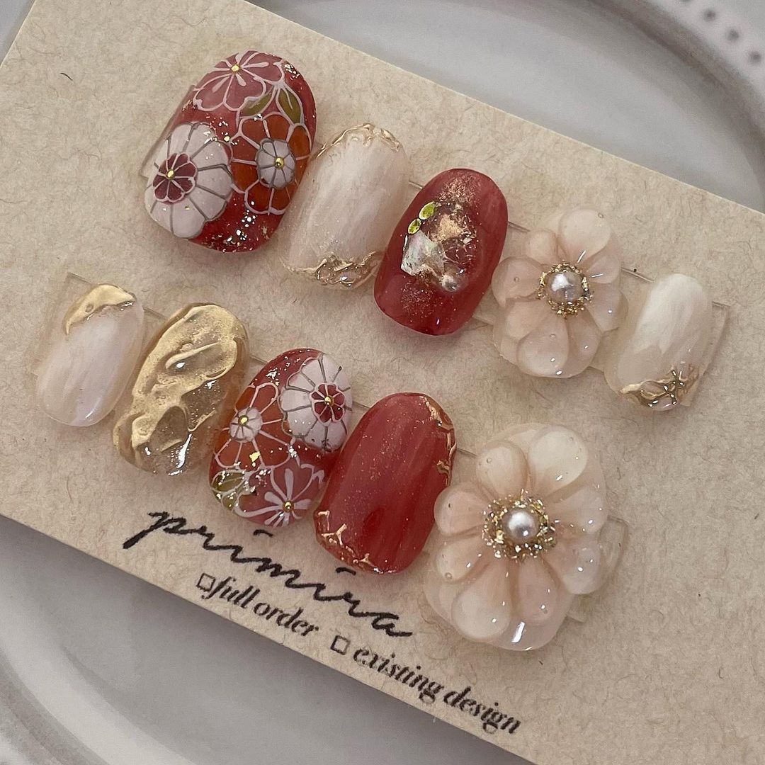 【保存版】レッド系カラーの和柄ネイル103選!普段使いから特別な日向けも!