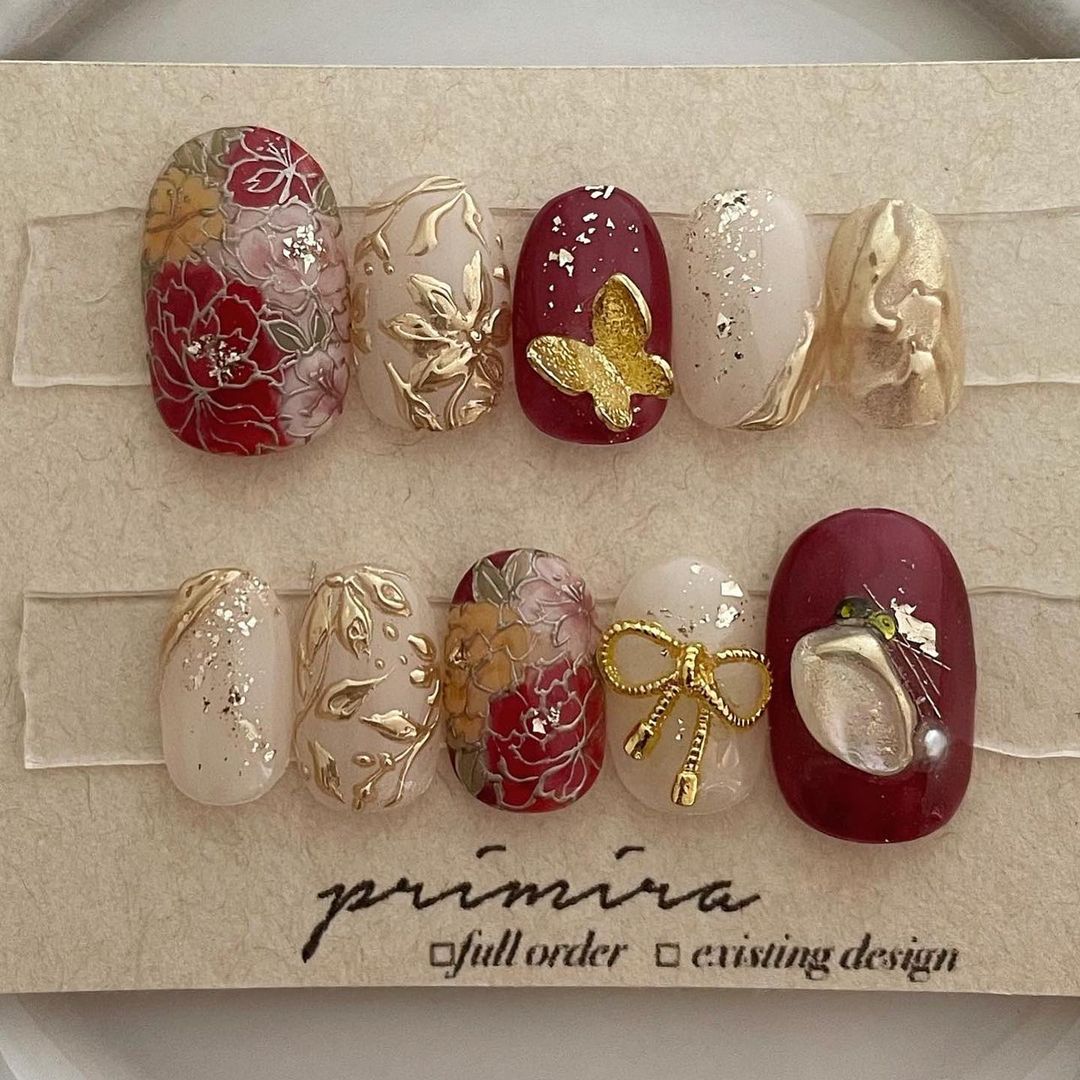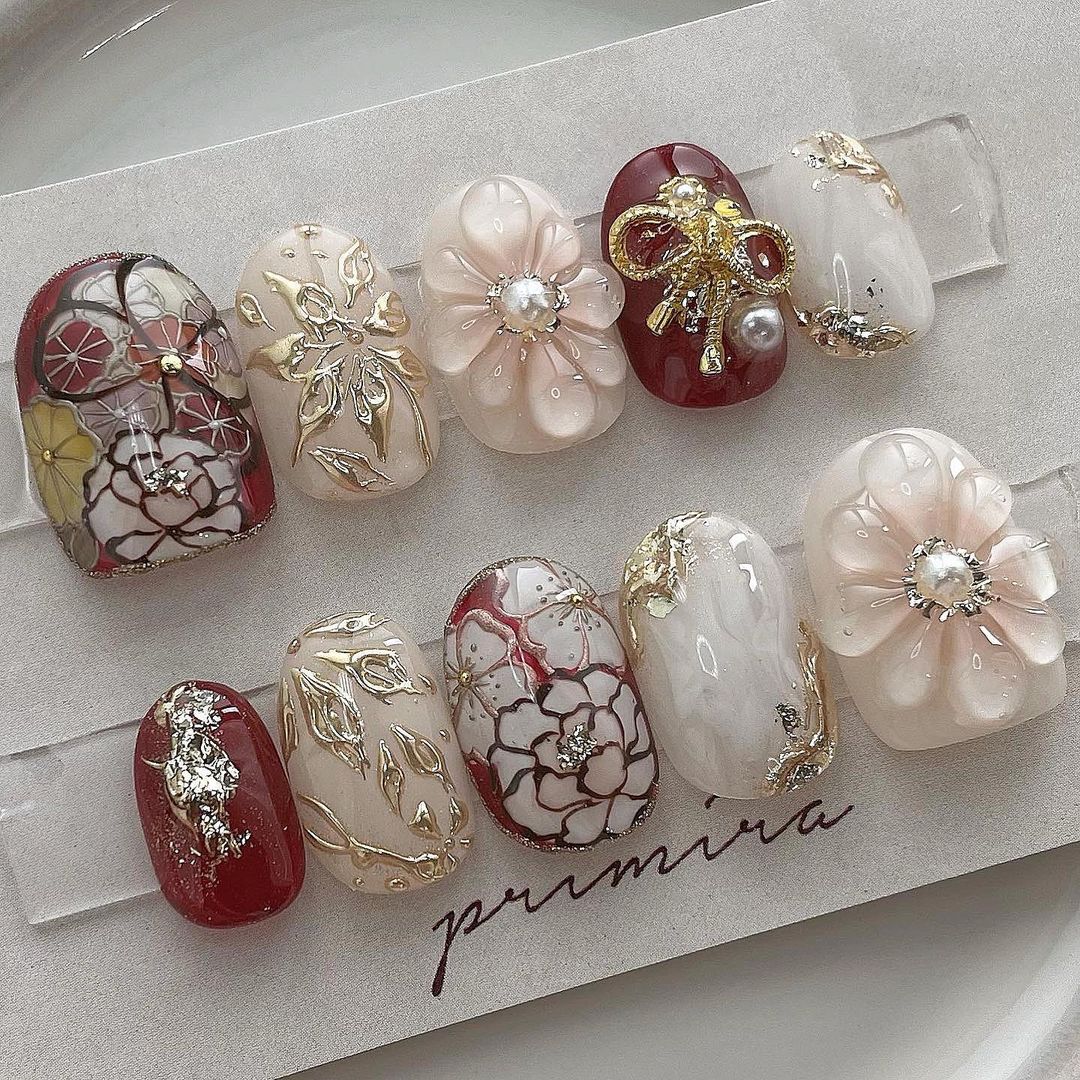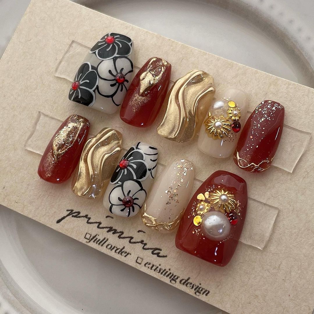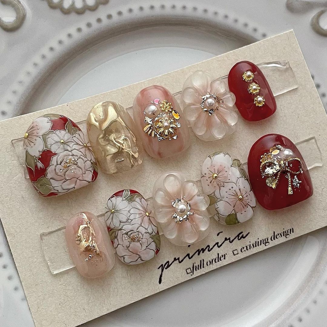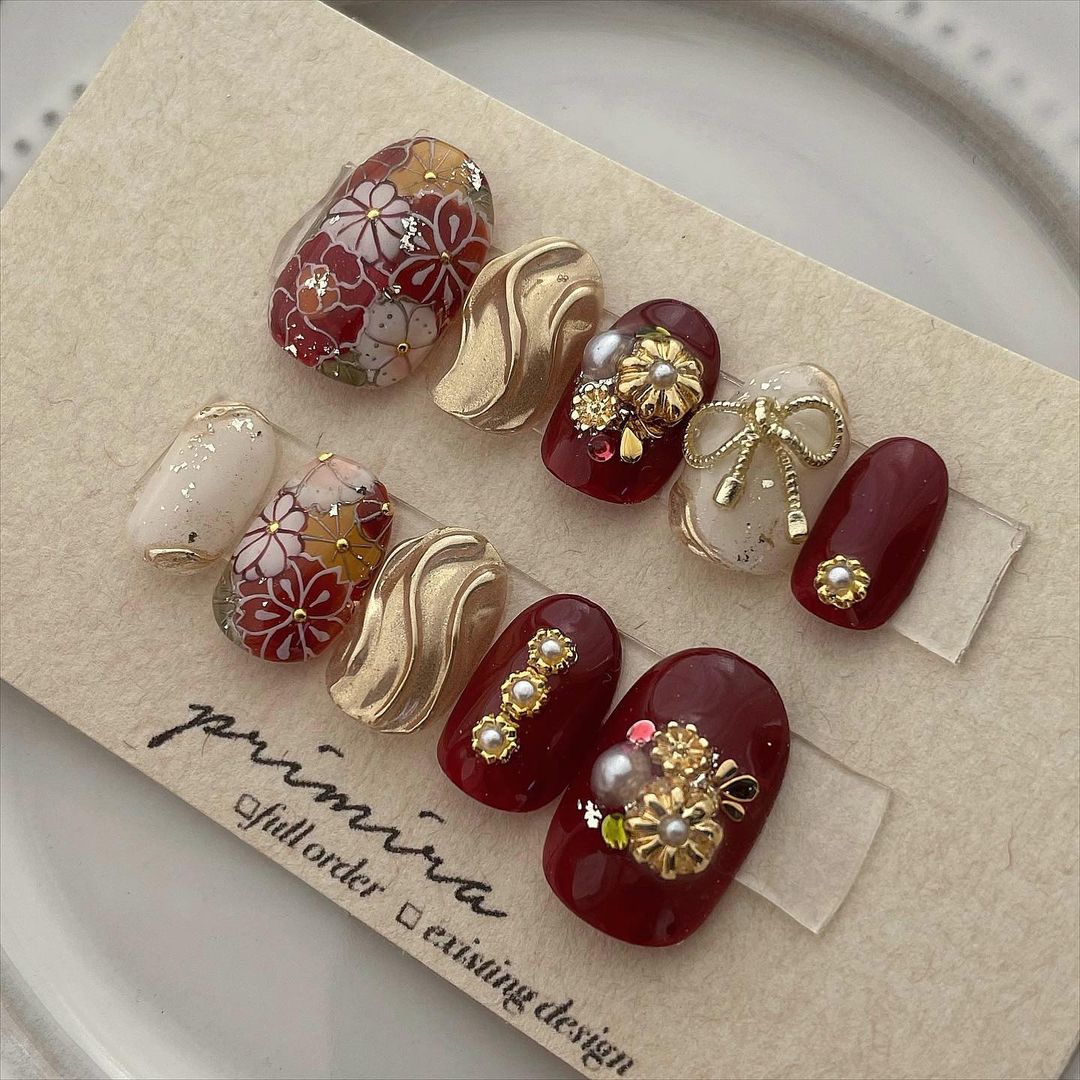 【保存版】レッド系カラーの和柄ネイル103選!普段使いから特別な日向けも!