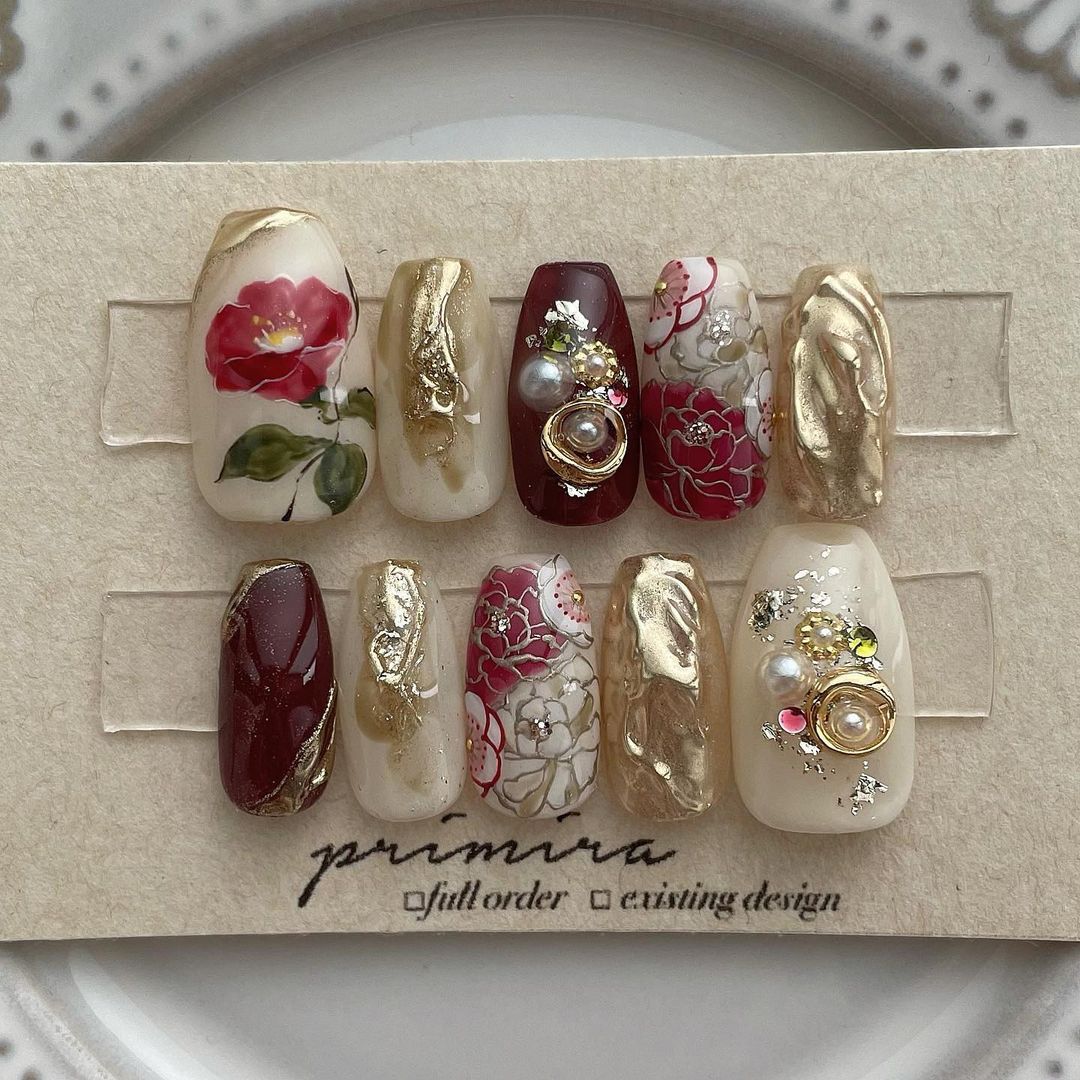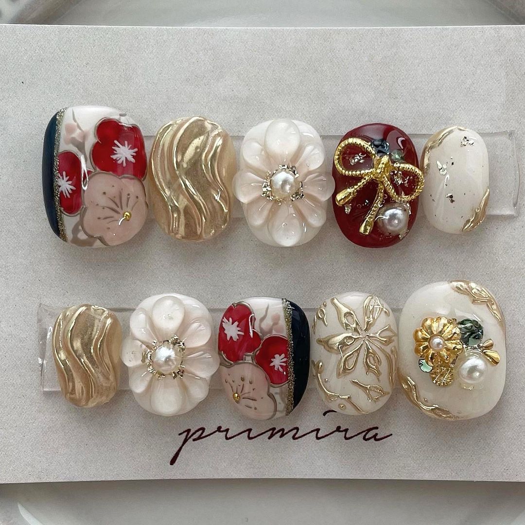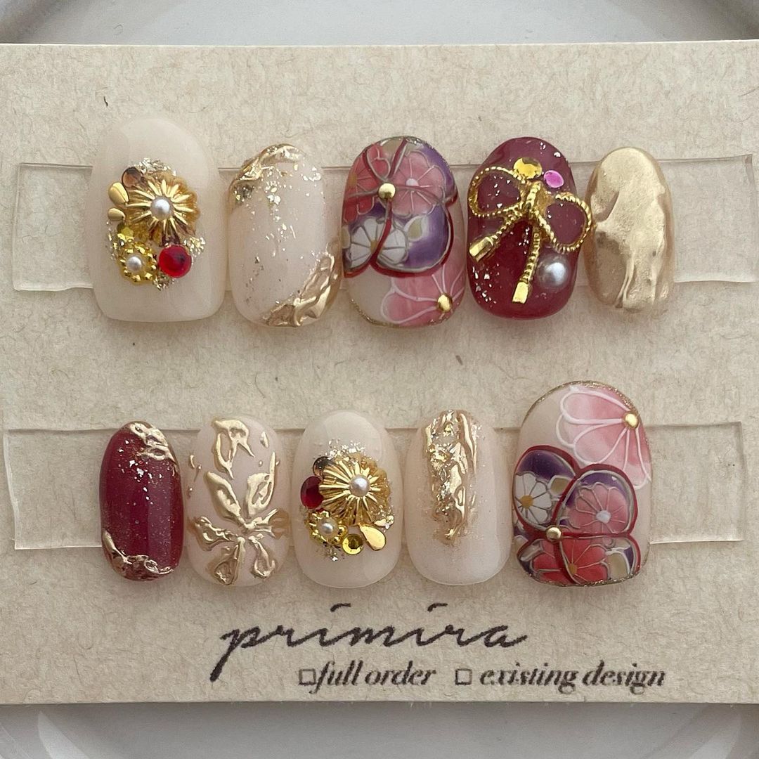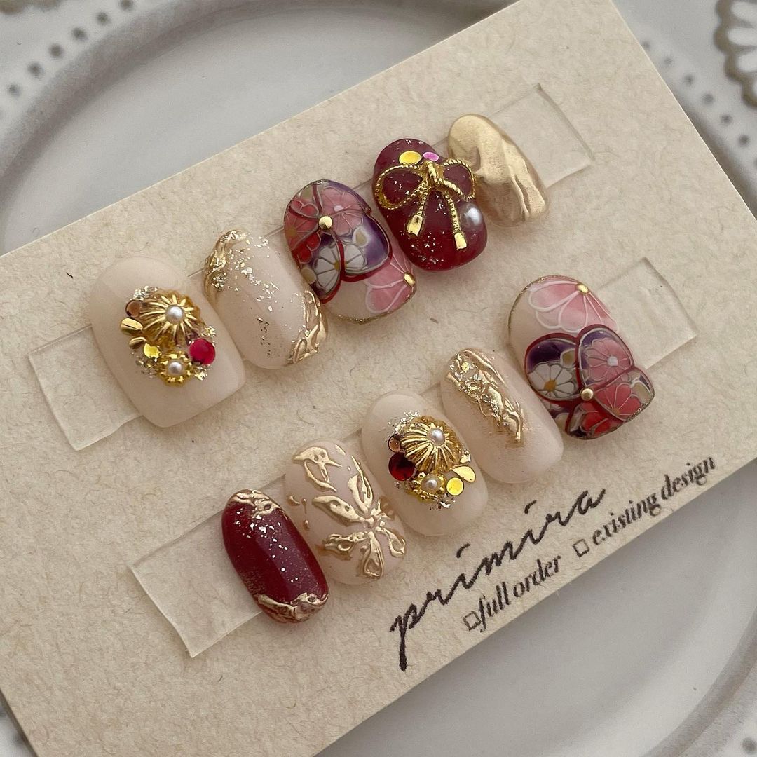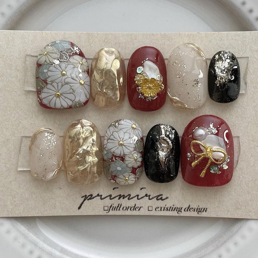 【保存版】レッド系カラーの和柄ネイル103選!普段使いから特別な日向けも!