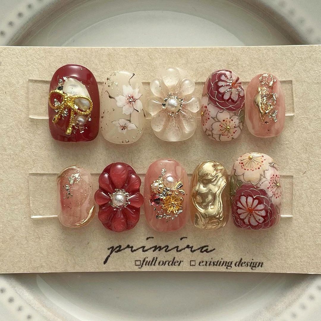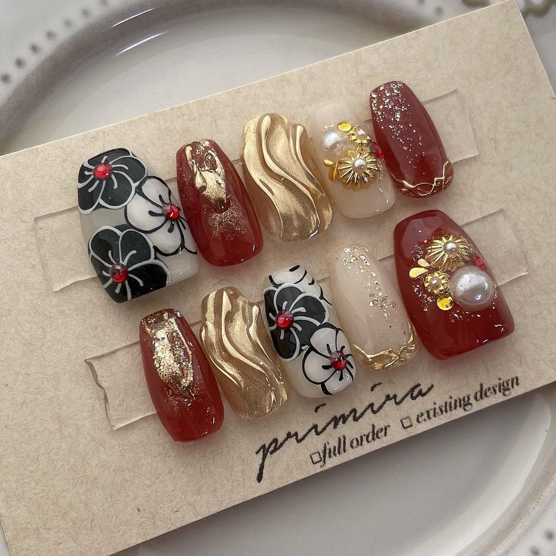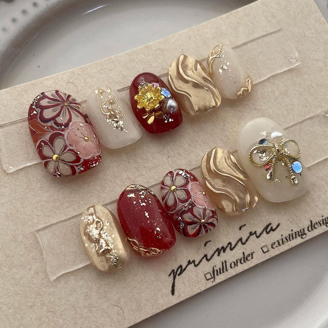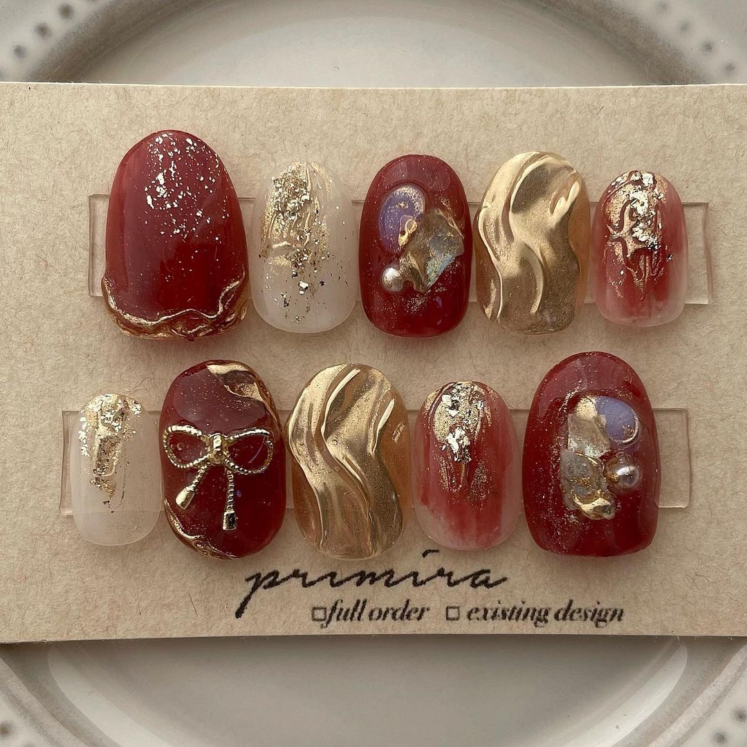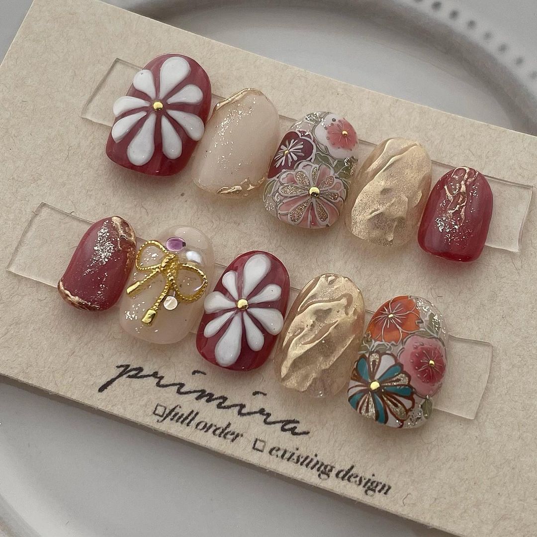 【保存版】レッド系カラーの和柄ネイル103選!普段使いから特別な日向けも!