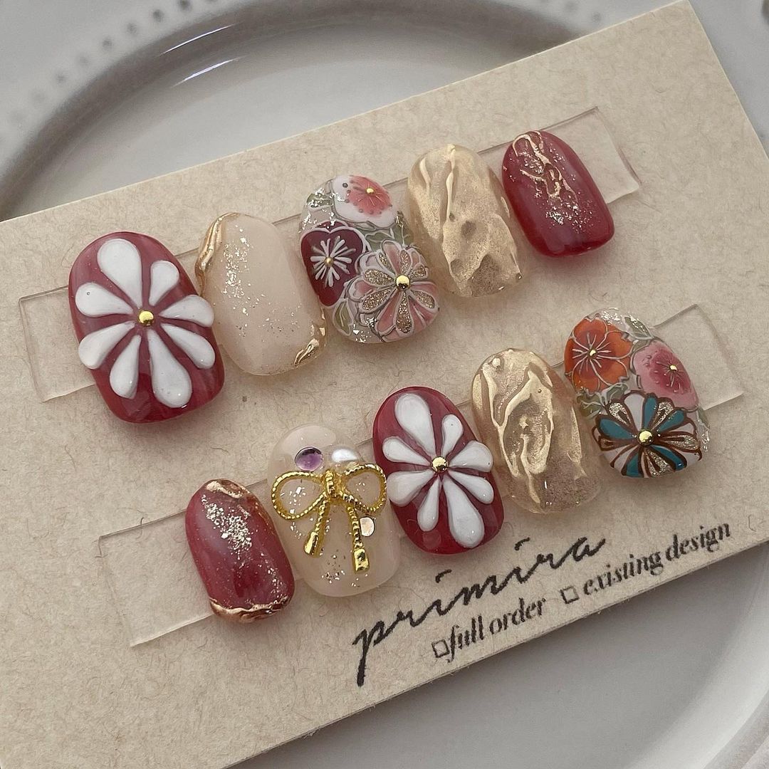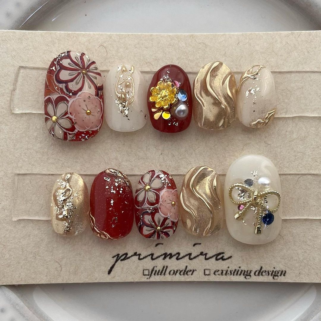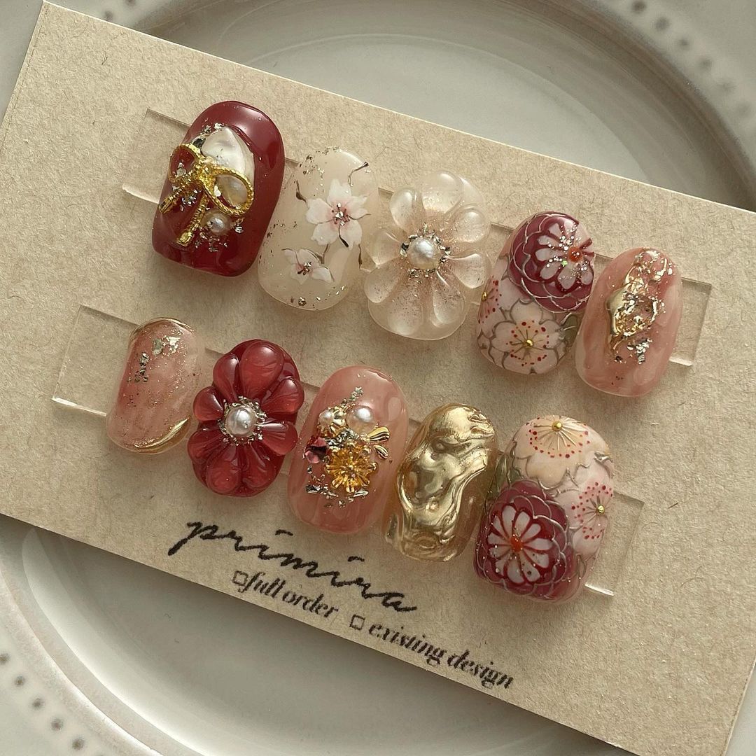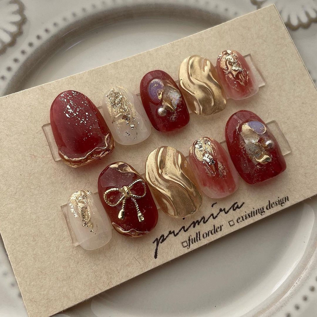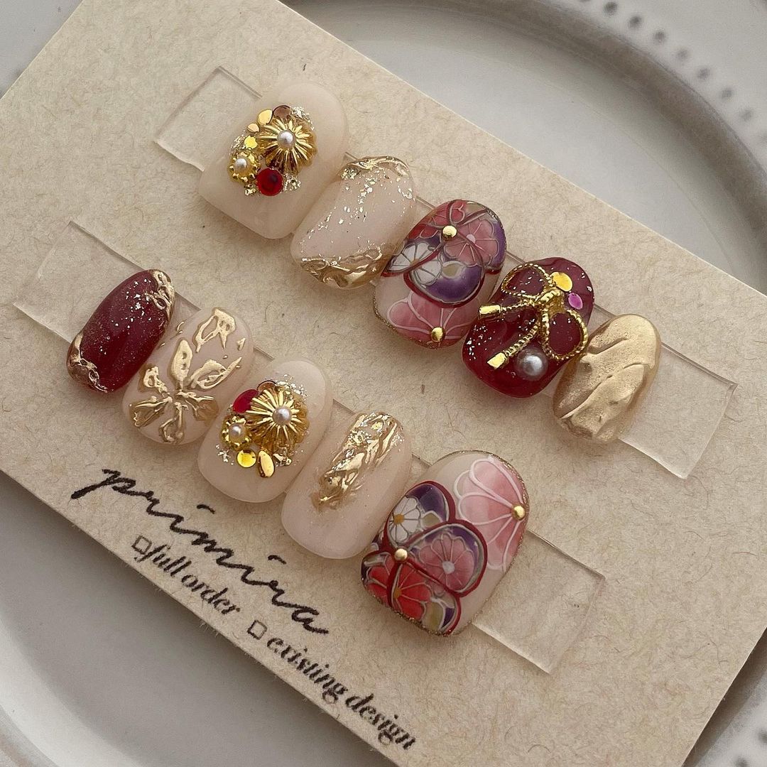 【保存版】レッド系カラーの和柄ネイル103選!普段使いから特別な日向けも!