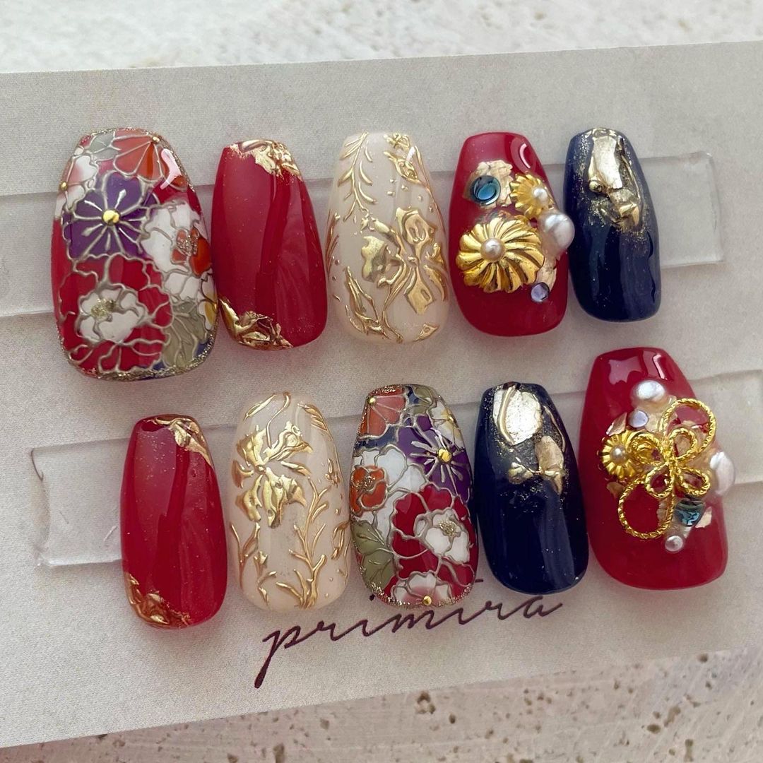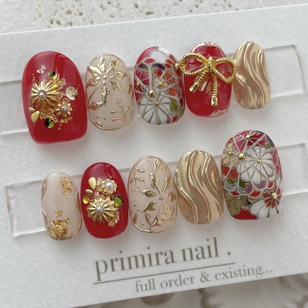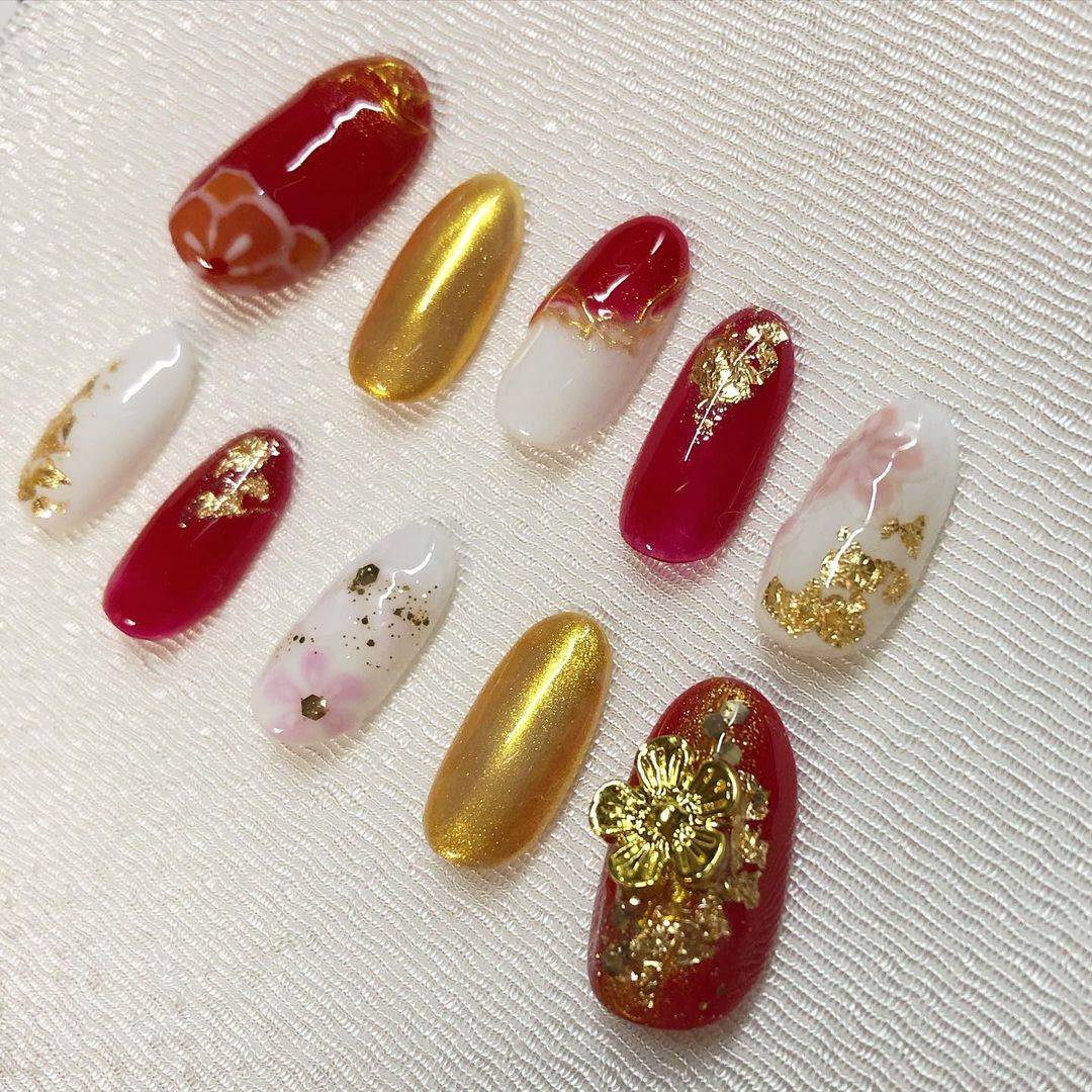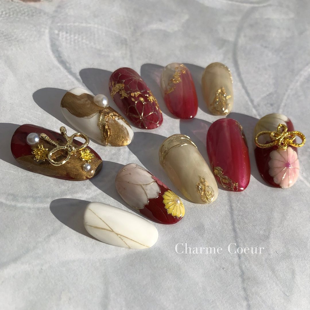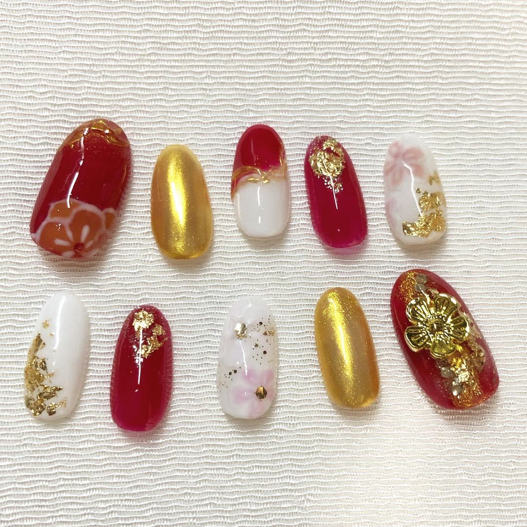 レッド系カラーの和柄ネイル93選!成人式などに!